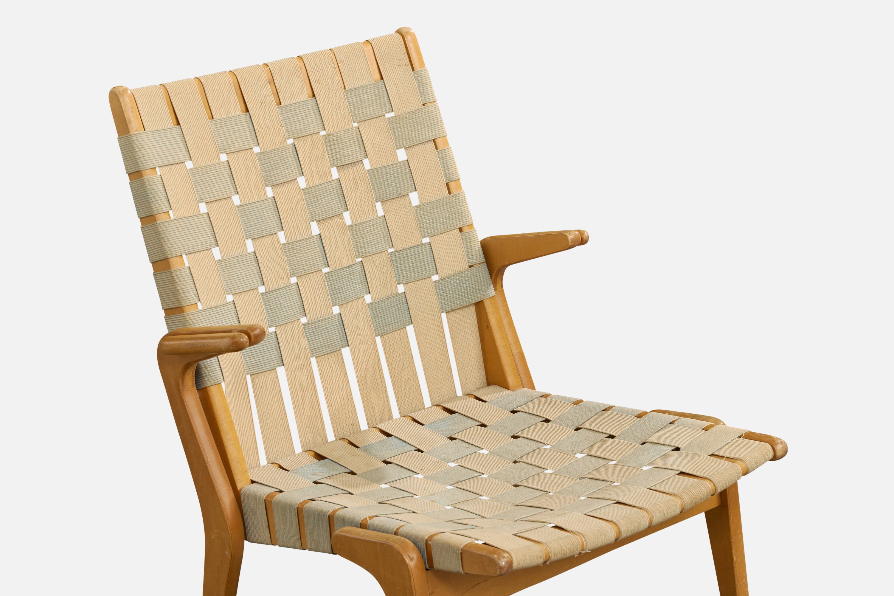 A birch and webbing "Colette" lounge chair designed by Ilmari Tapiovaara and produced by Asko, Finland, c. 1954.
