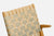 Fabric with staining as illustrated. Wear to wood frame consistent with age and use.