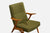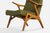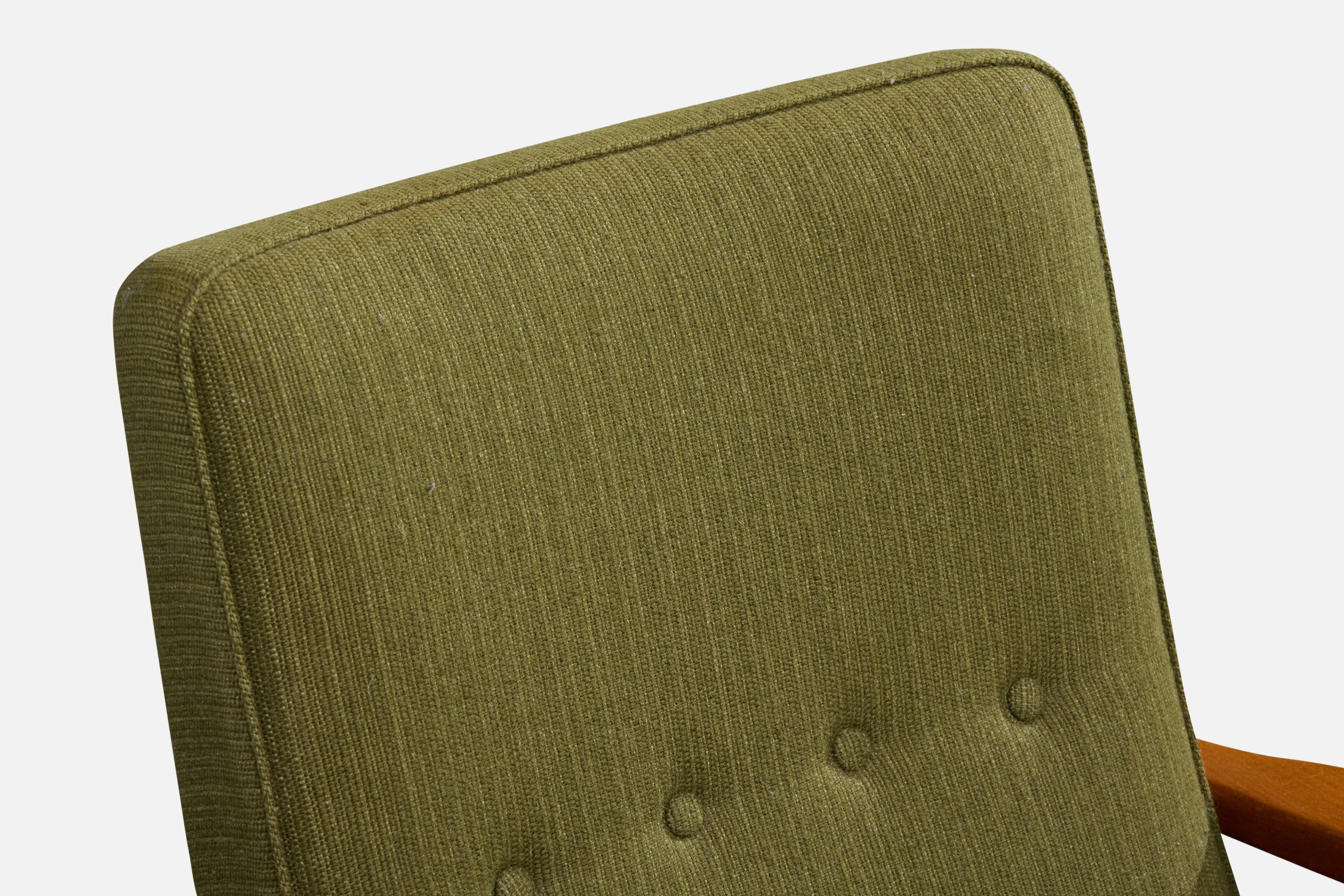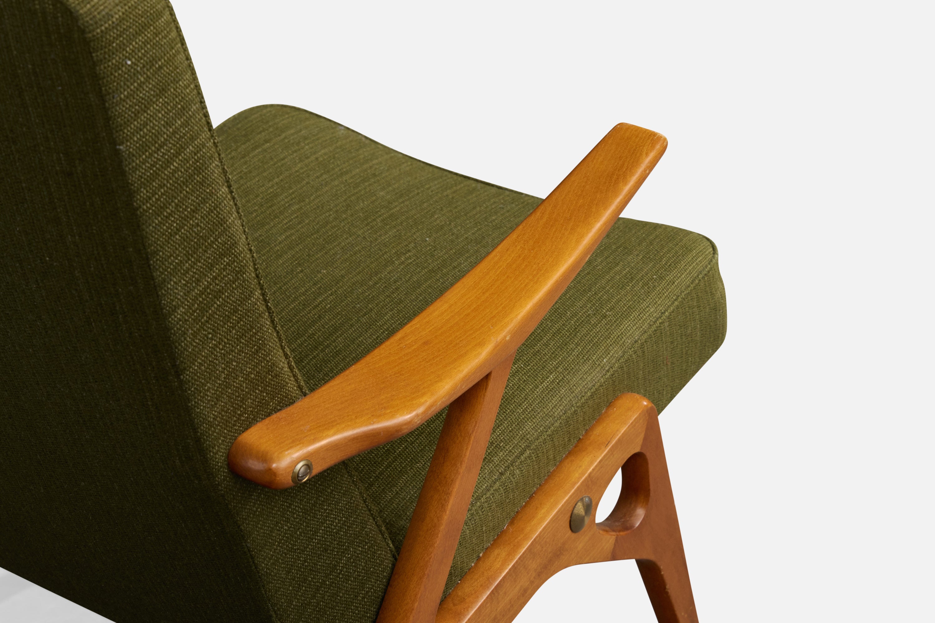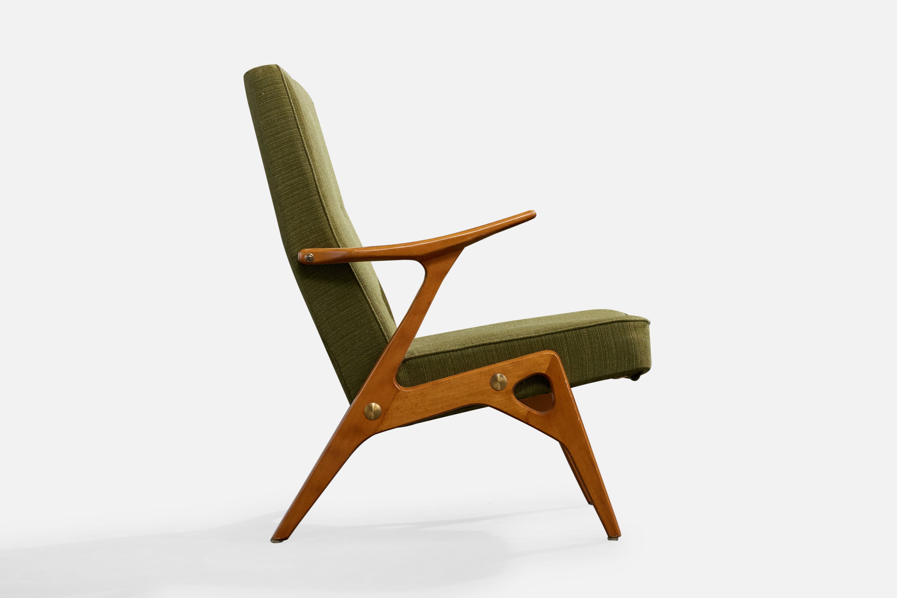 A wood, brass and green fabric lounge chair designed by Inge Andersson and produced by Bröderna Andersson, Sweden, c. 1960s.