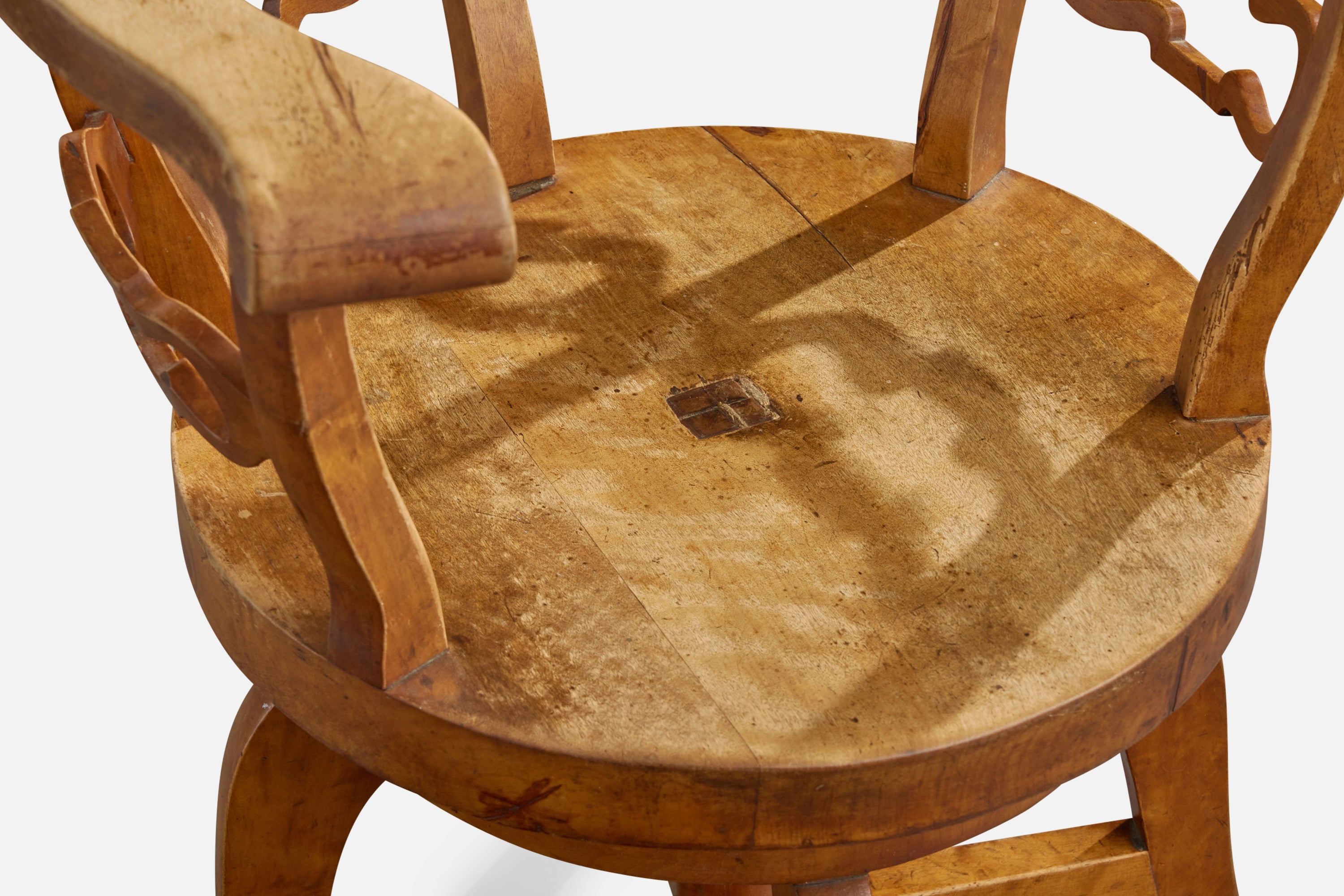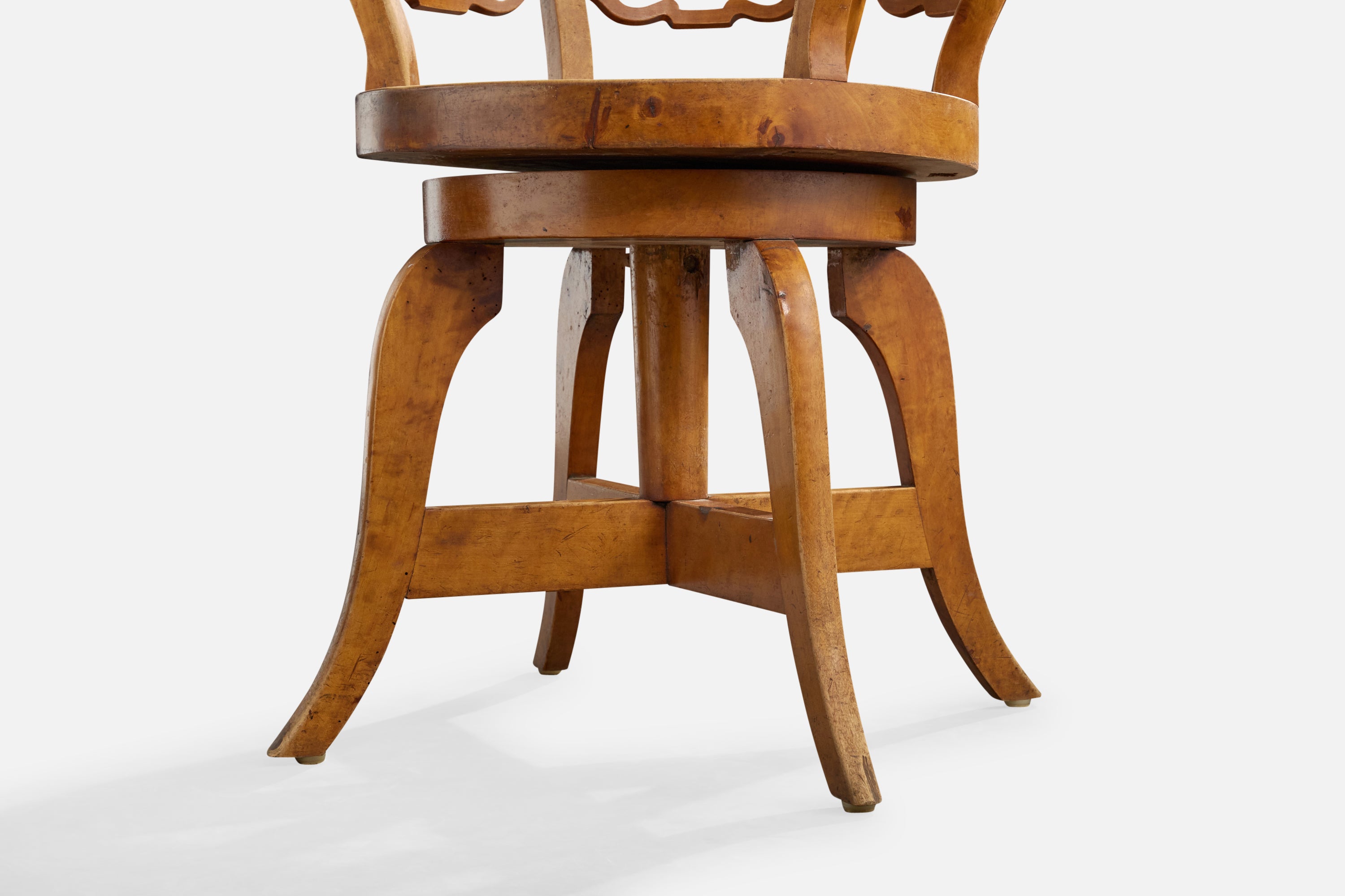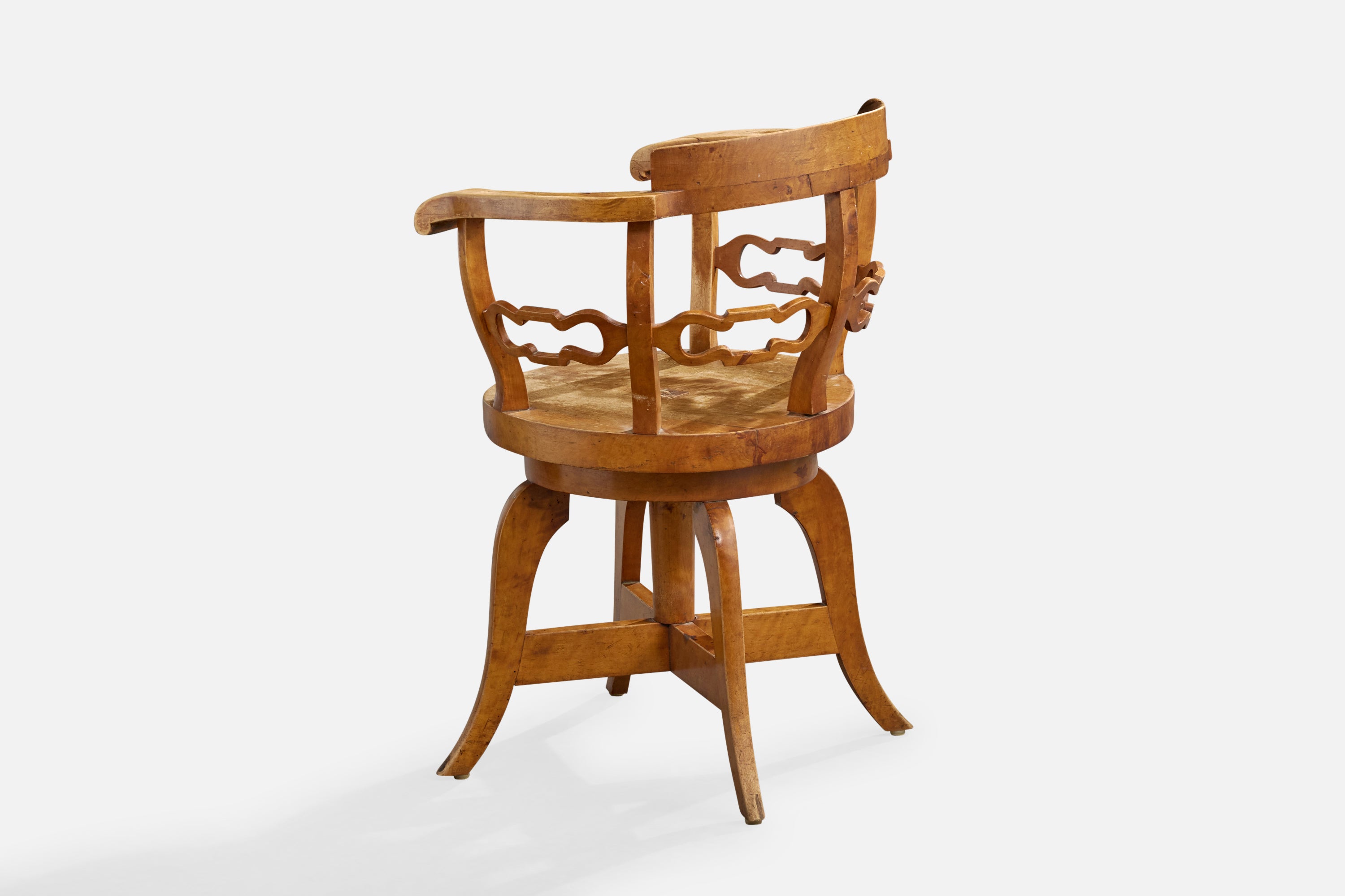 A swiveling birch armchair or desk chair designed and produced in Sweden, c. 1910s.