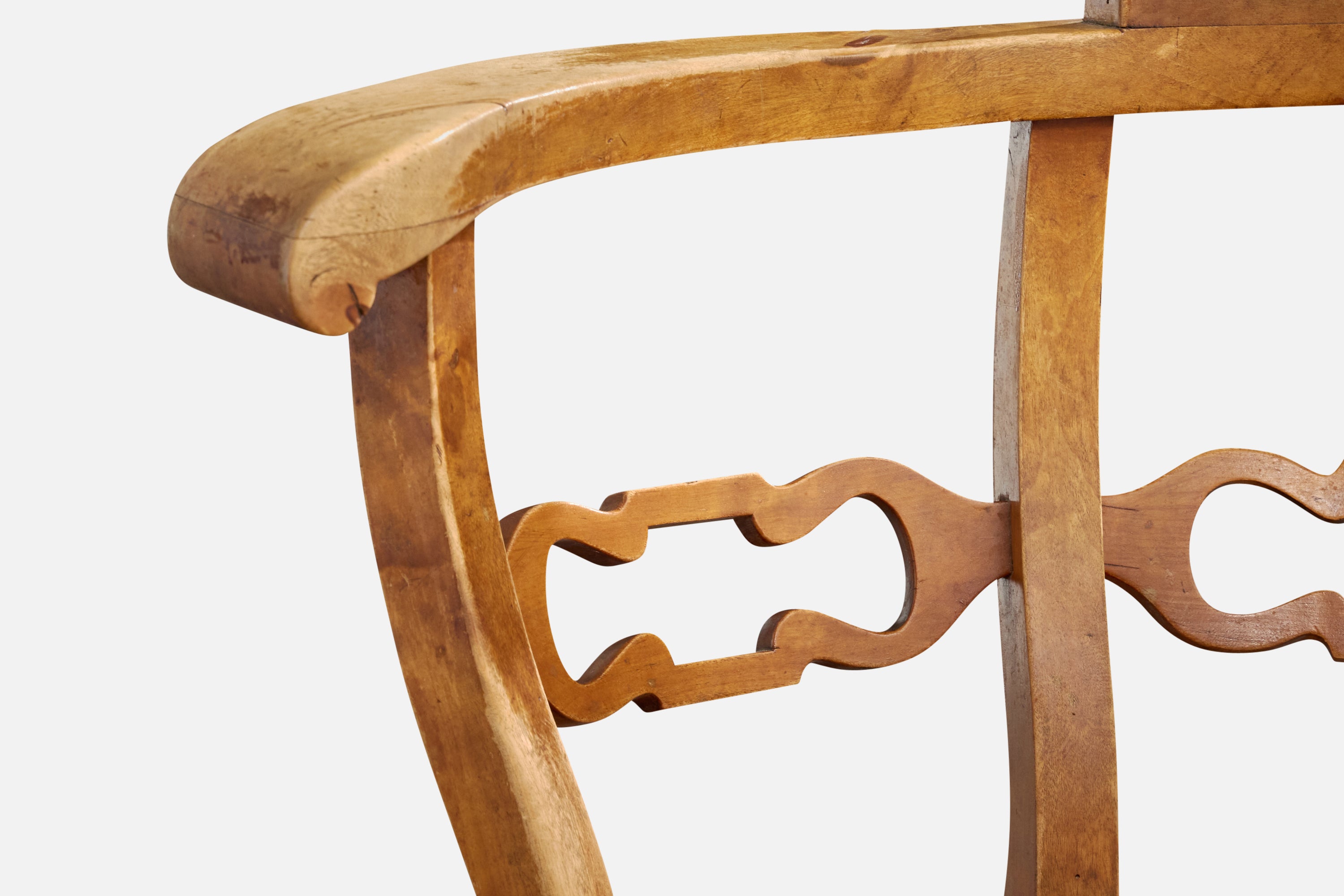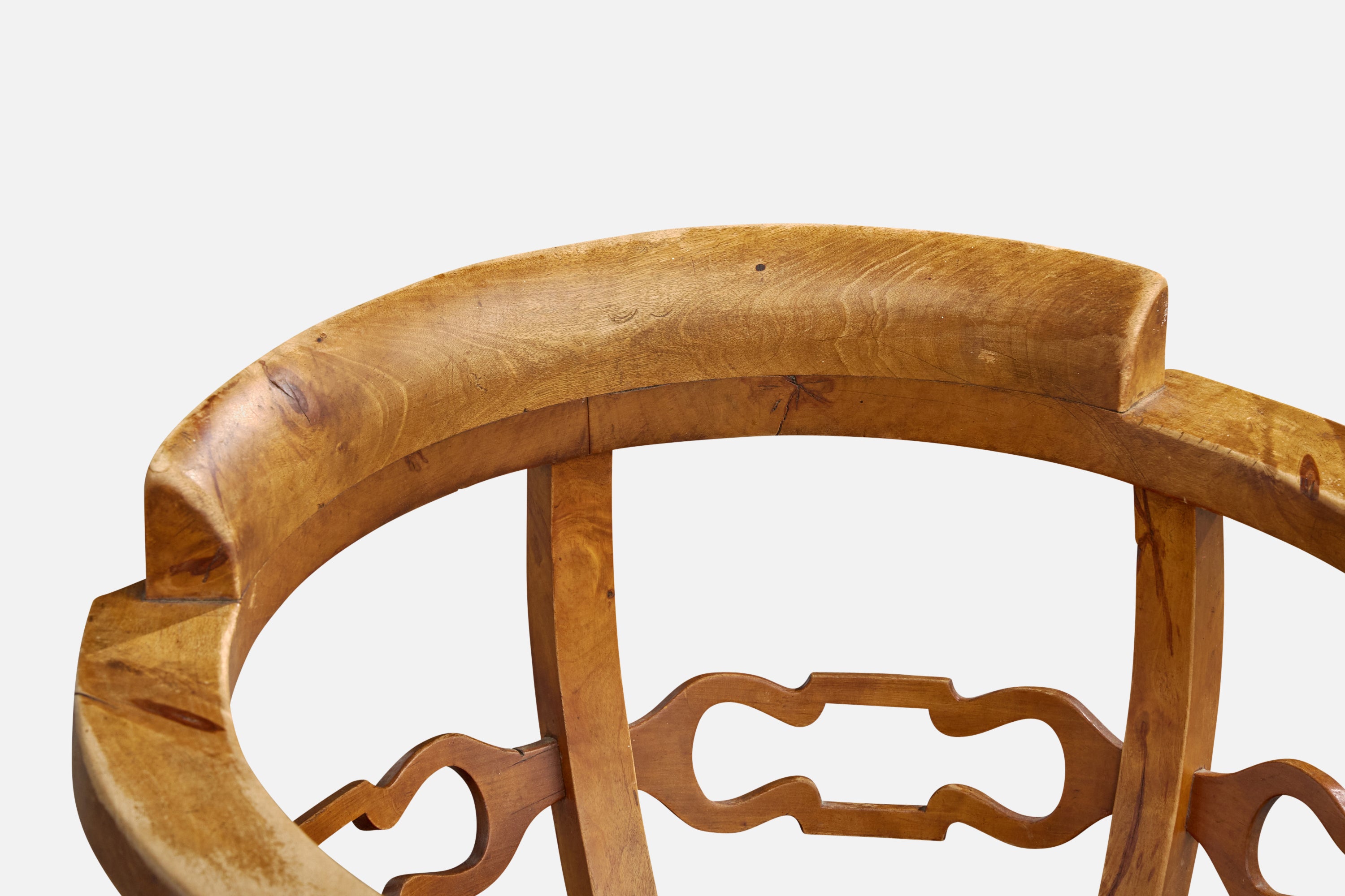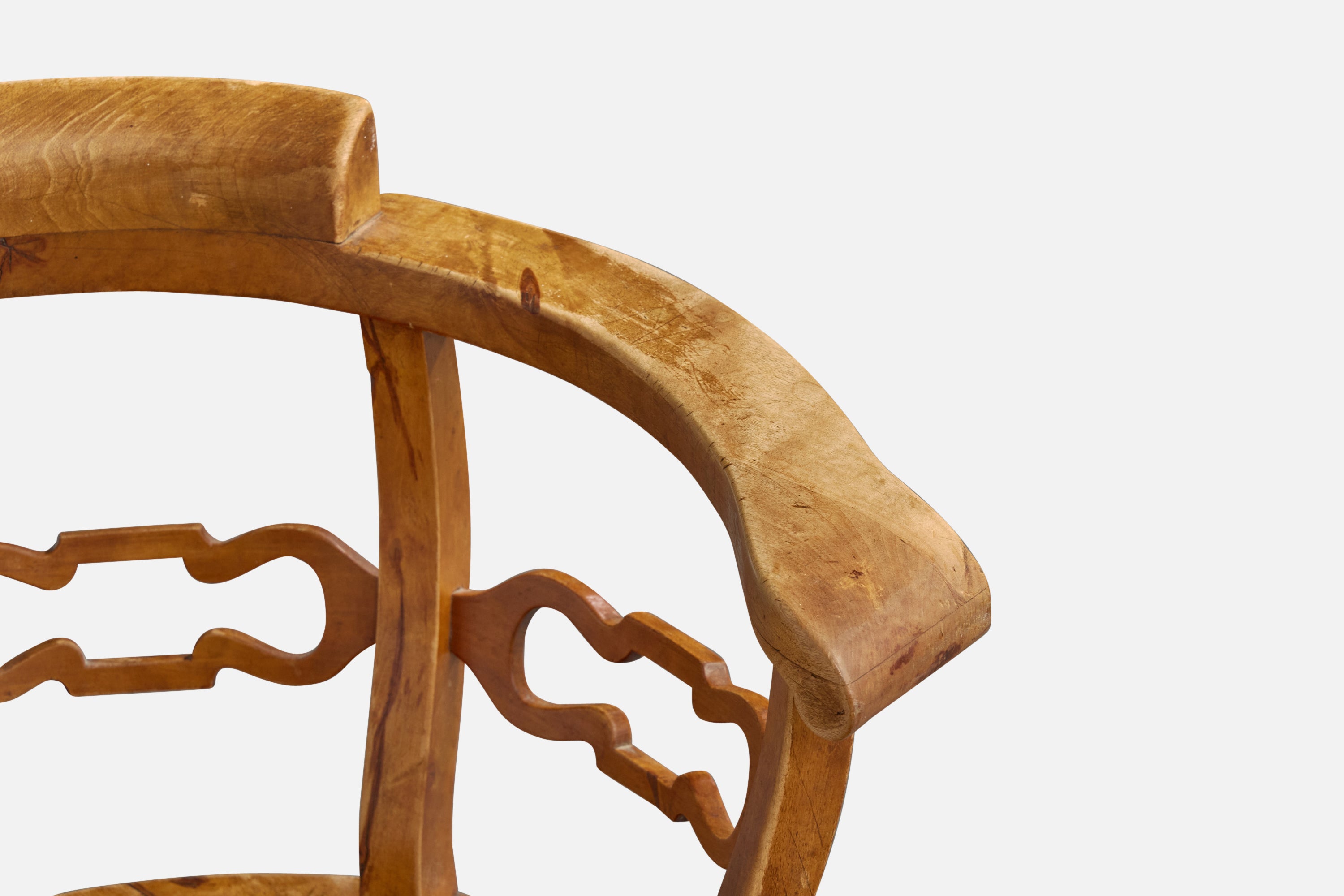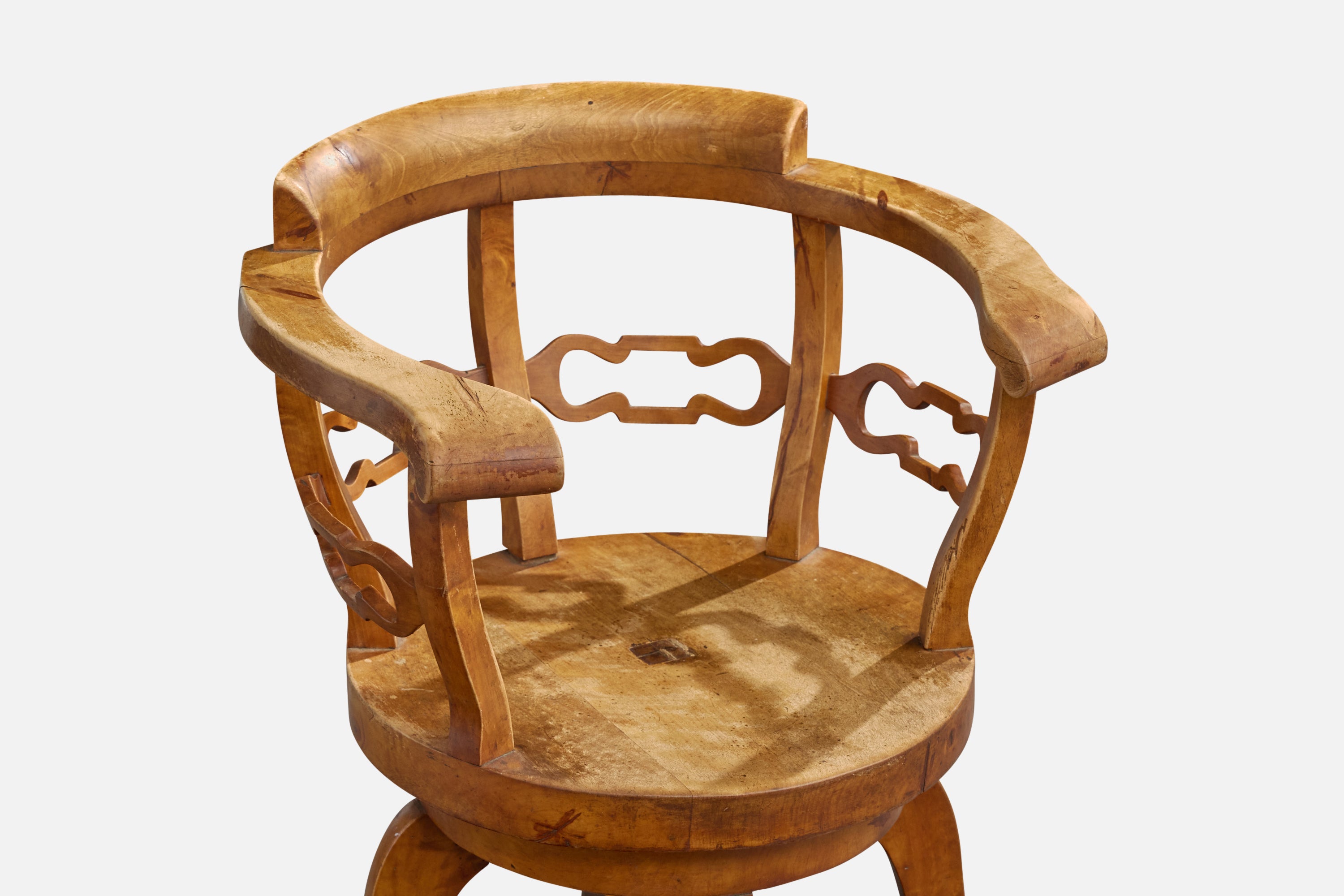 A swiveling birch armchair or desk chair designed and produced in Sweden, c. 1910s.