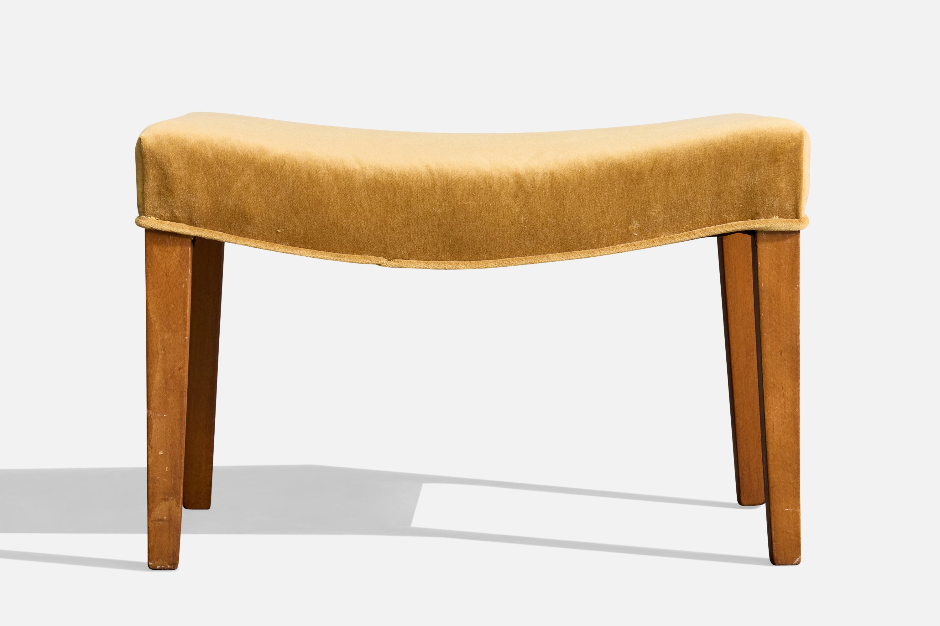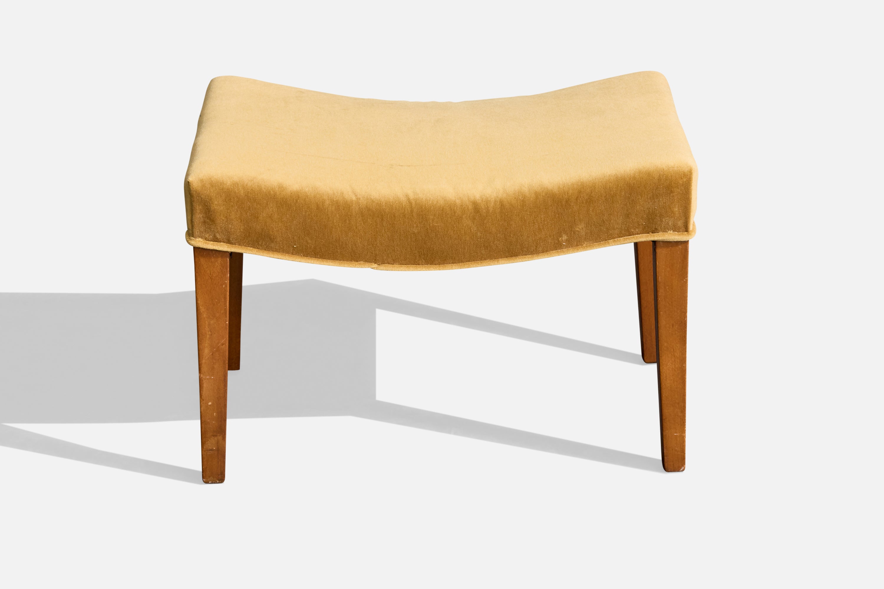 A teak and yellow mohair stool designed and produced in Denmark, c. 1950s.
