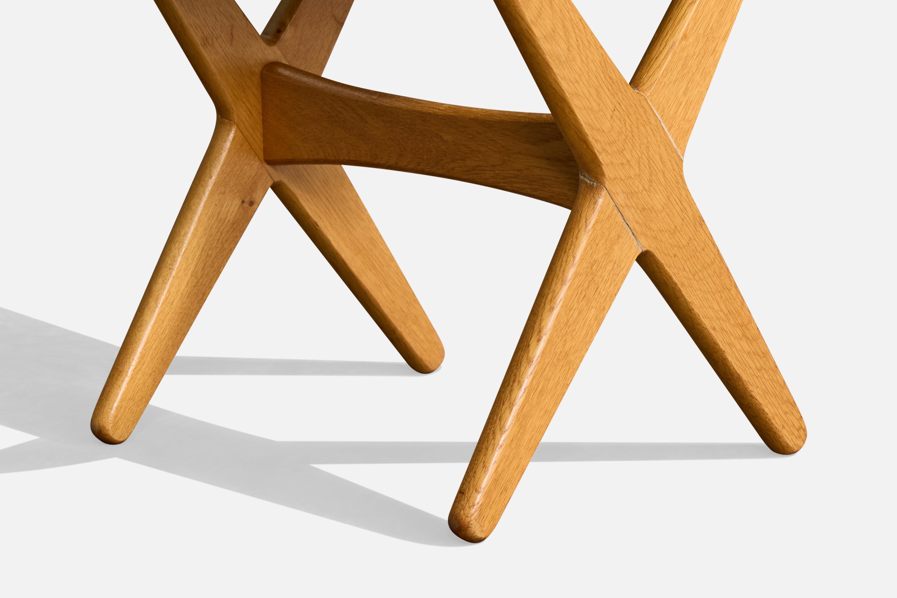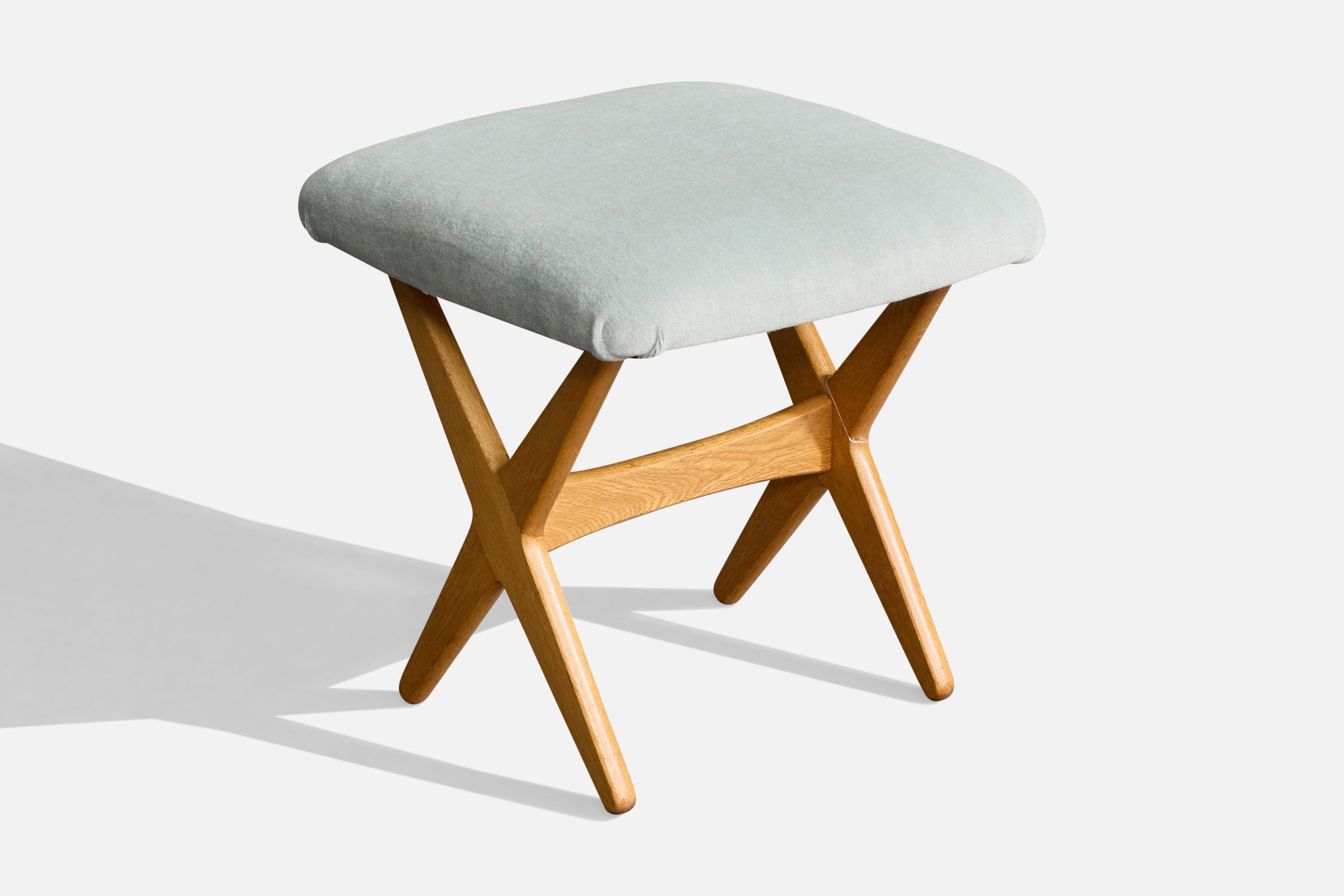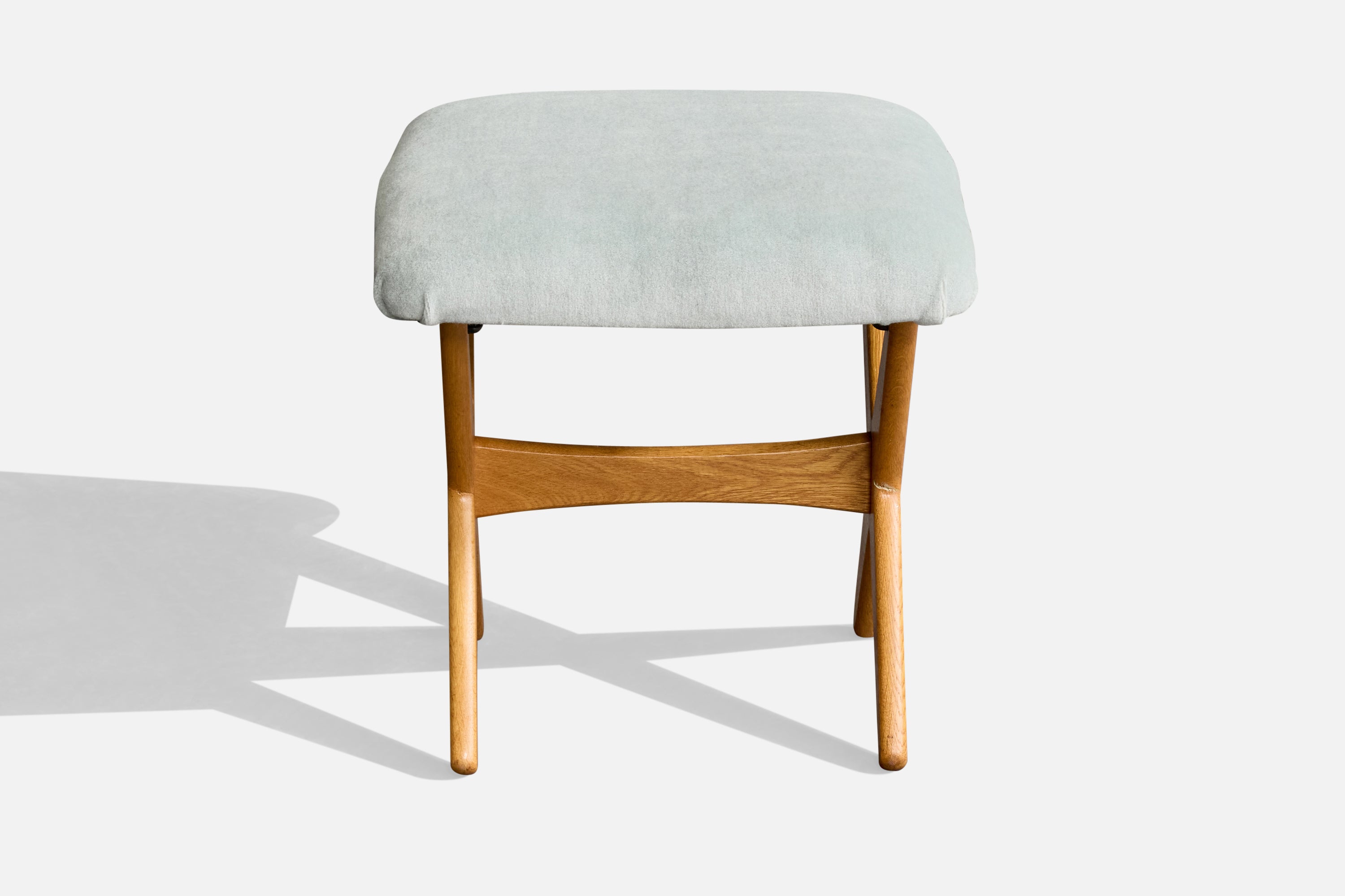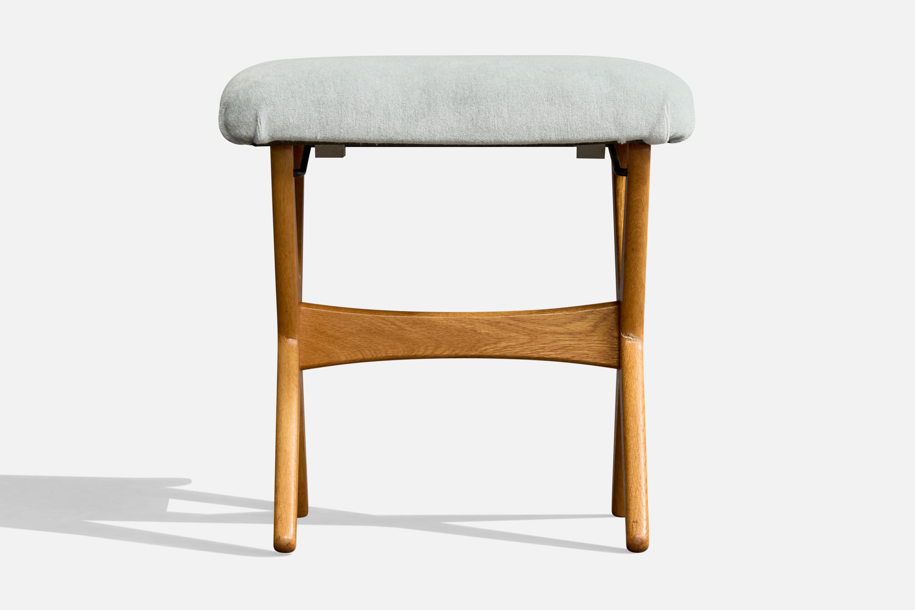 An adjustable oak and blue velvet adjustable stool or ottoman designed by Rastad & Relling and produced by Dux, Sweden, c. 1960s.