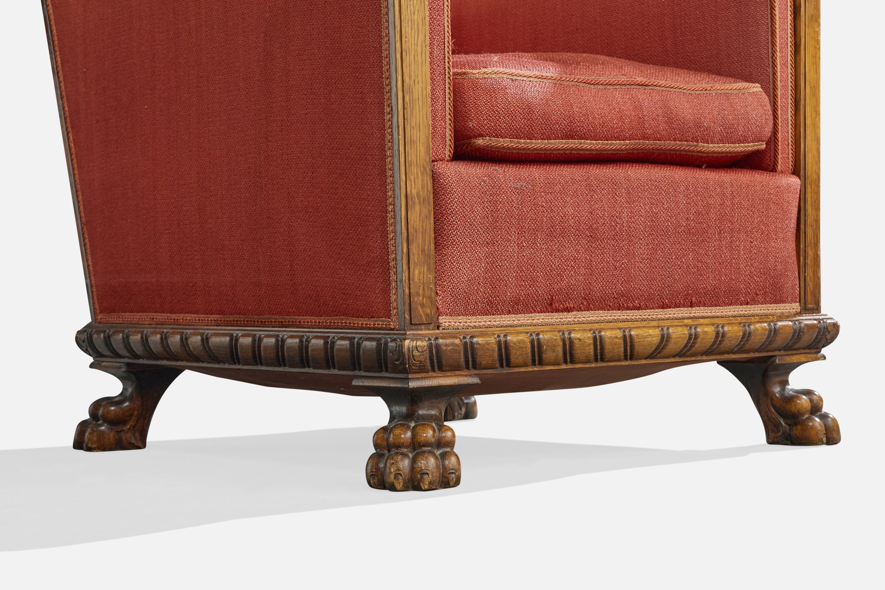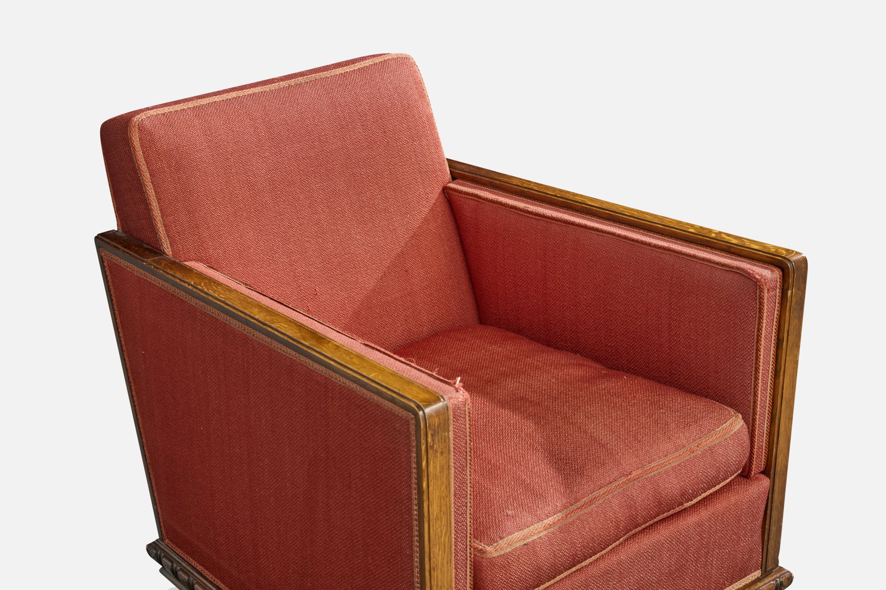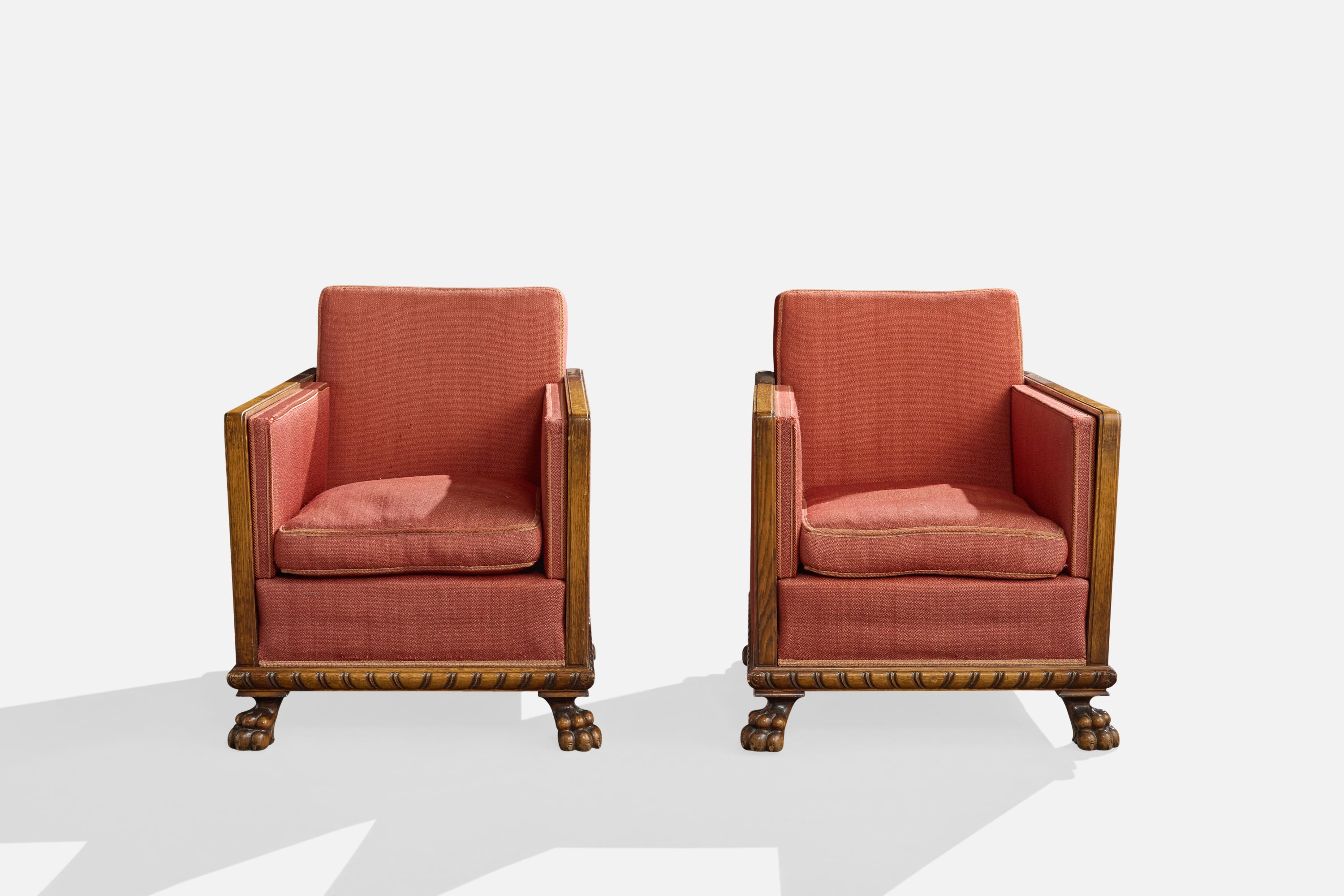 Swedish Designer, Lounge Chairs, Oak, Fabric, Sweden, 1930s