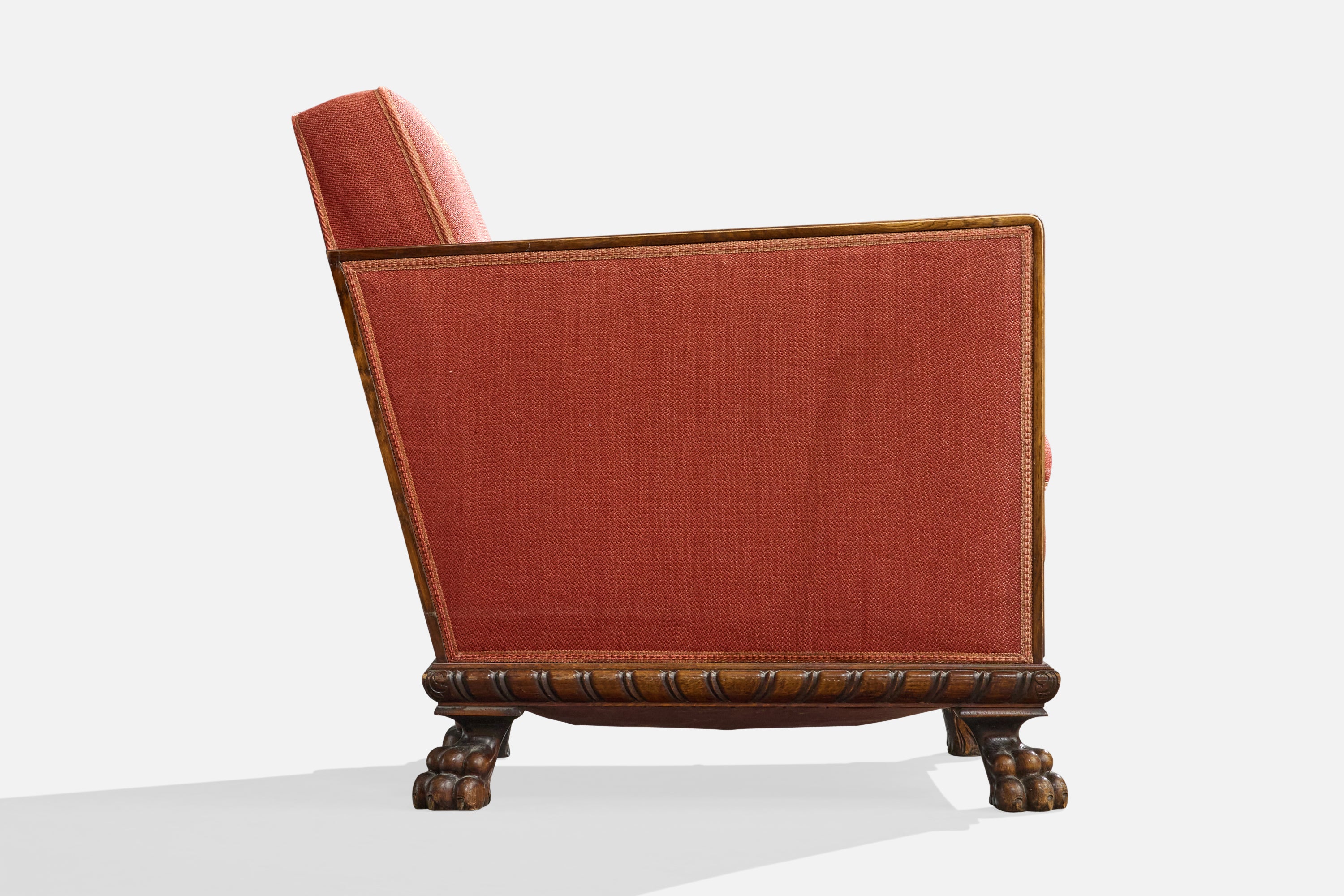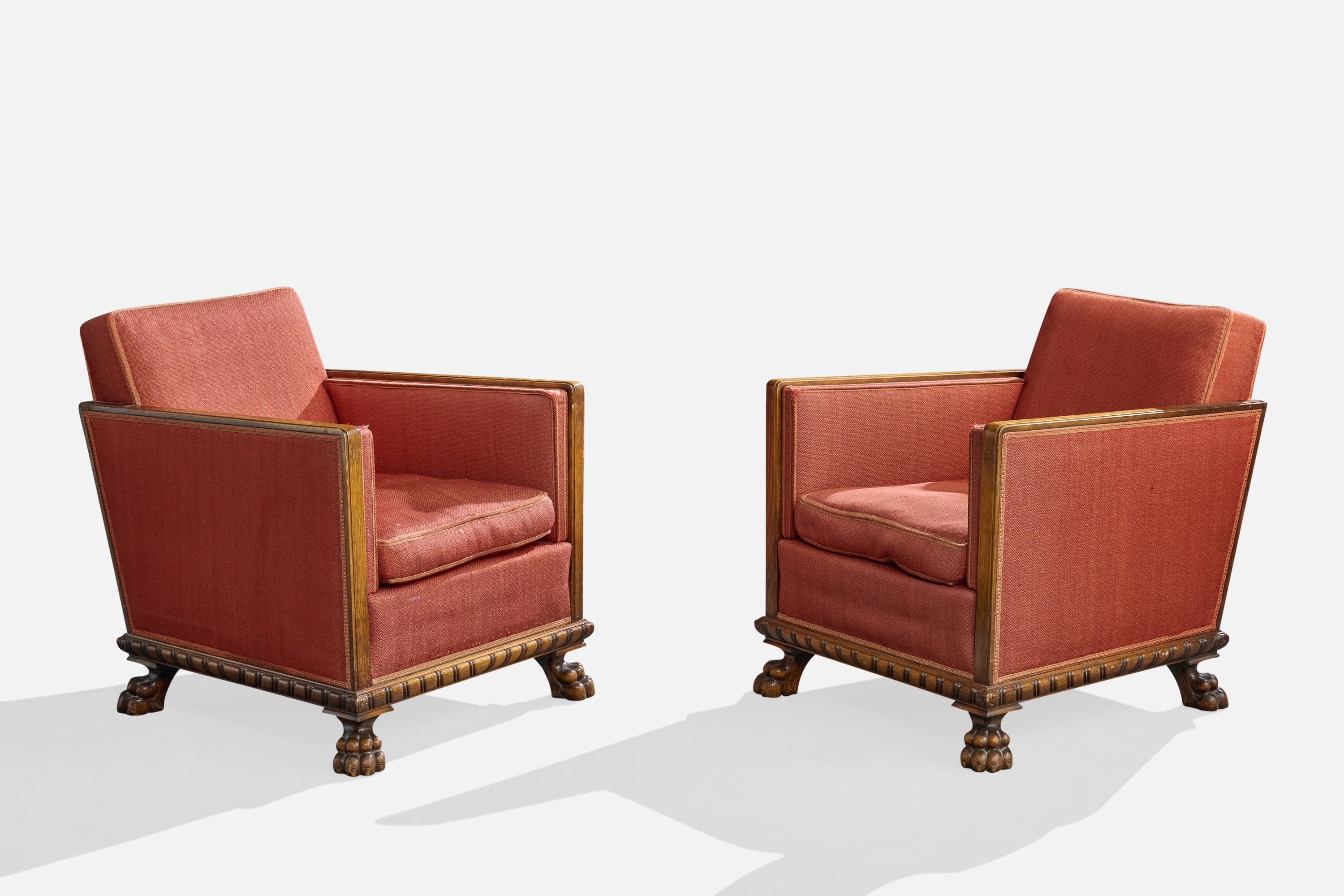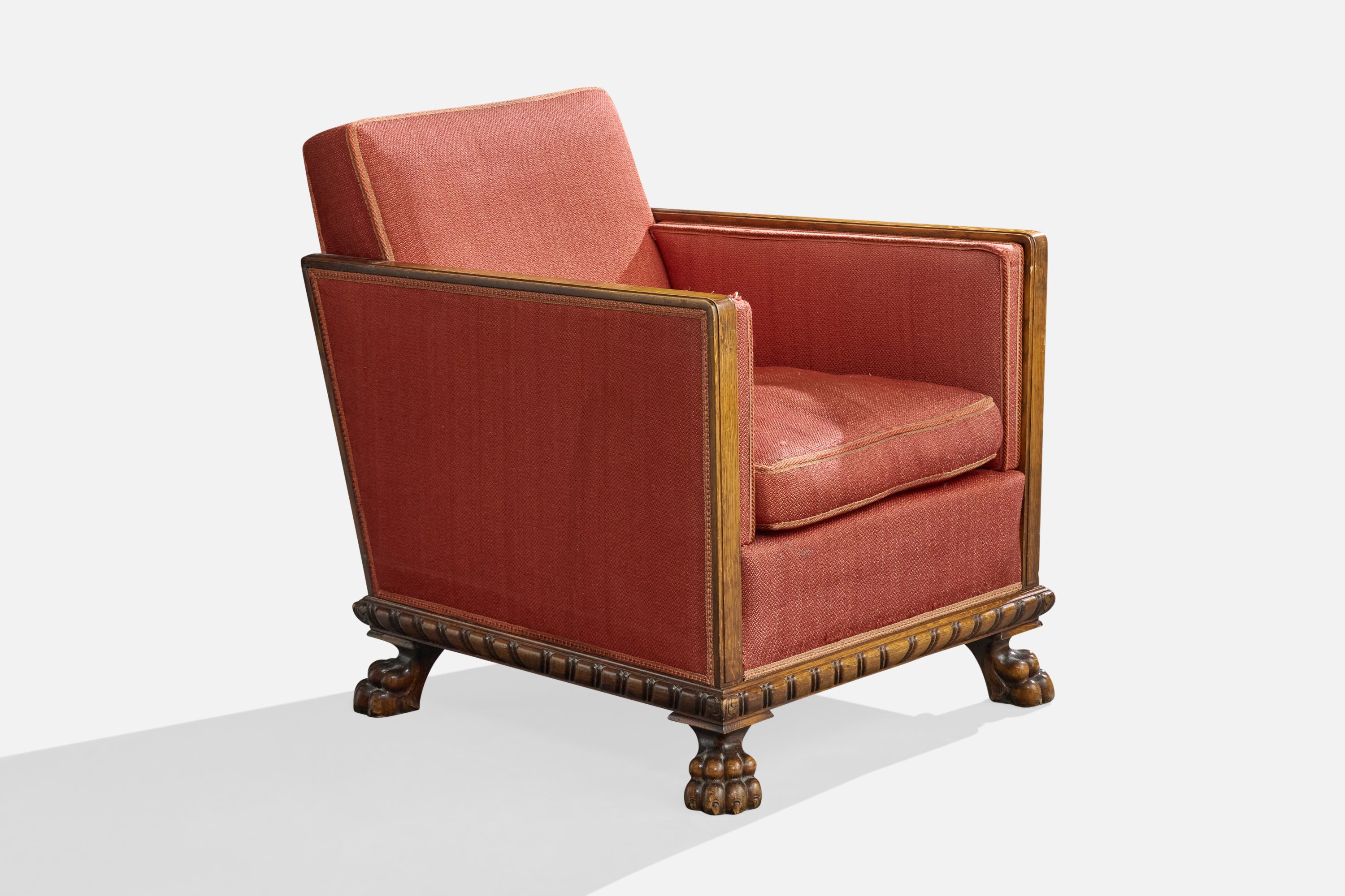 Swedish Designer, Lounge Chairs, Oak, Fabric, Sweden, 1930s