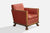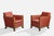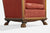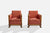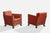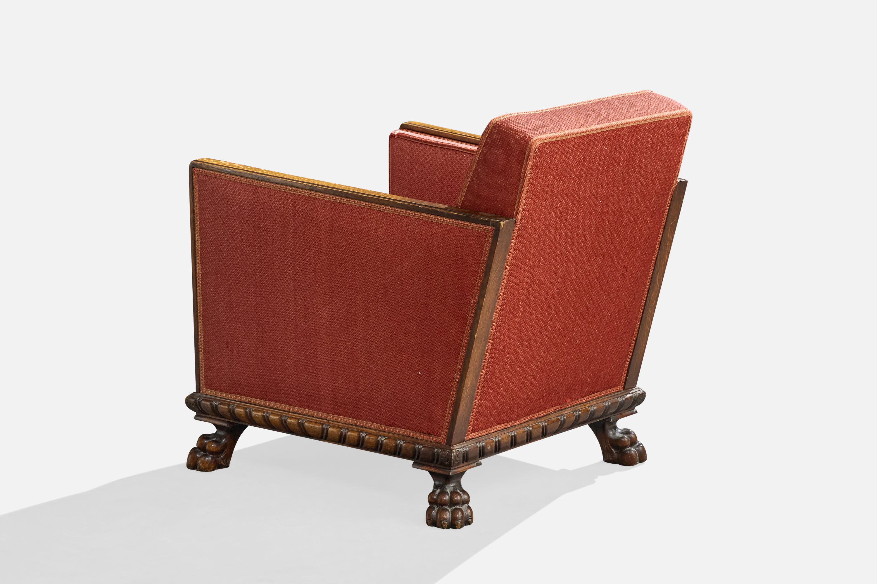 A pair of oak and red fabric lounge chairs designed and produced in Sweden, c. 1930s.