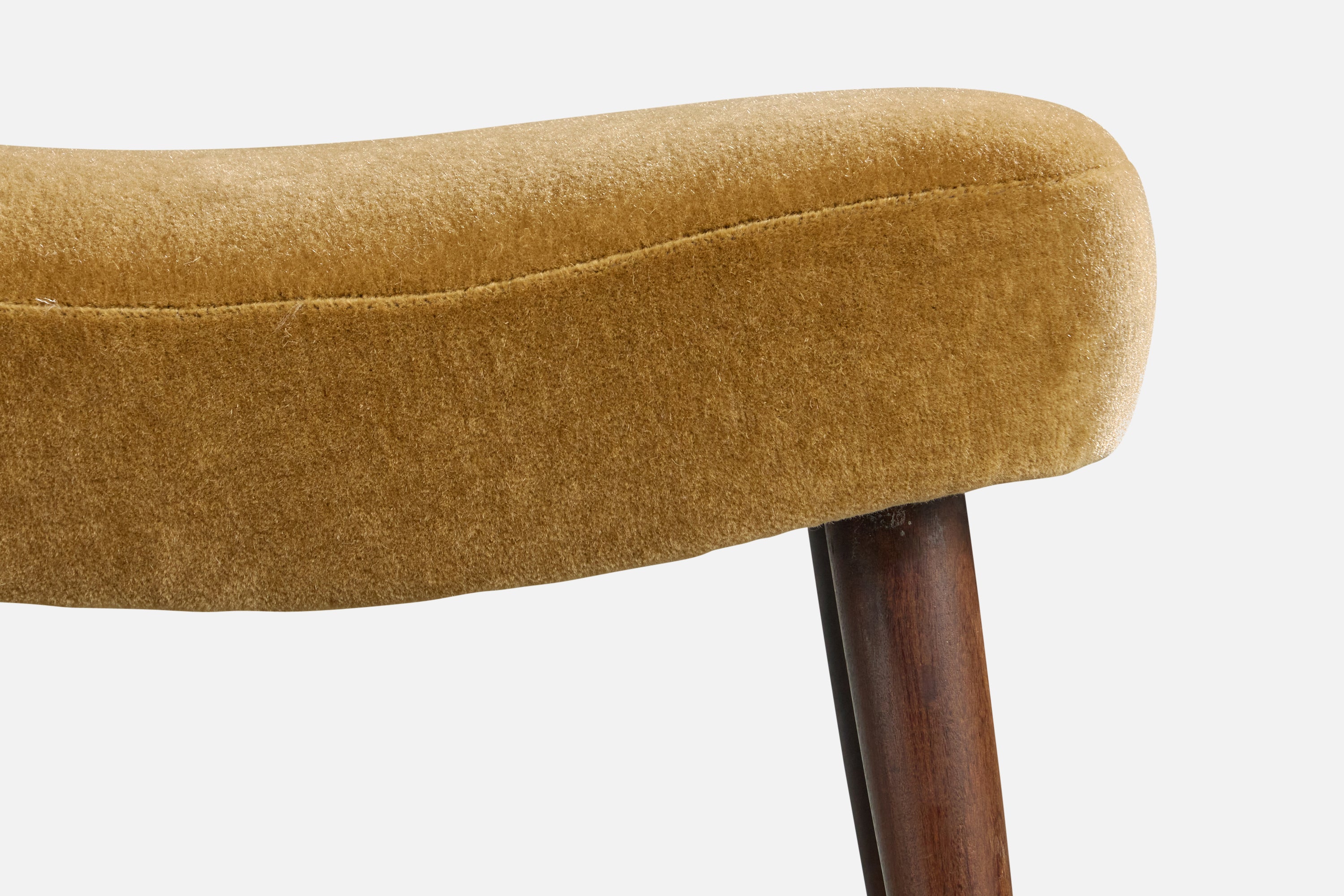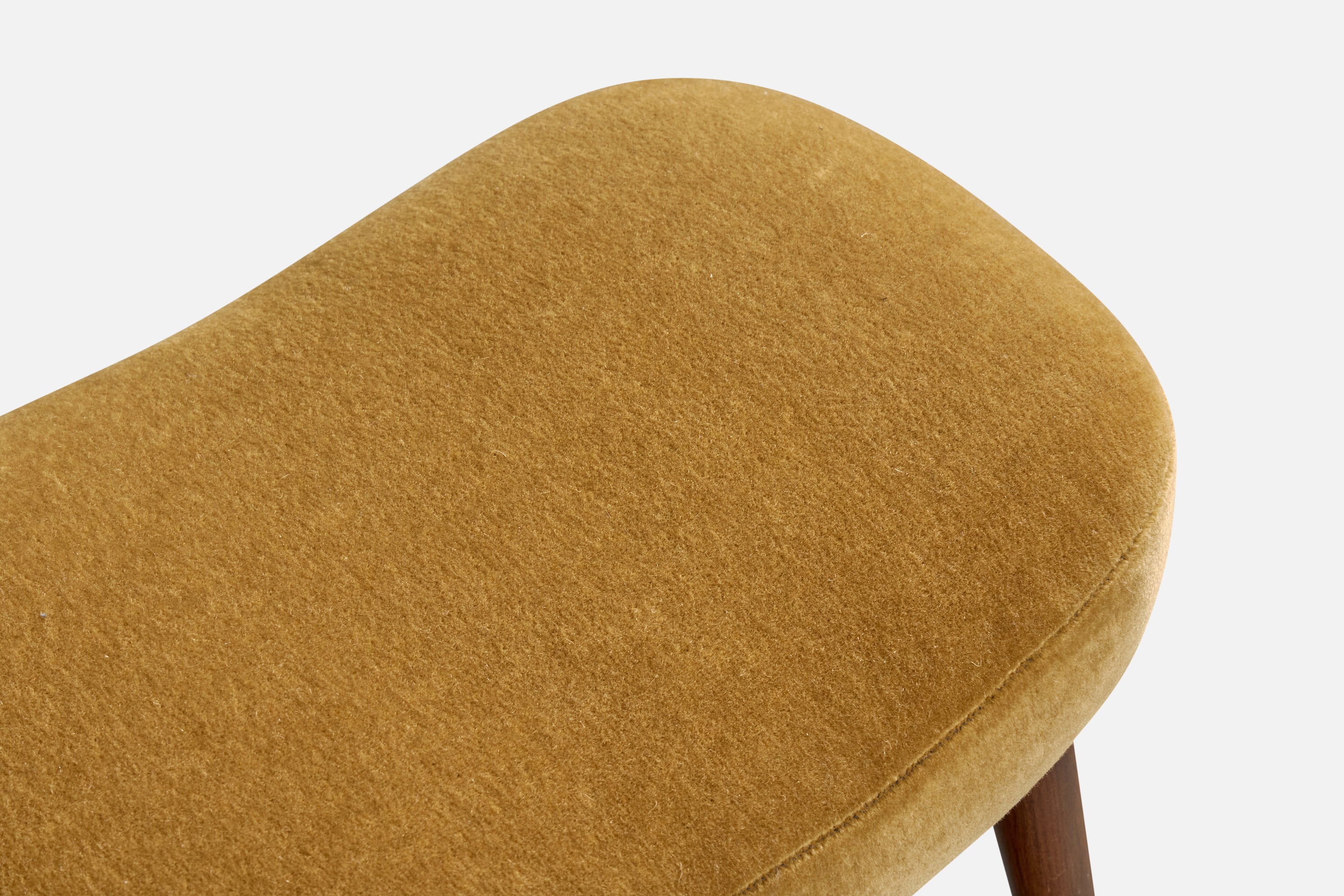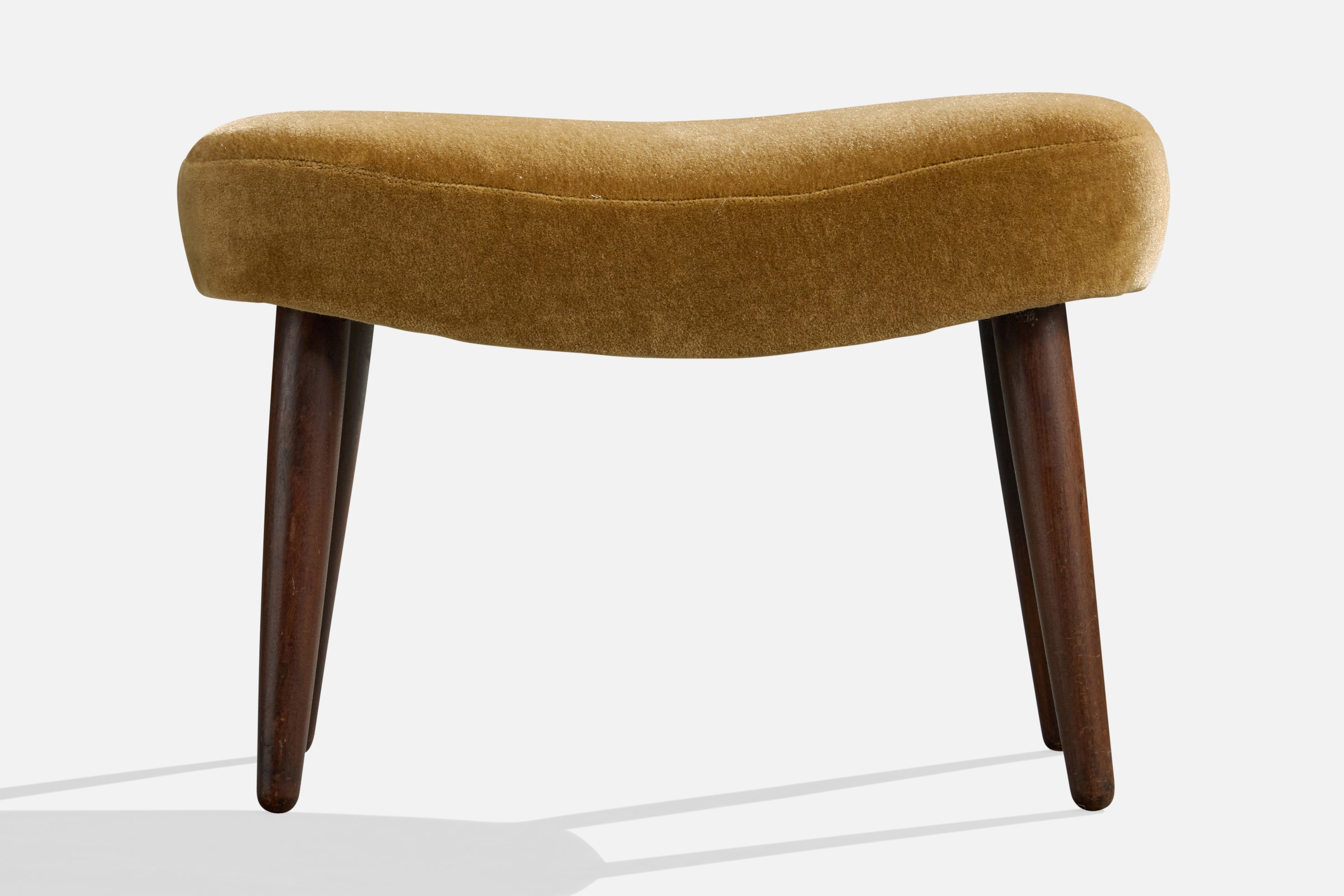 A wood and beige mohair fabric stool produced by Madsen & Schubell, Denmark, c. 1950s.