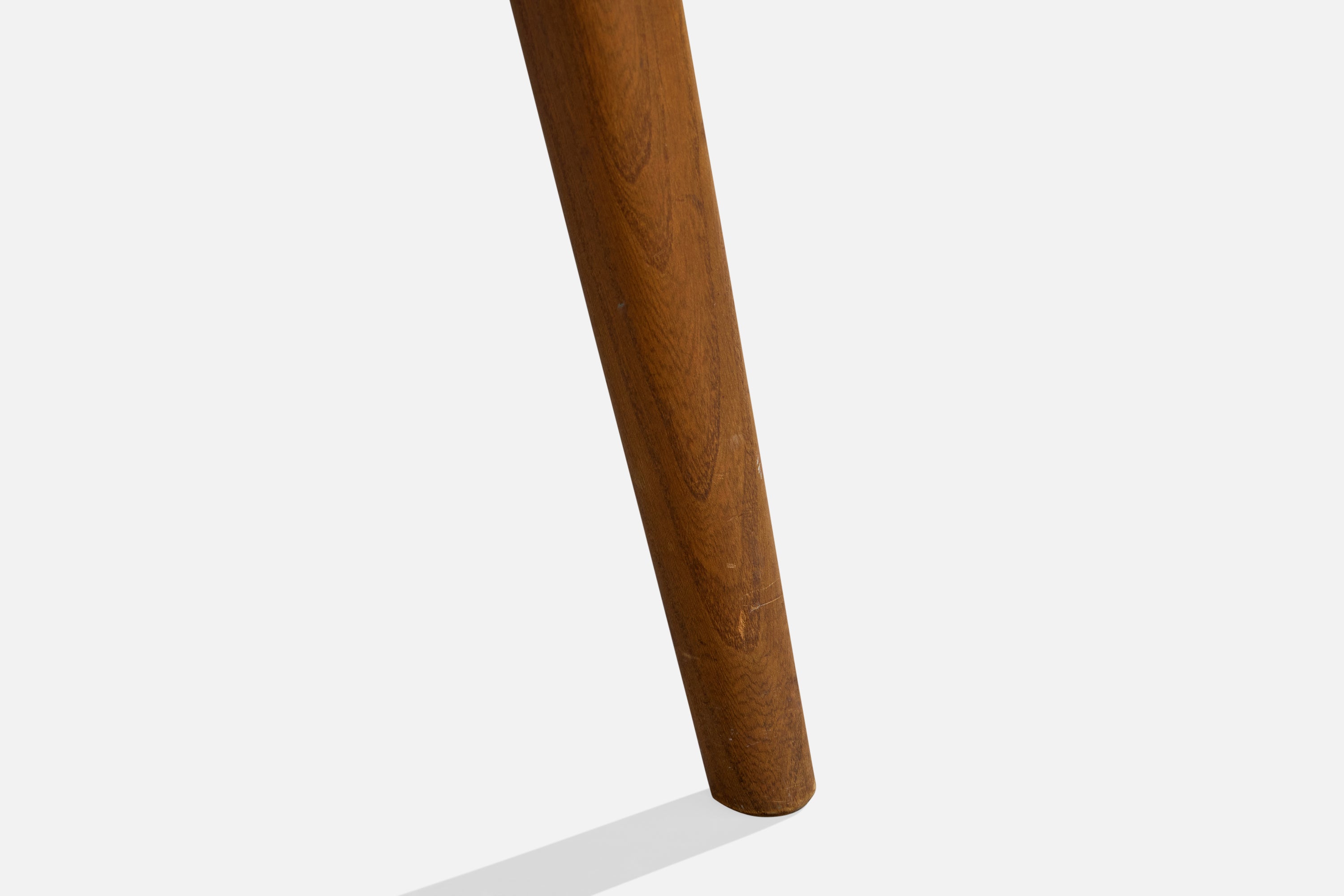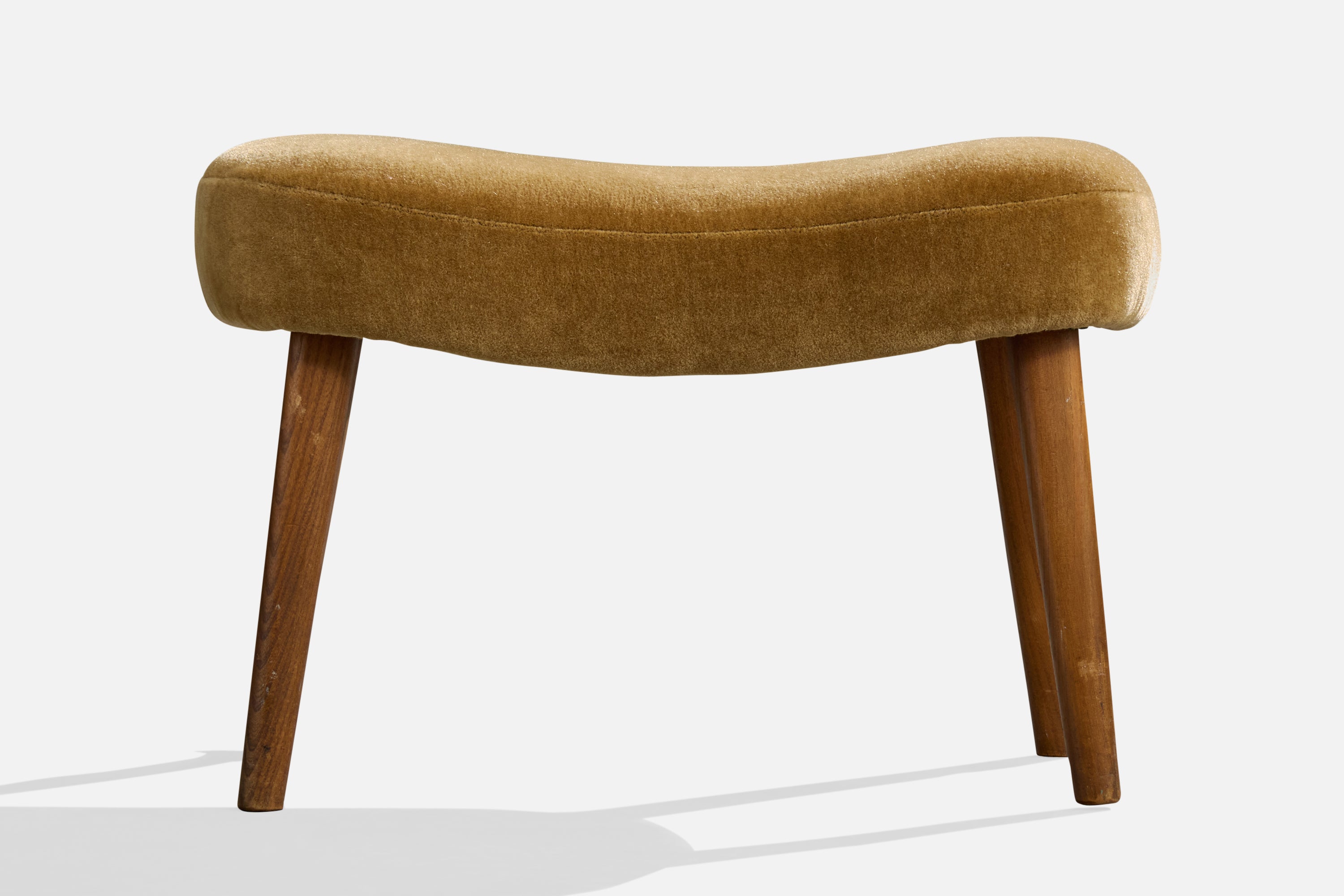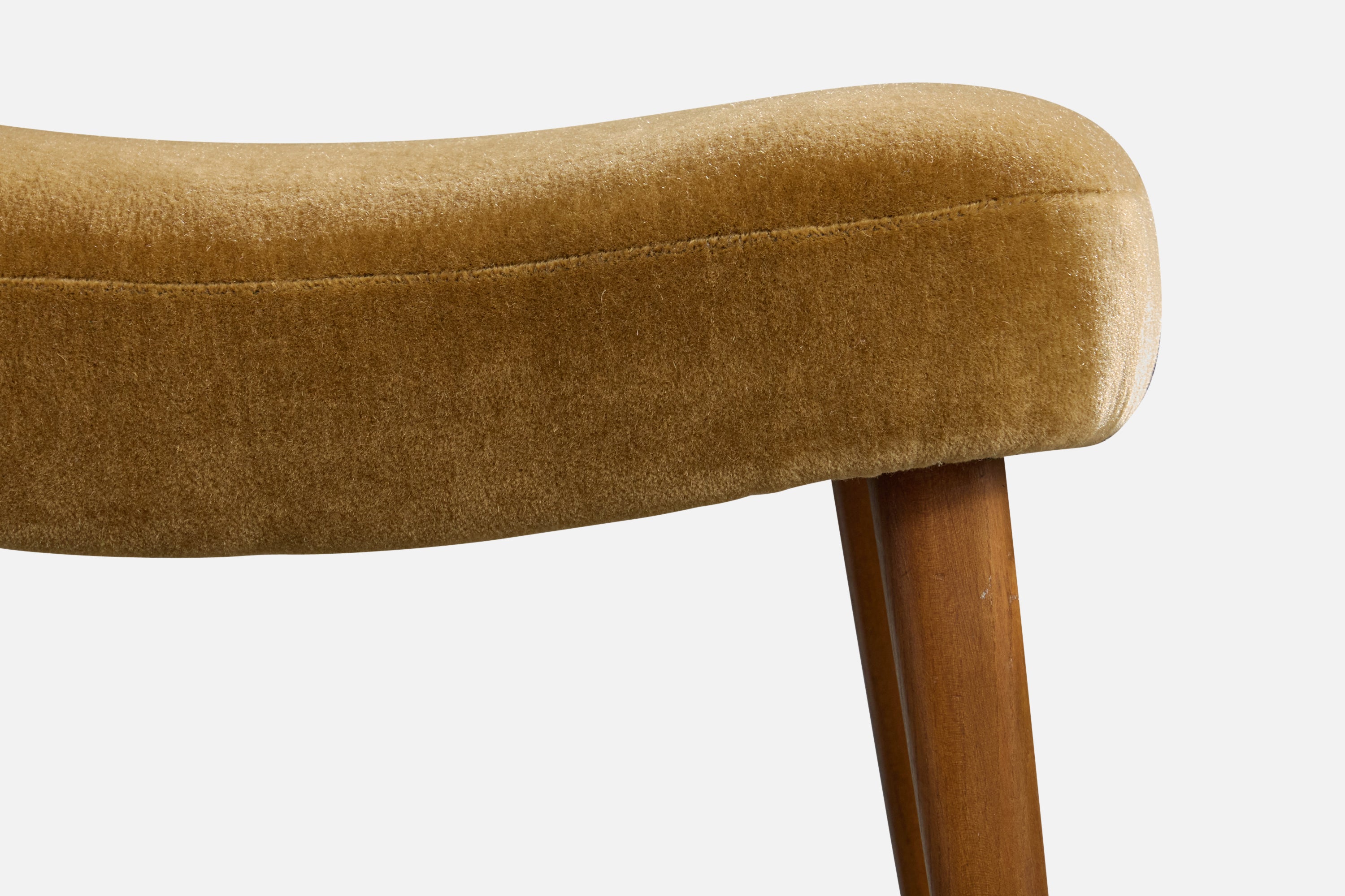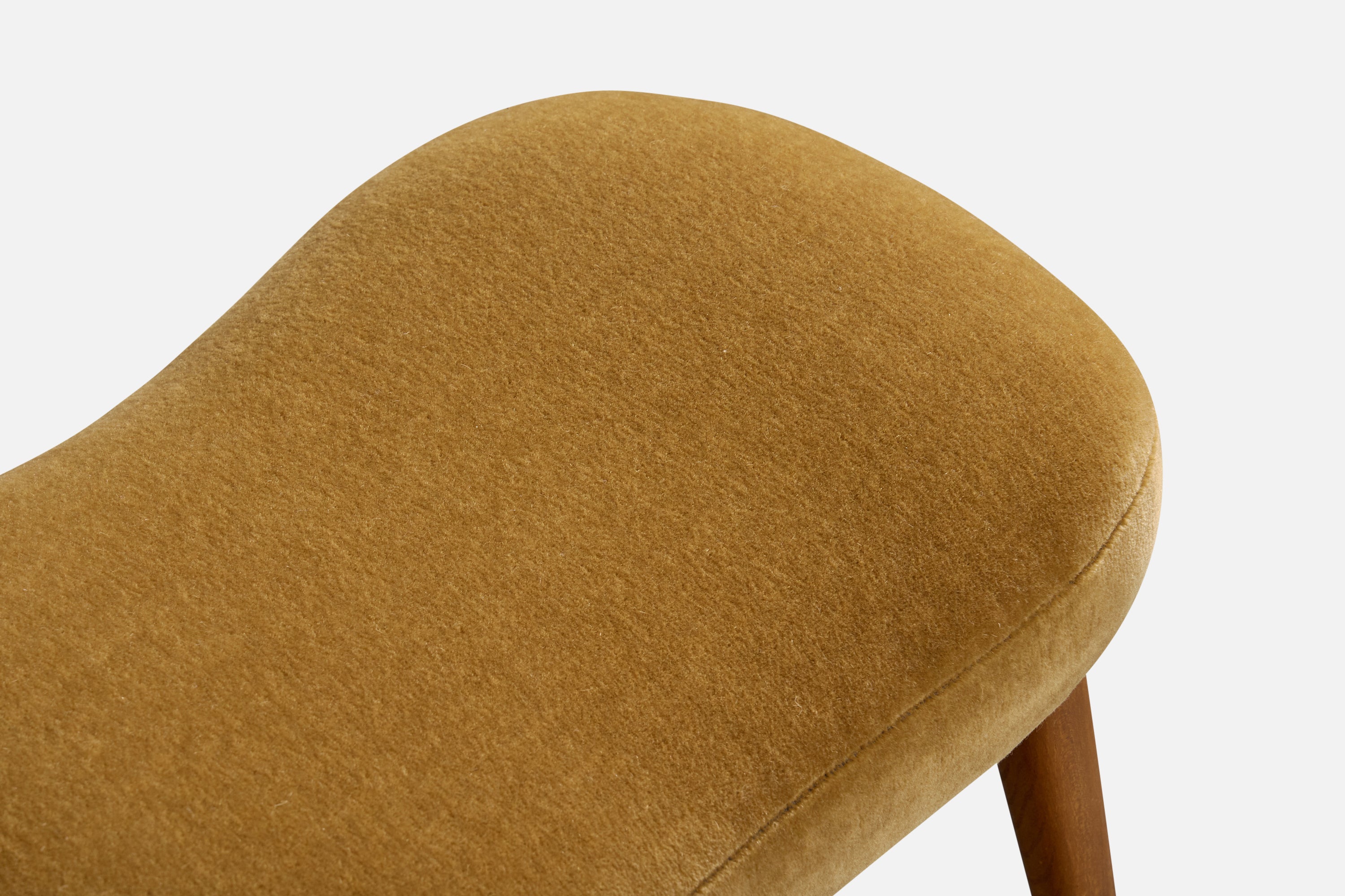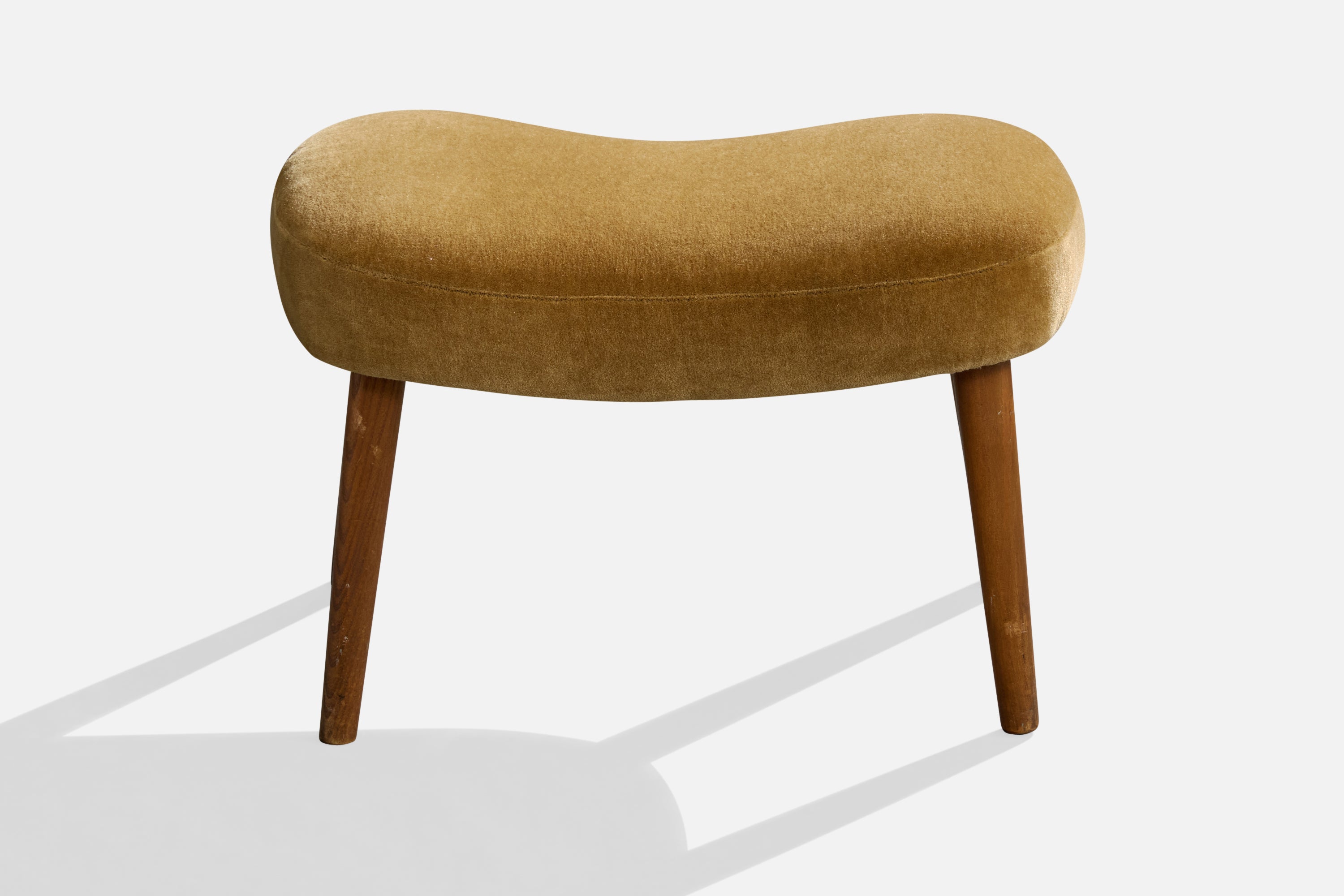 A wood and beige mohair fabric stool produced by Madsen & Schubell, Denmark, c. 1950s.