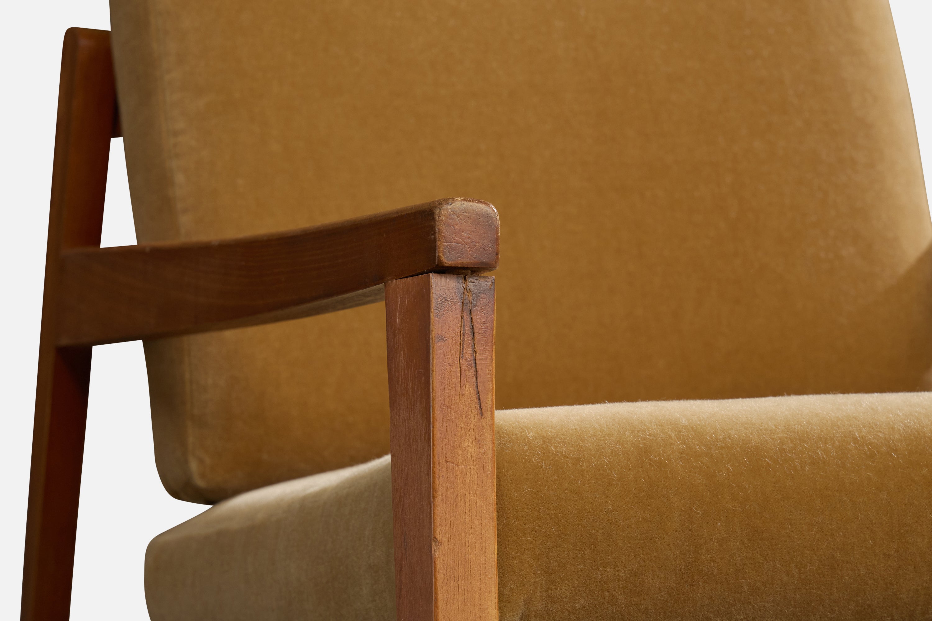 Edmond Spence Attribution, Lounge Chair, Mohair, Wood, Brass, USA, 1950s