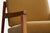 Some fraying to one area on seat webbing. Patina on brass feet. Wear to wood frame consistent with vintage age and normal use. Reupholstered in brand new mohair.