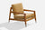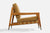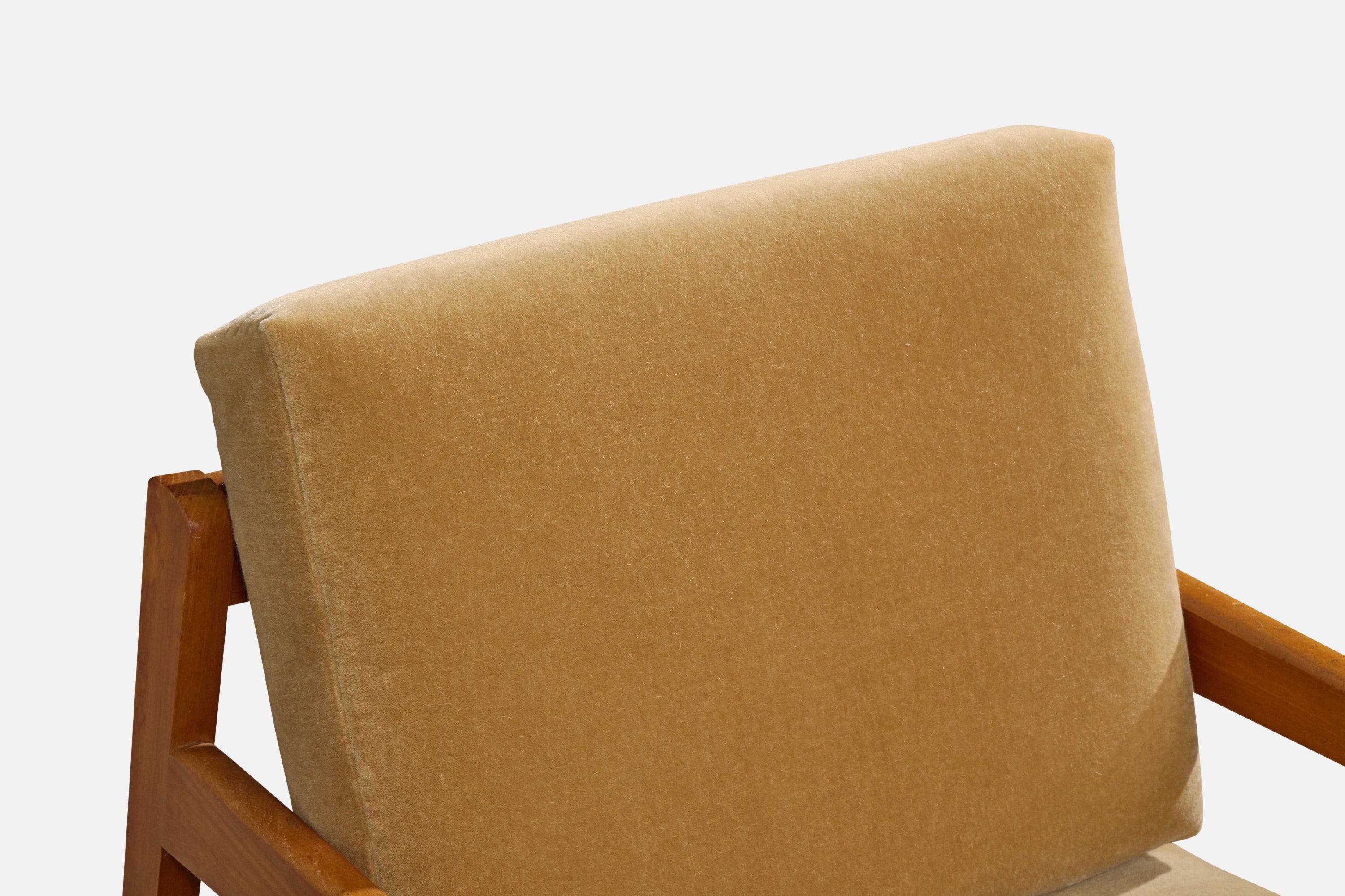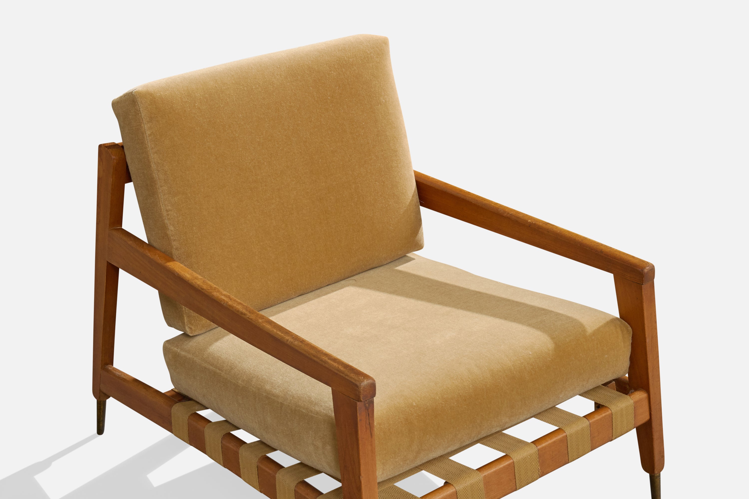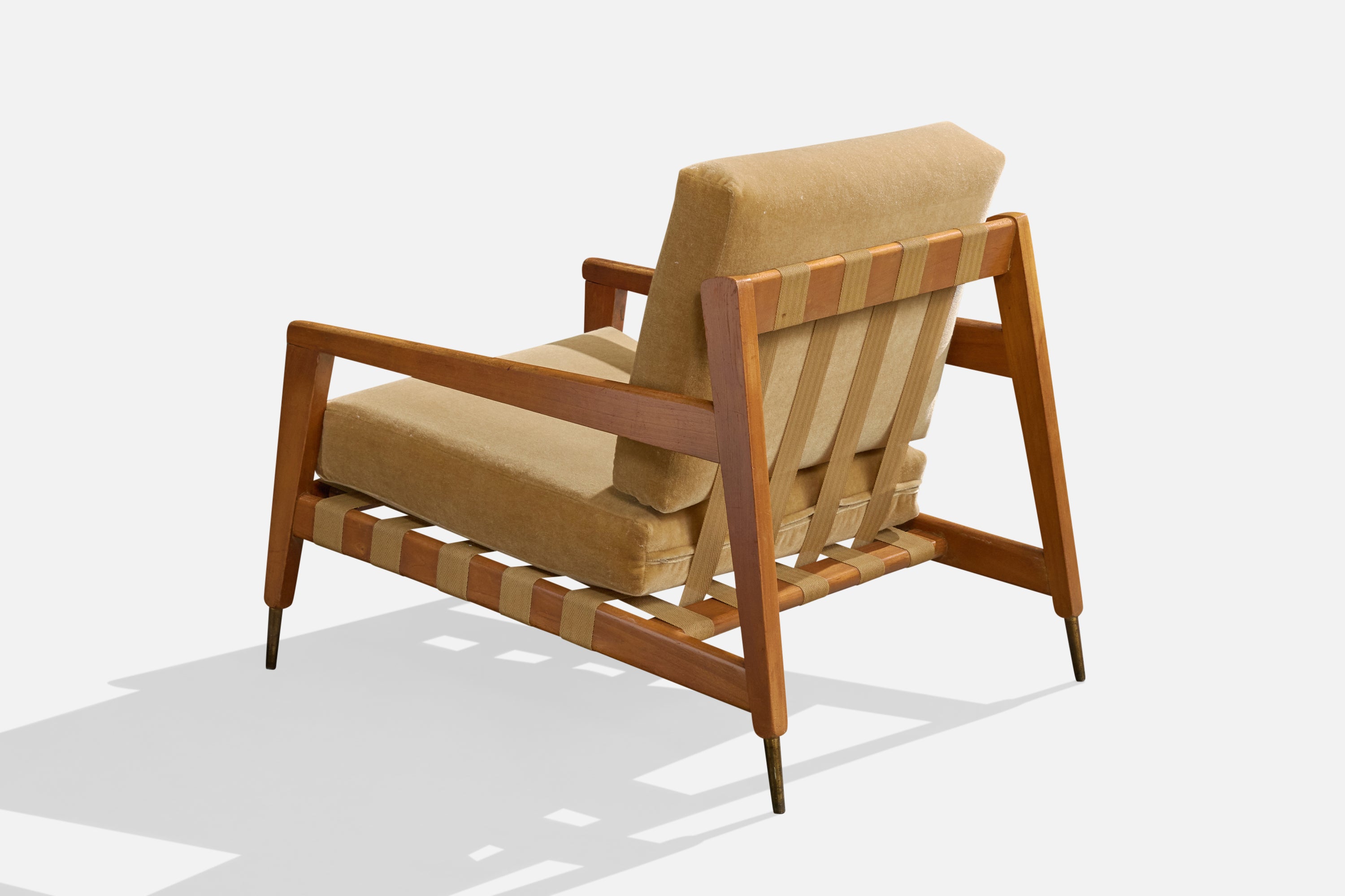 A beige mohair, wood, brass and webbing lounge chair attributed to Edmond Spence, US, c. 1950s.