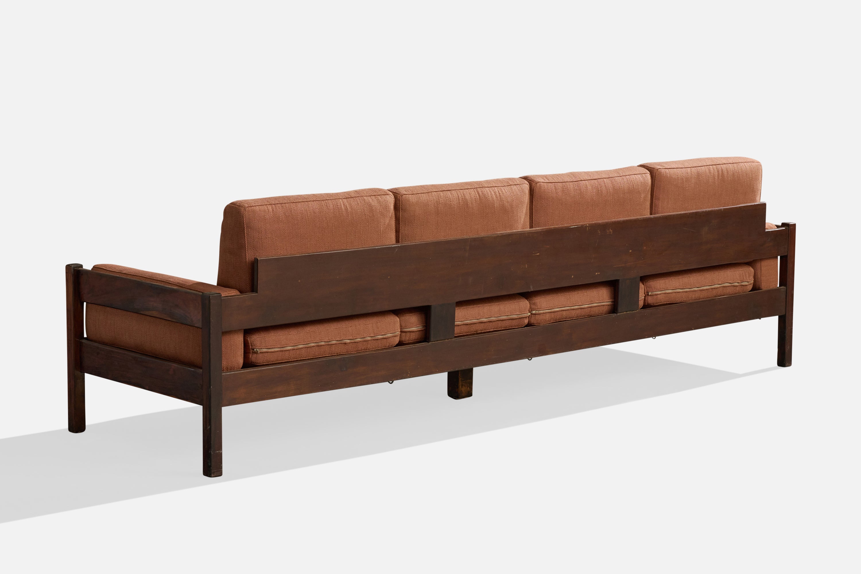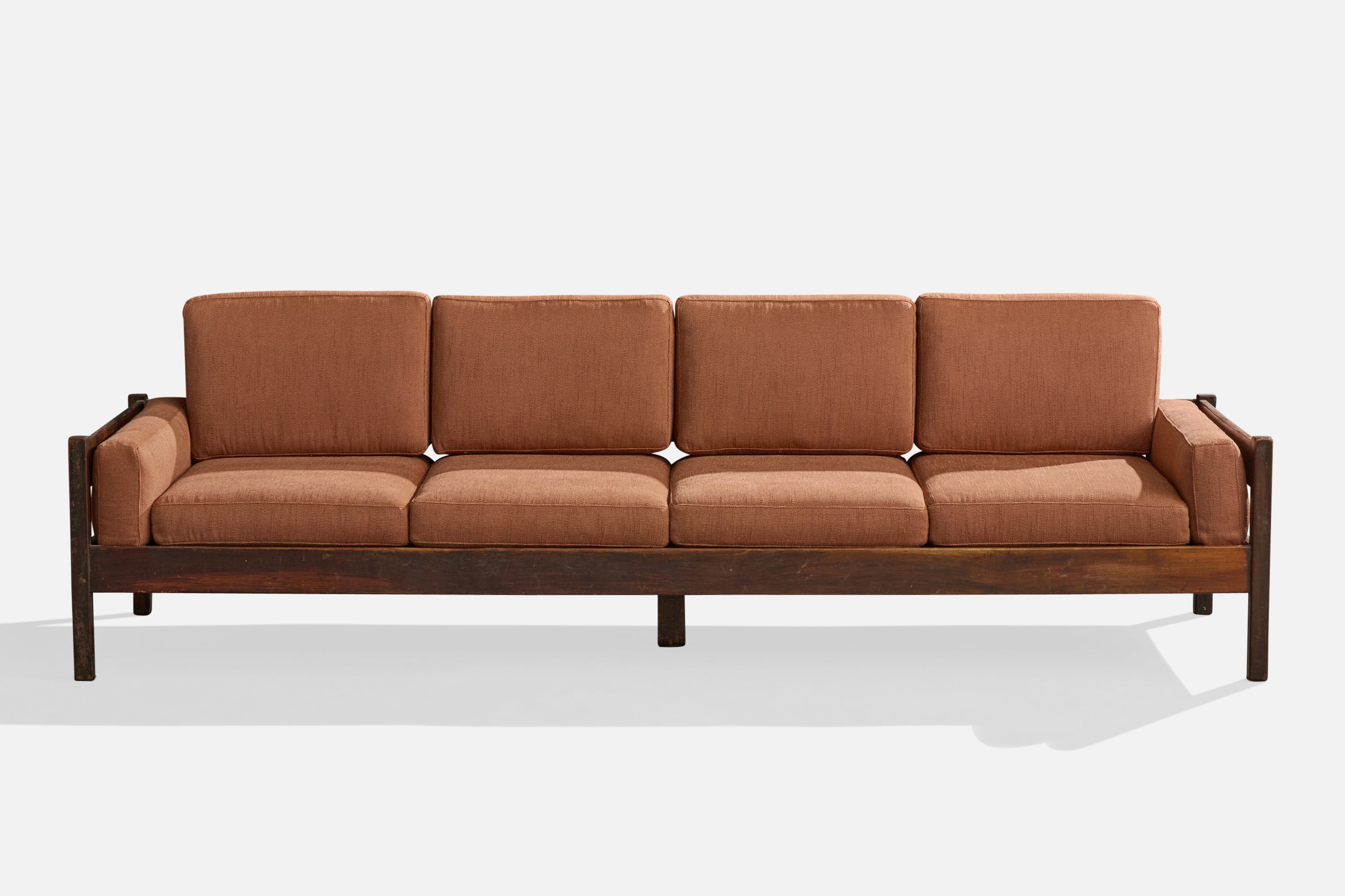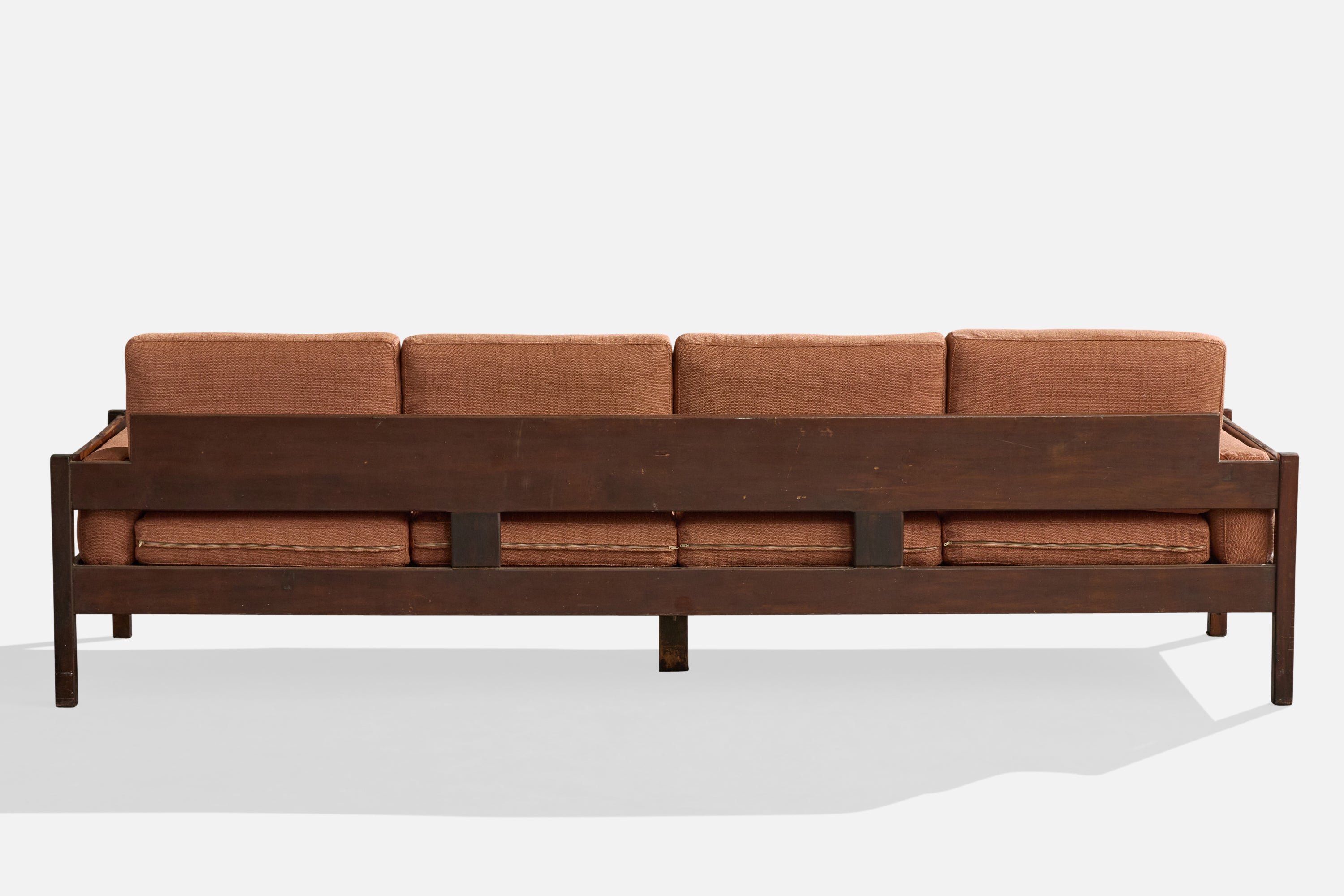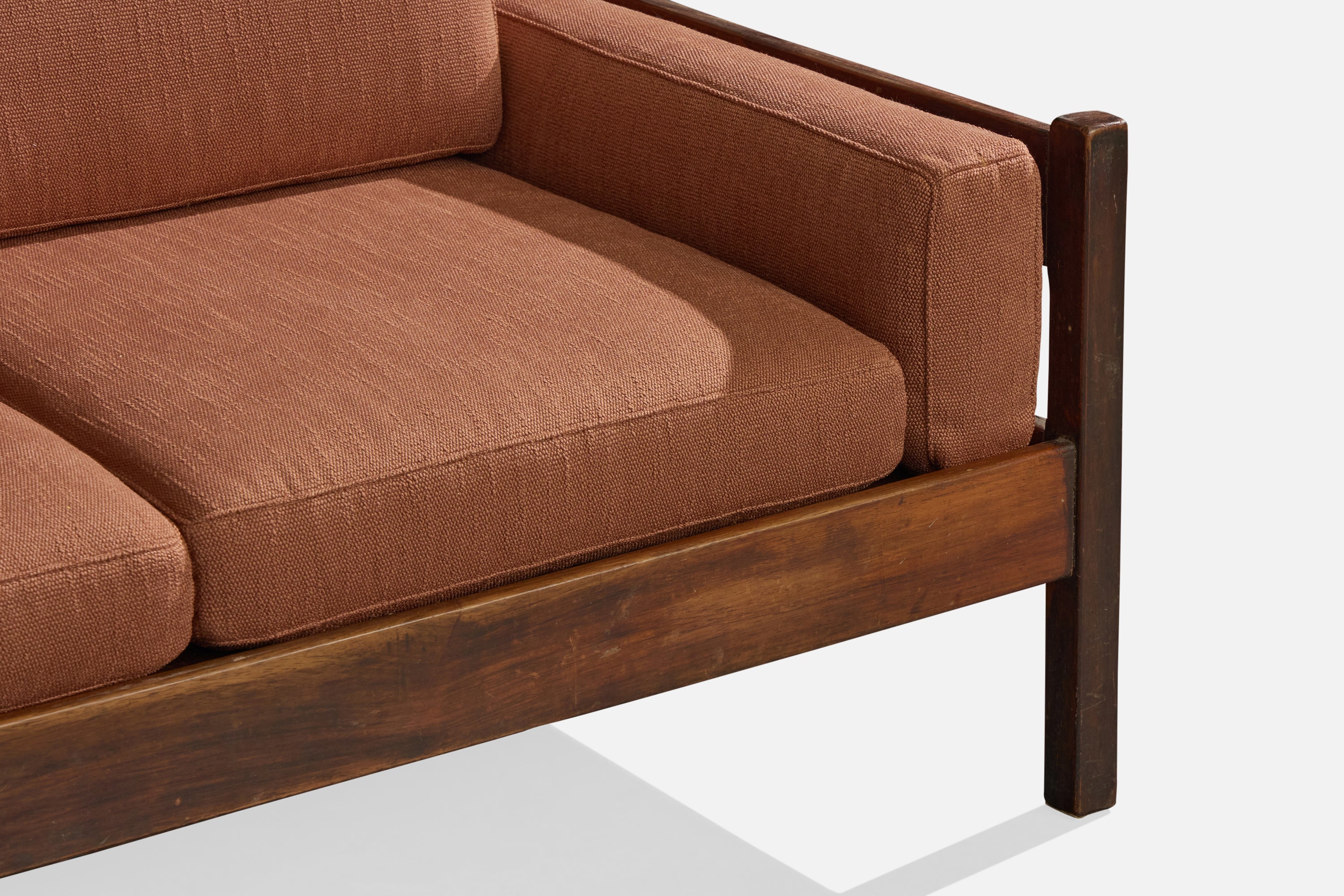 A wood and red fabric sofa produced by Celina Decorações, Rio de Janeiro, Brazil, c. 1960s
