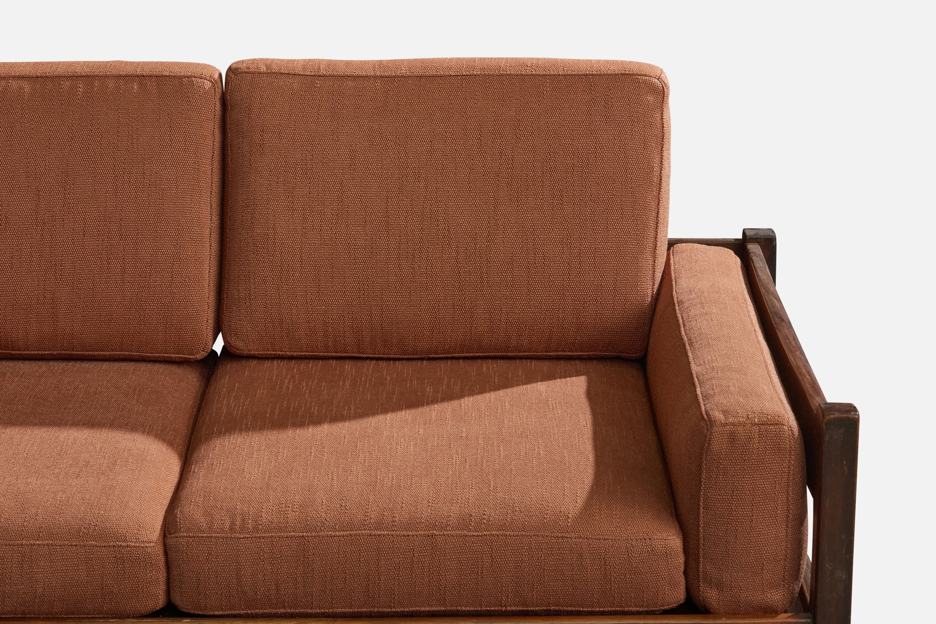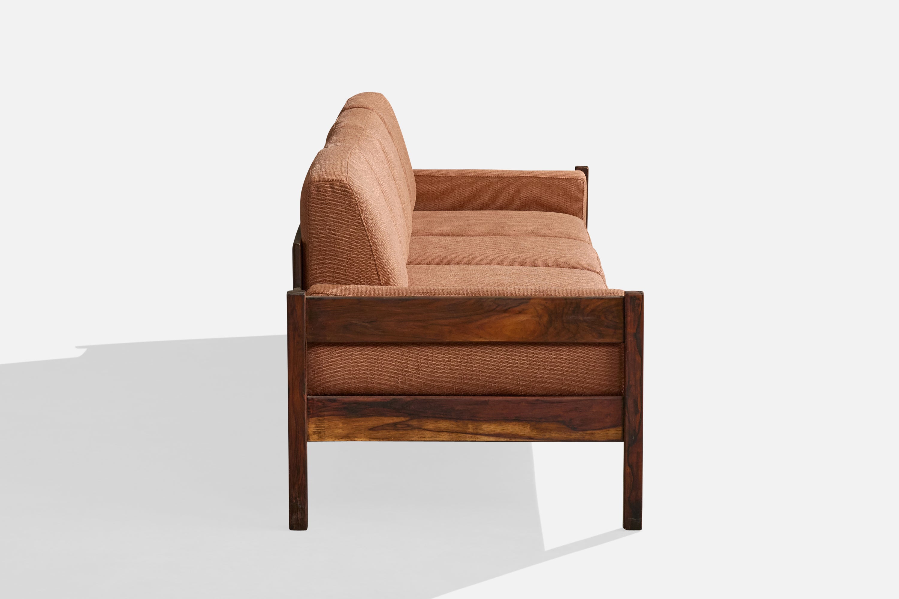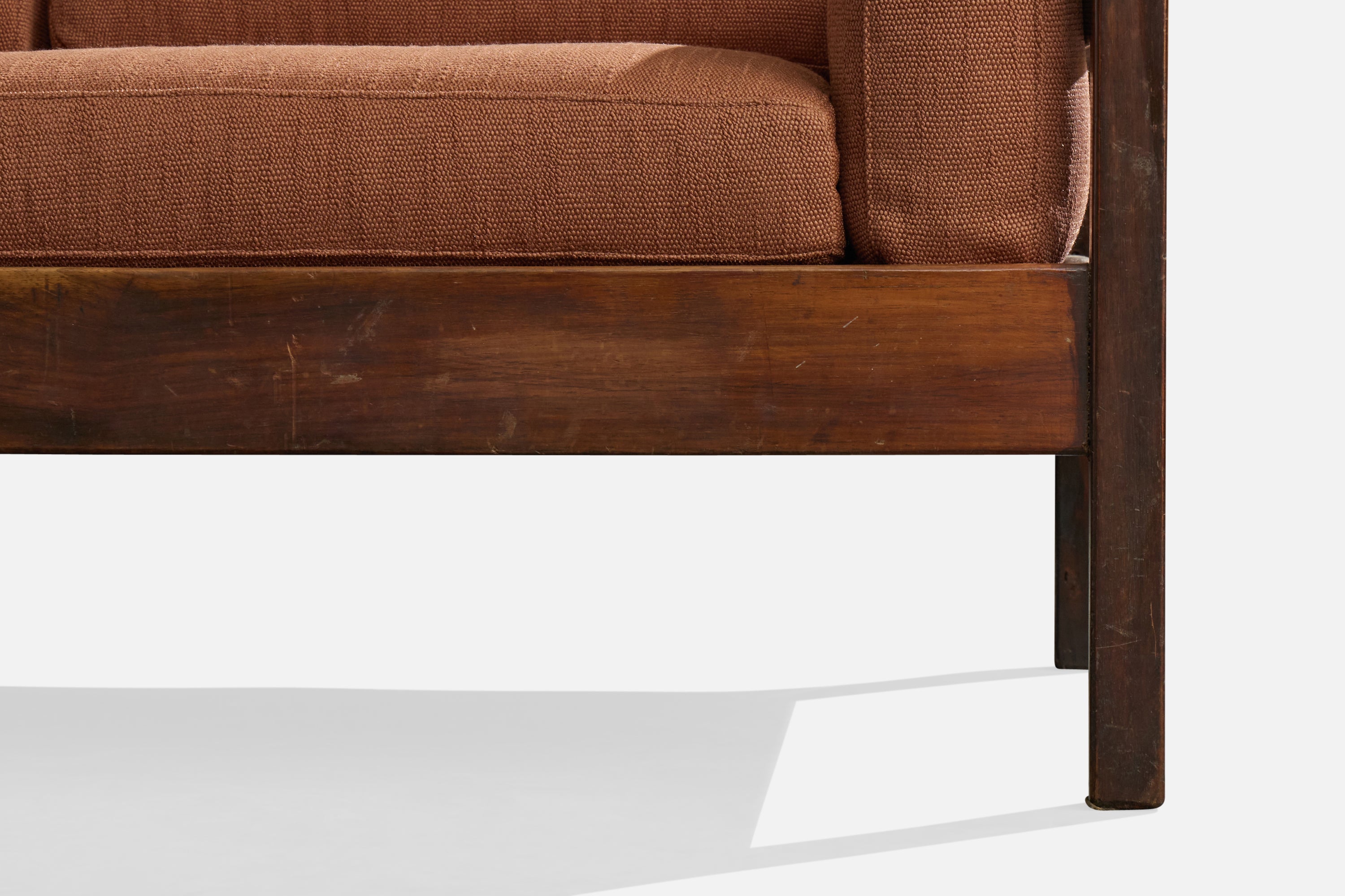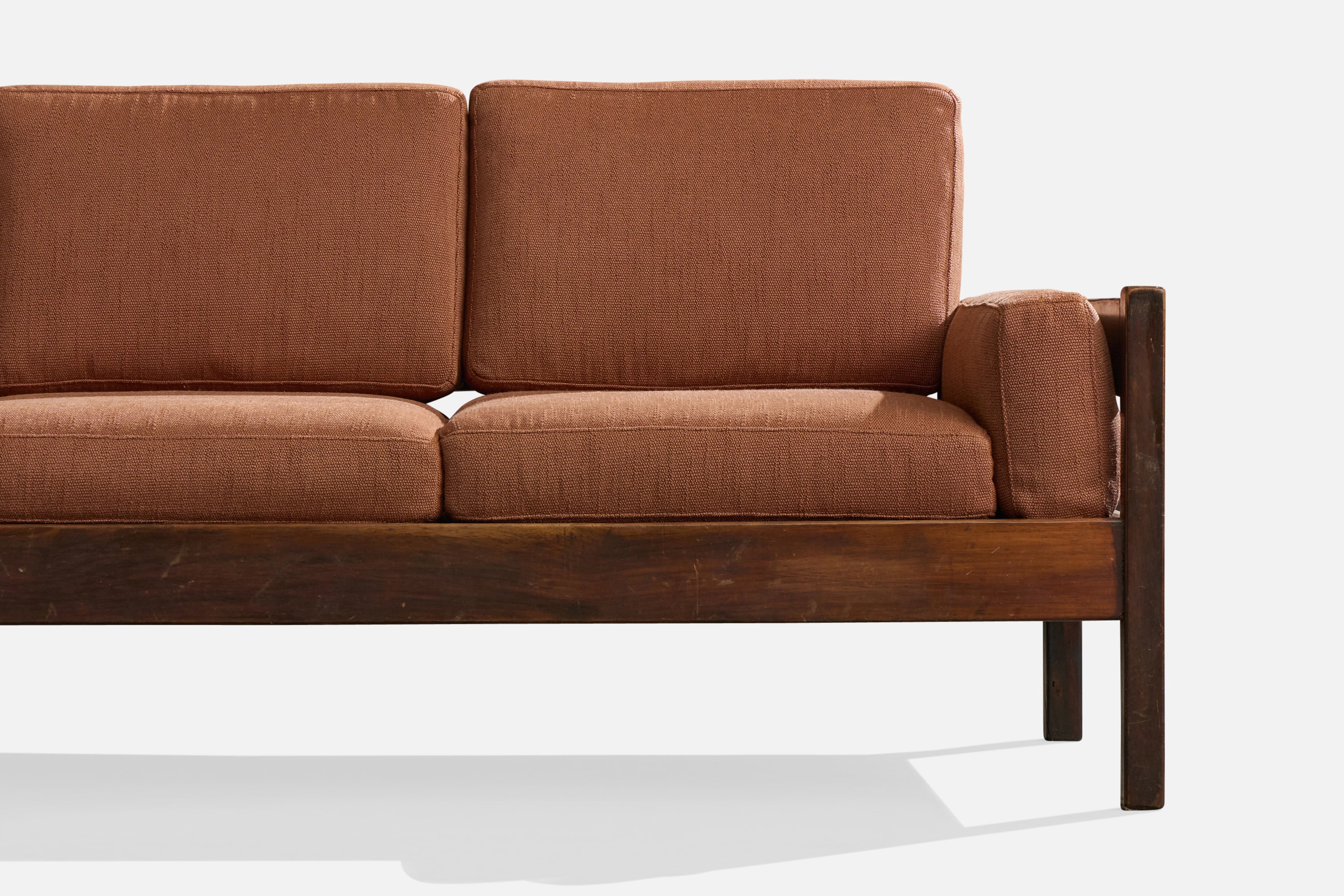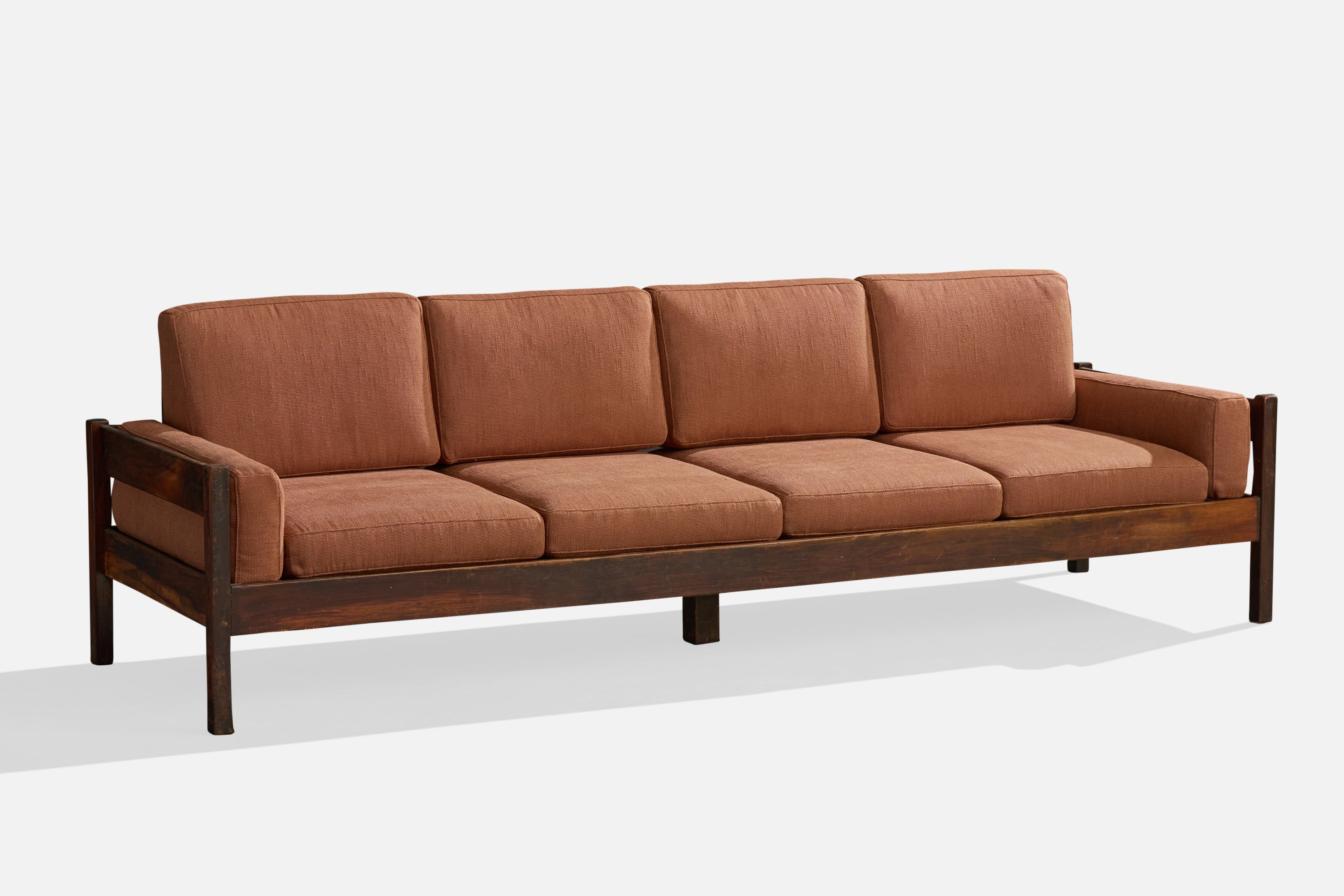 A wood and red fabric sofa produced by Celina Decorações, Rio de Janeiro, Brazil, c. 1960s