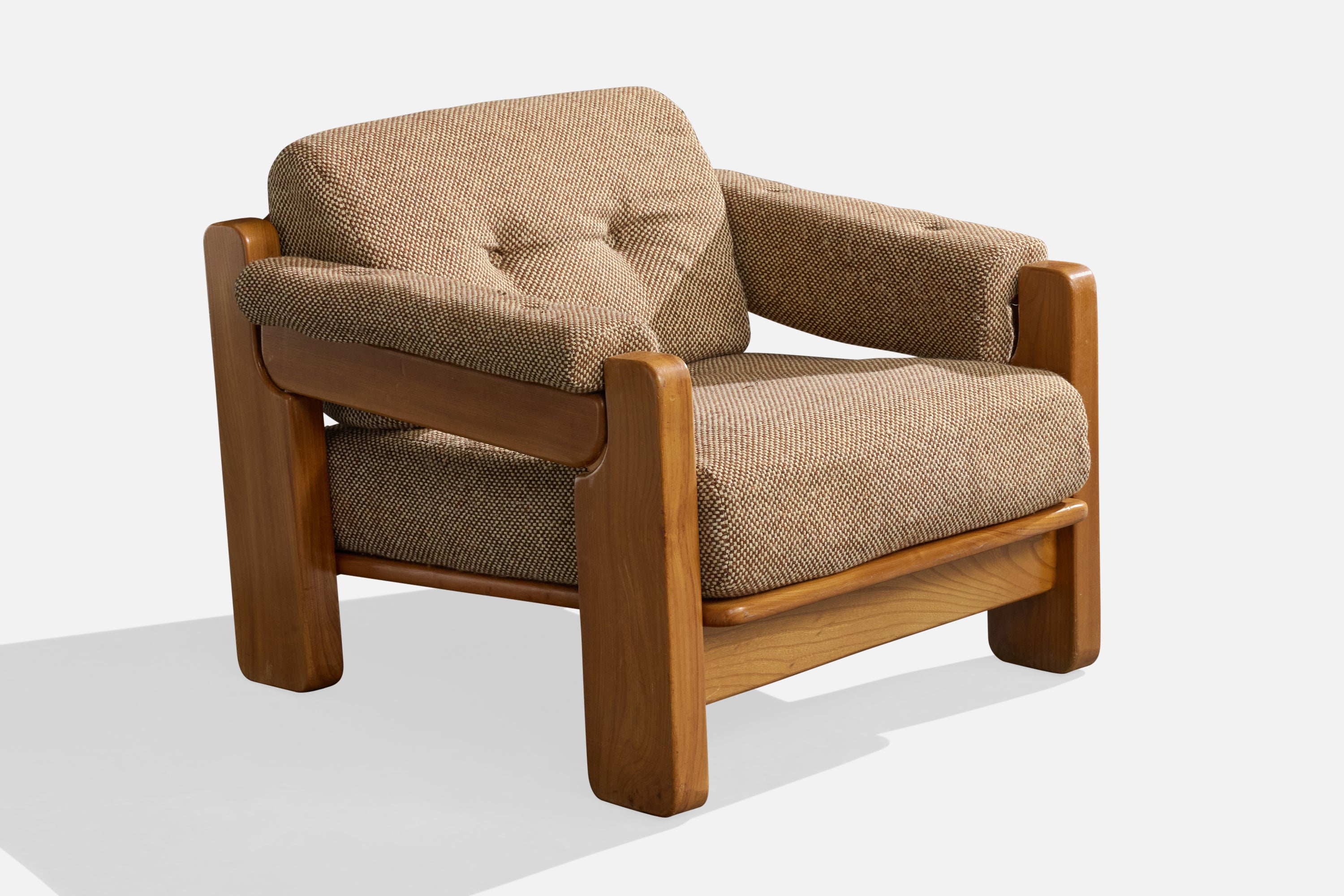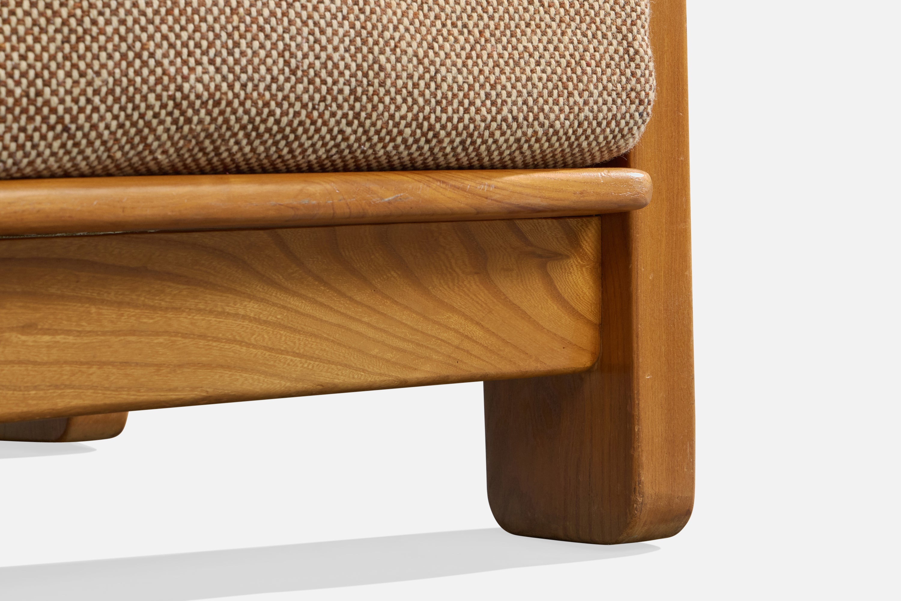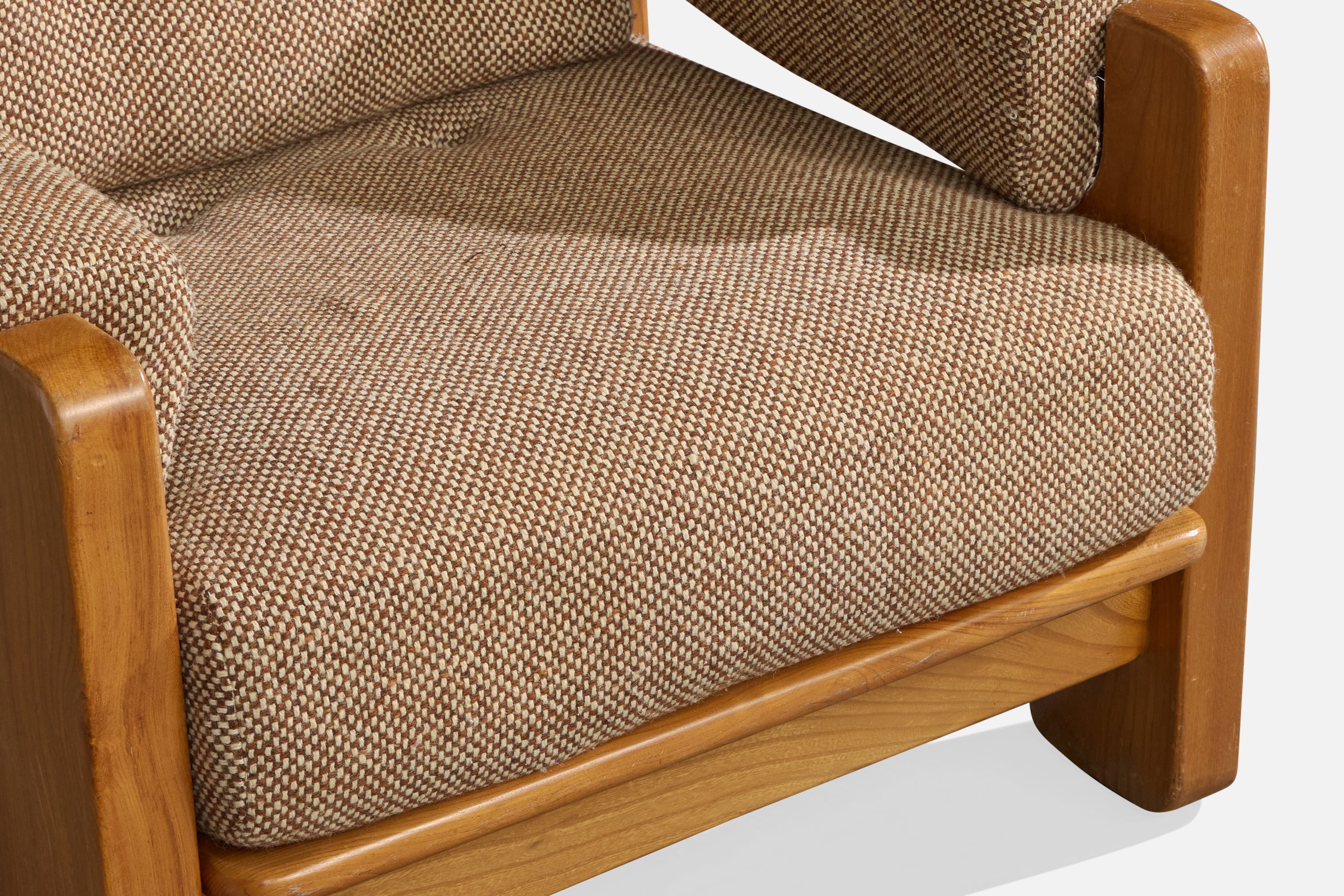 Maison Regain, Lounge Chairs, Elm, Fabric, France, 1970s
