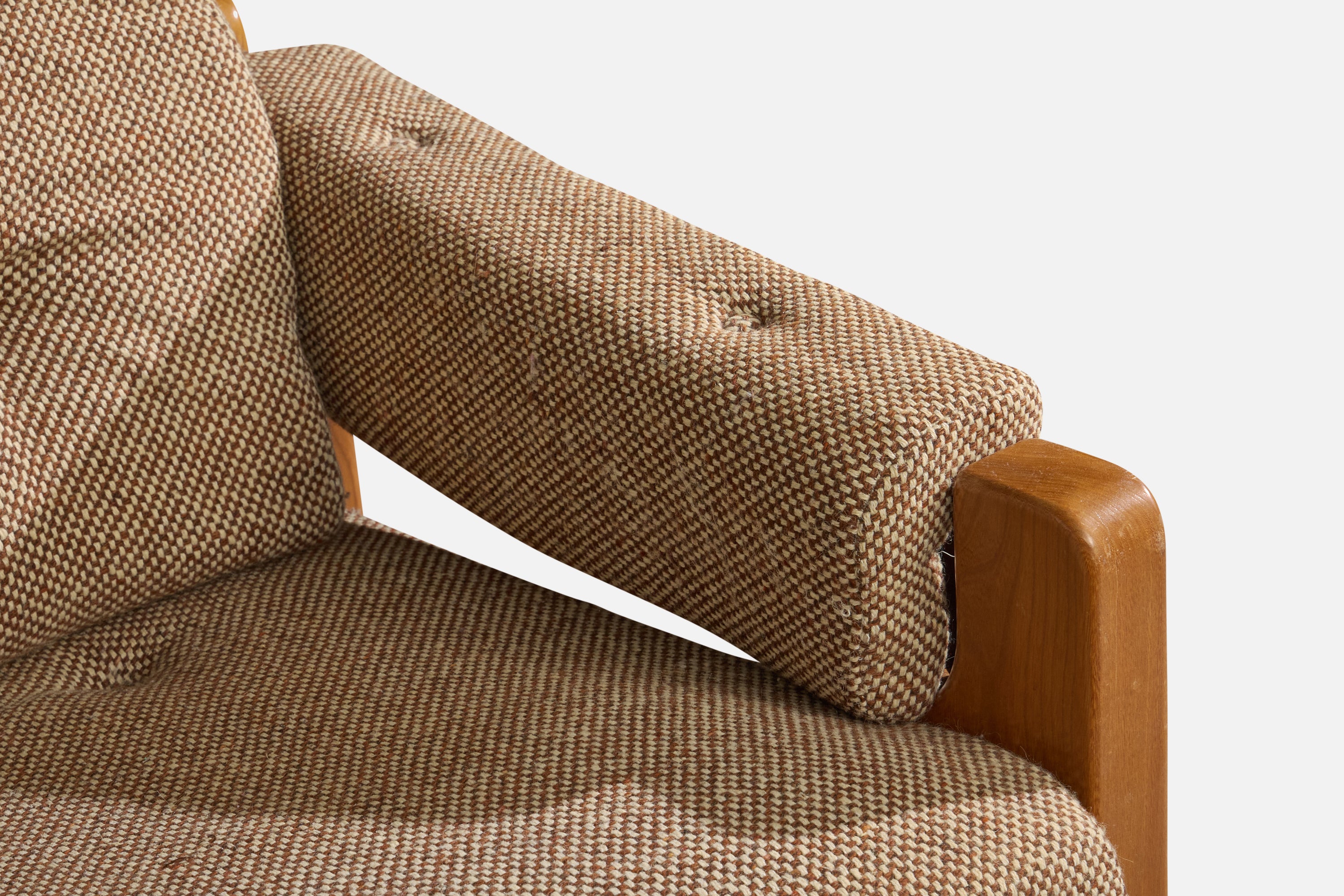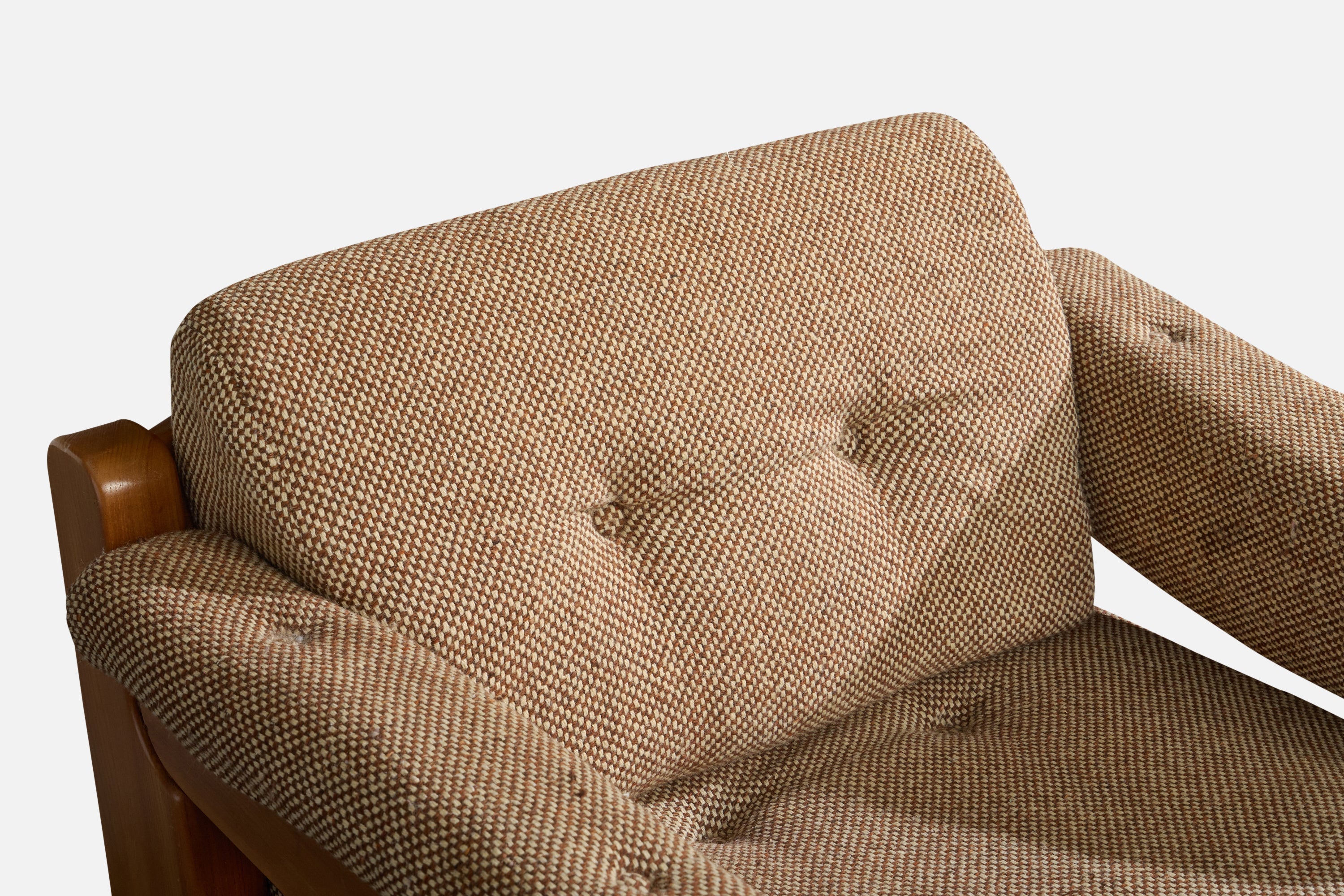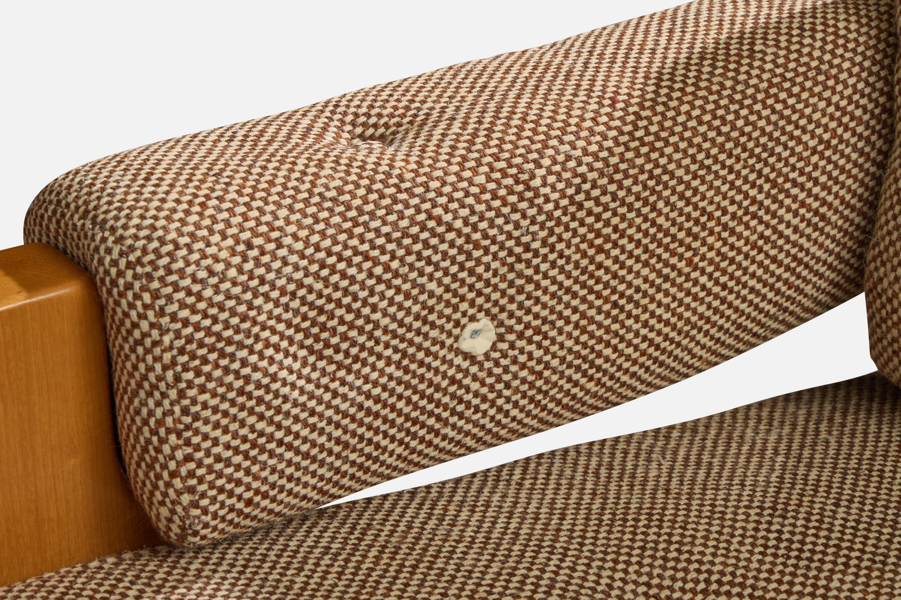 Arm cushions in minor distress reupholstery recommended. Wear consistent with age and use.
