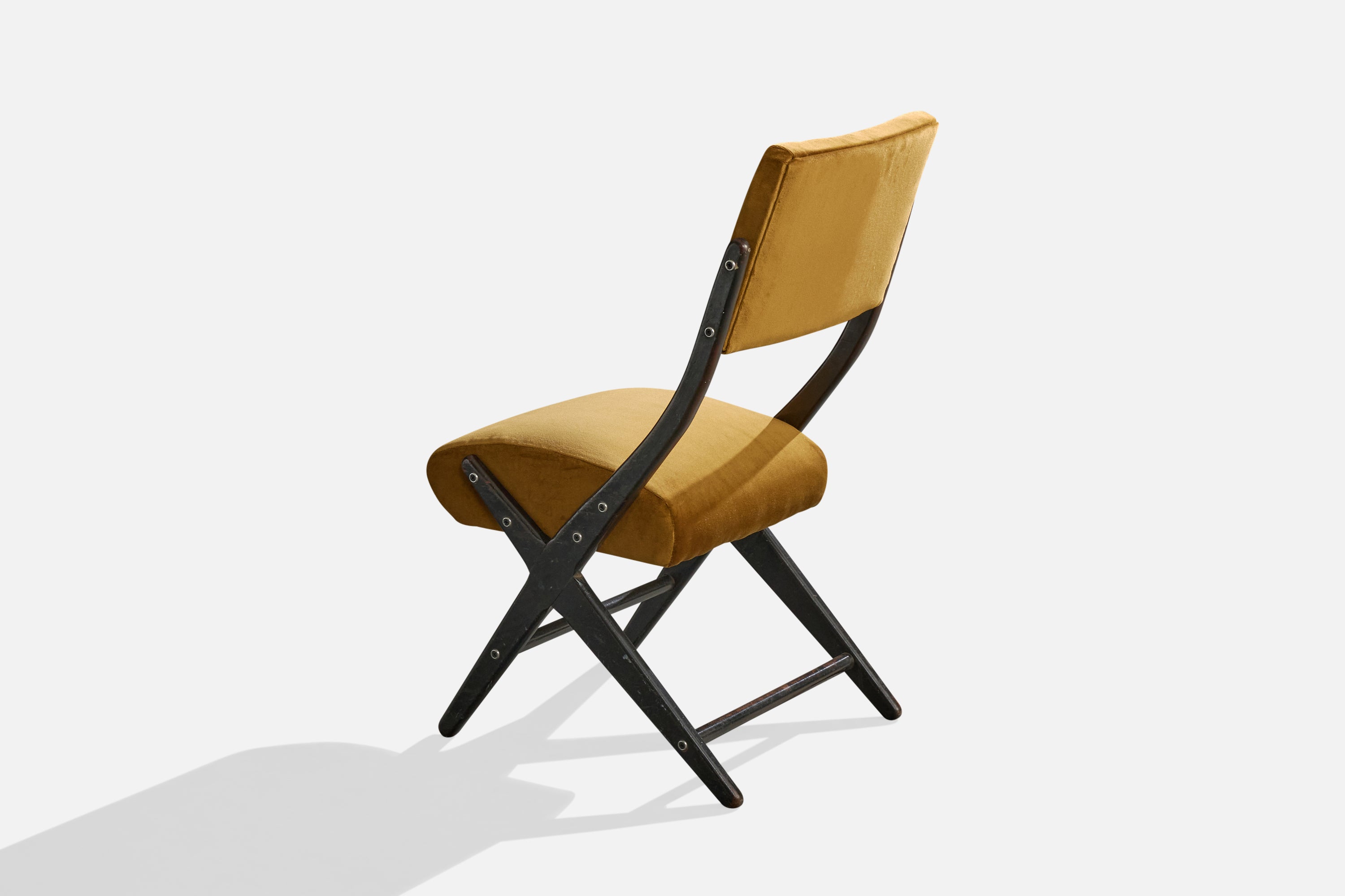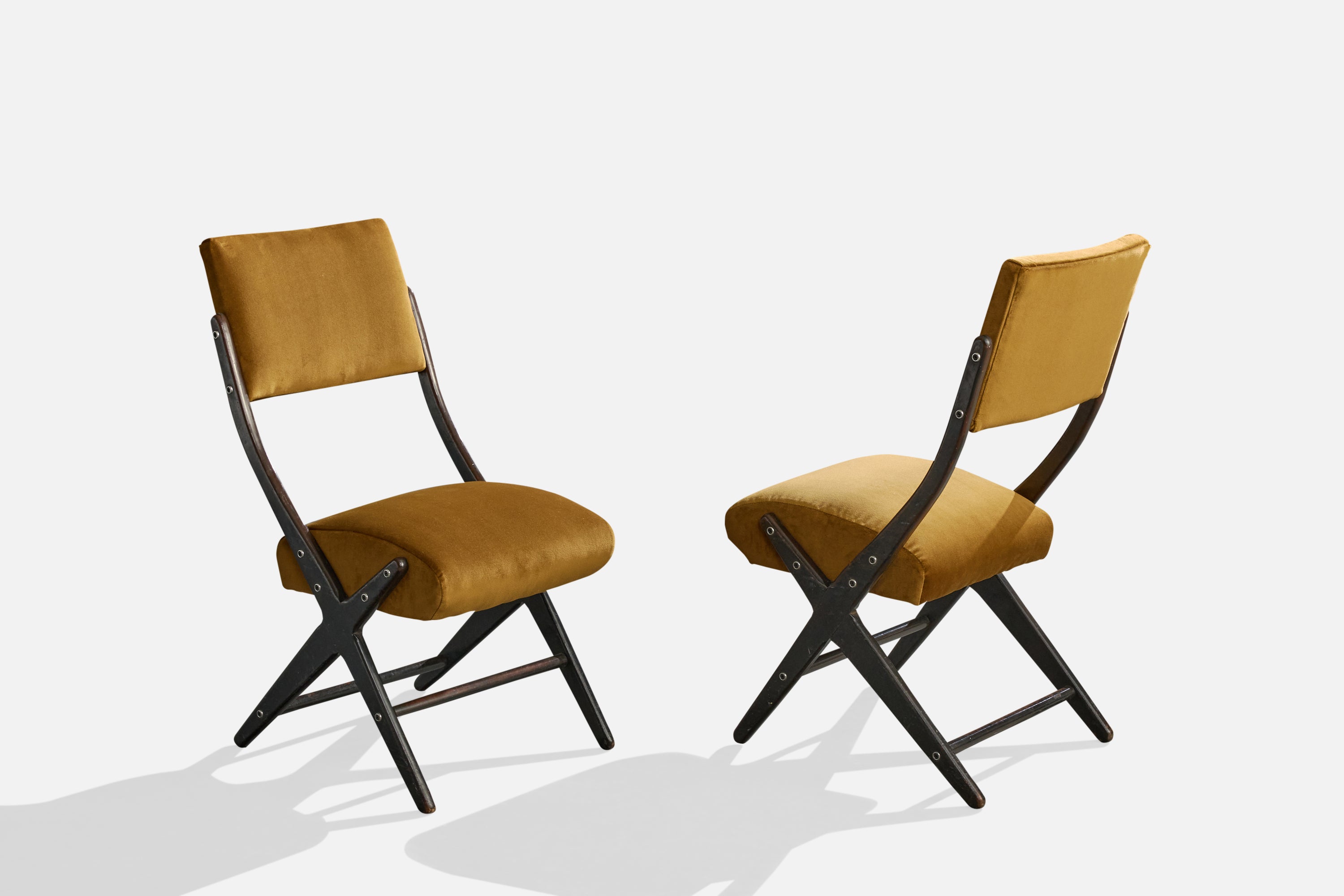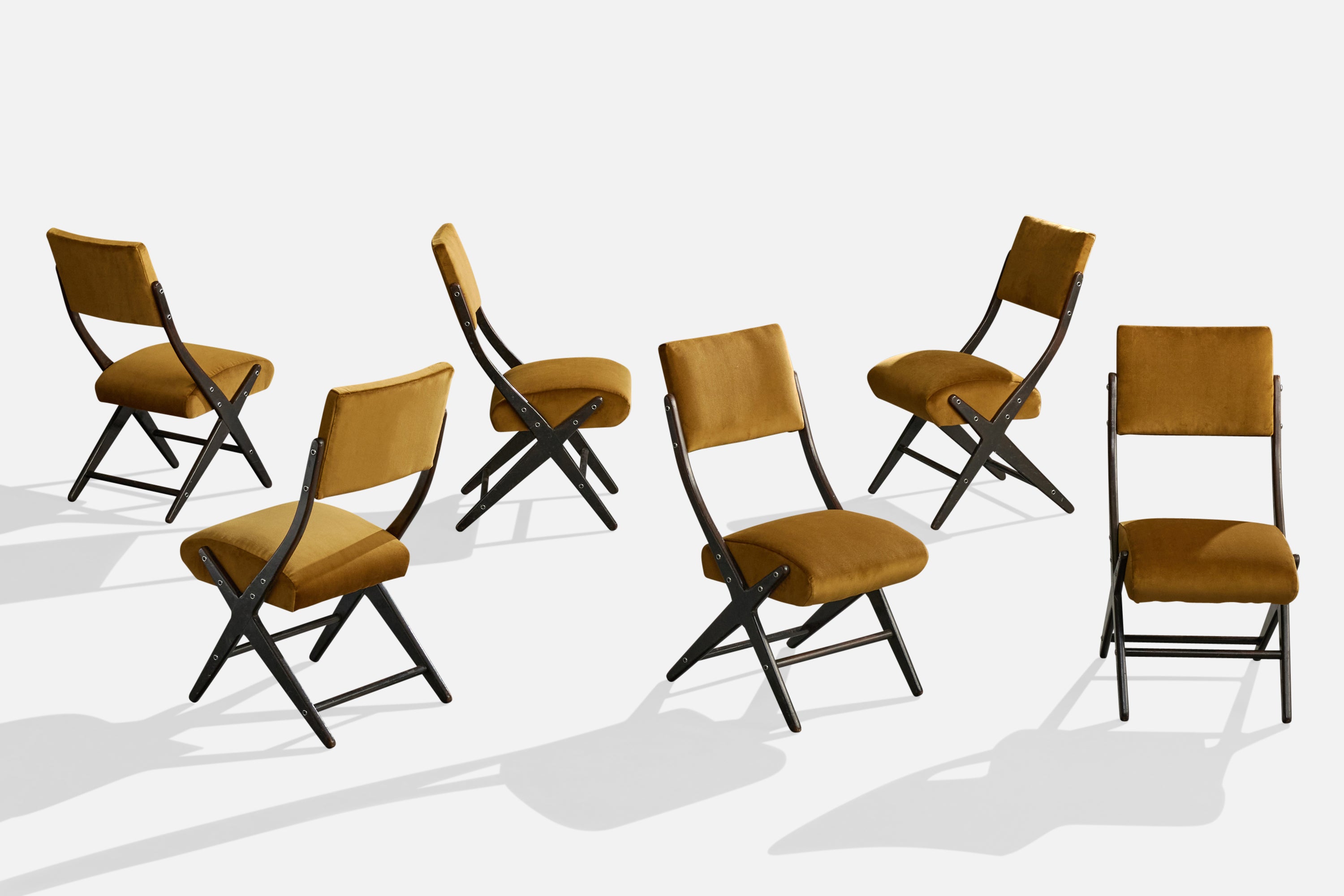 A set of 6 dark-stained wood and beige mohair dining room chairs attributed to Carlo Hauner for Forma, Brazil, c. 1950s.