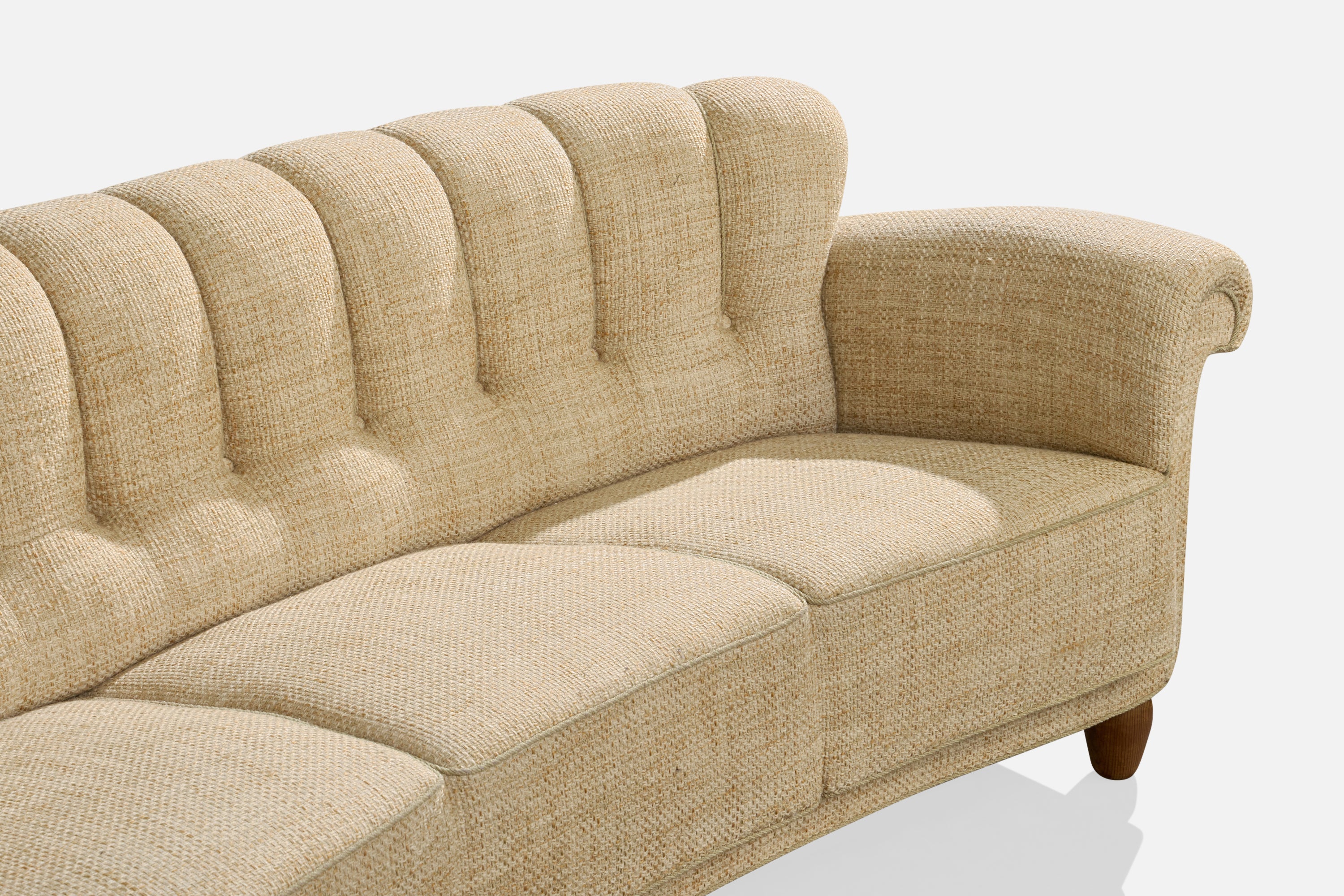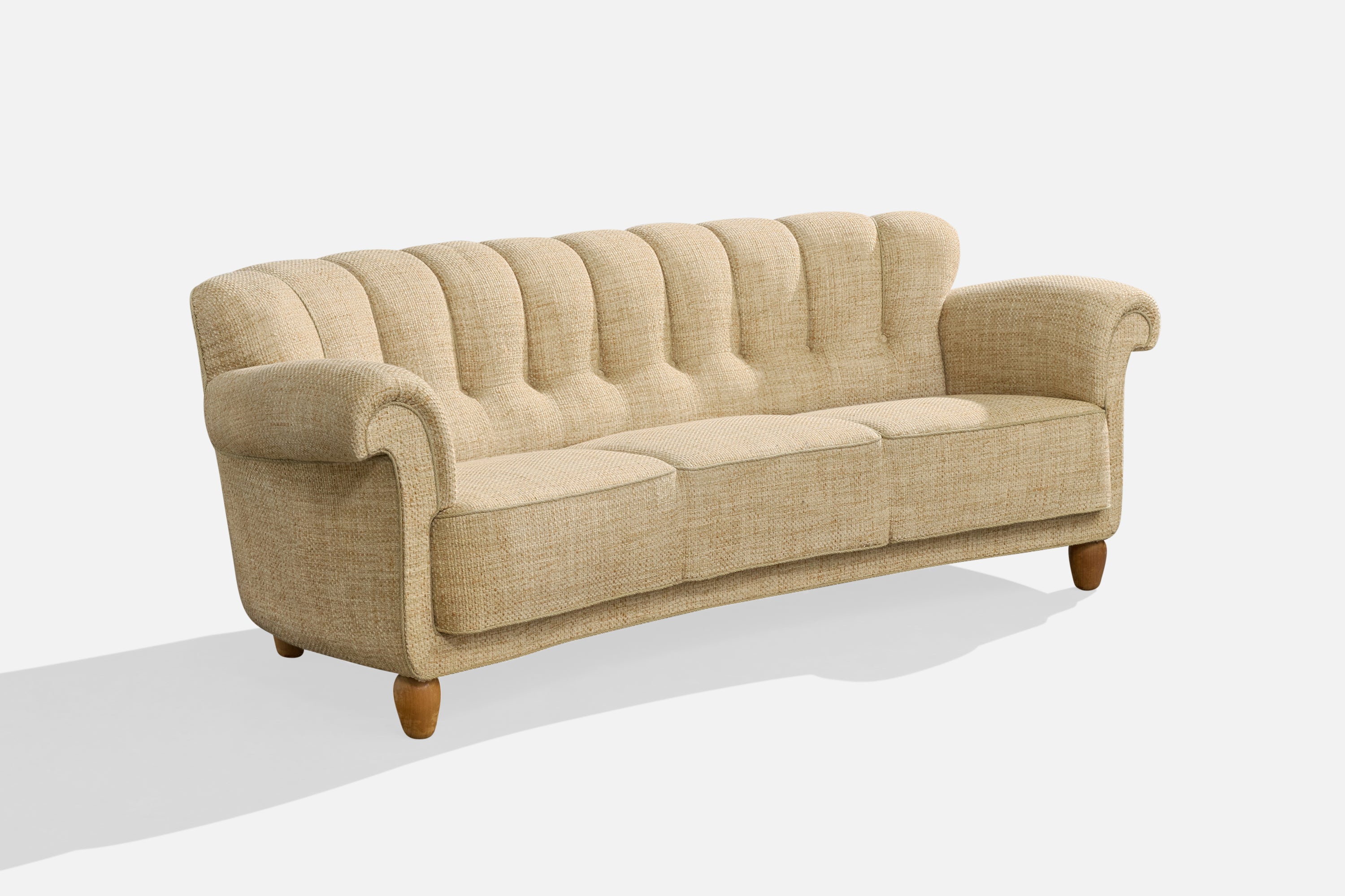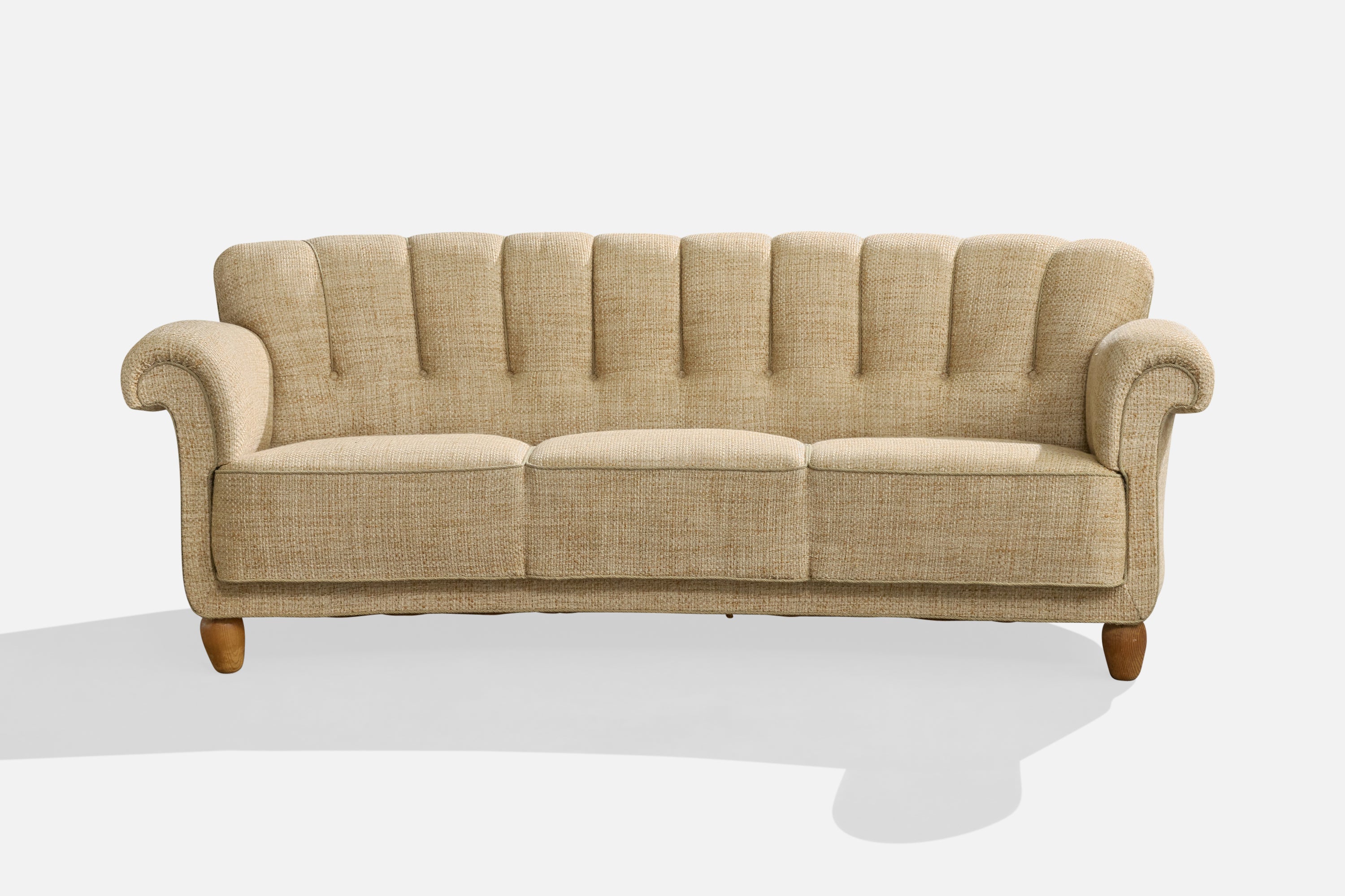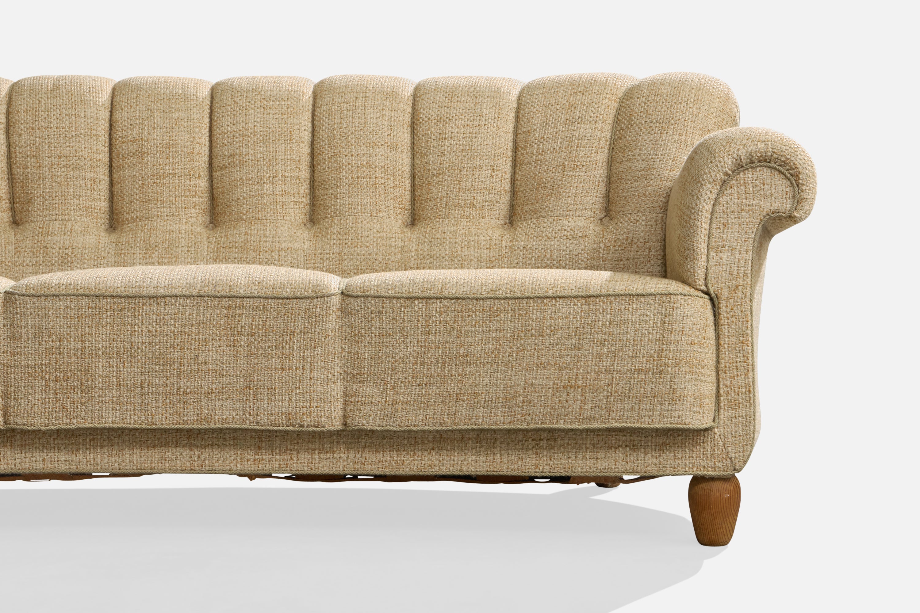 A beige fabric and wood sofa designed and produced in Denmark, c. 1940s.