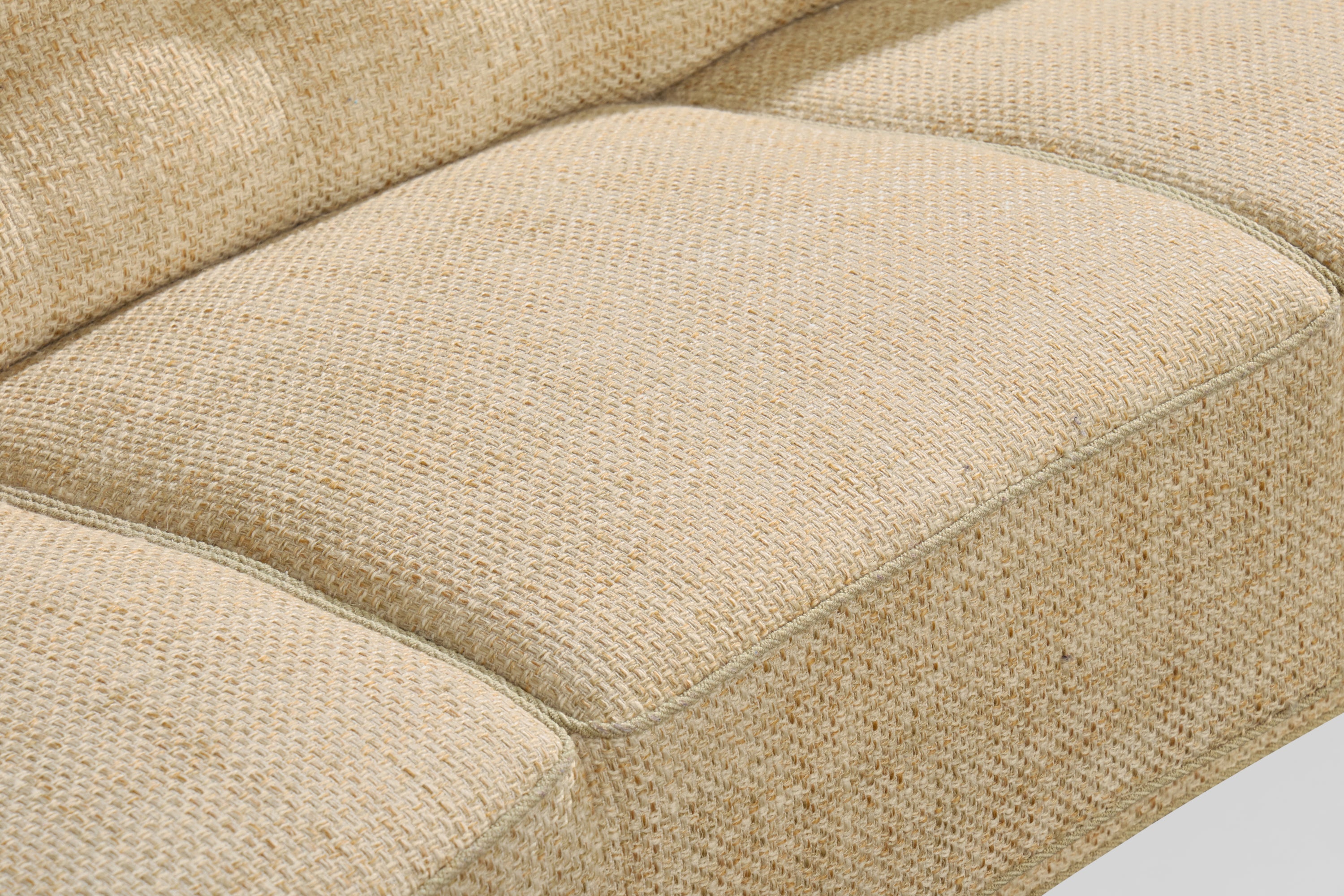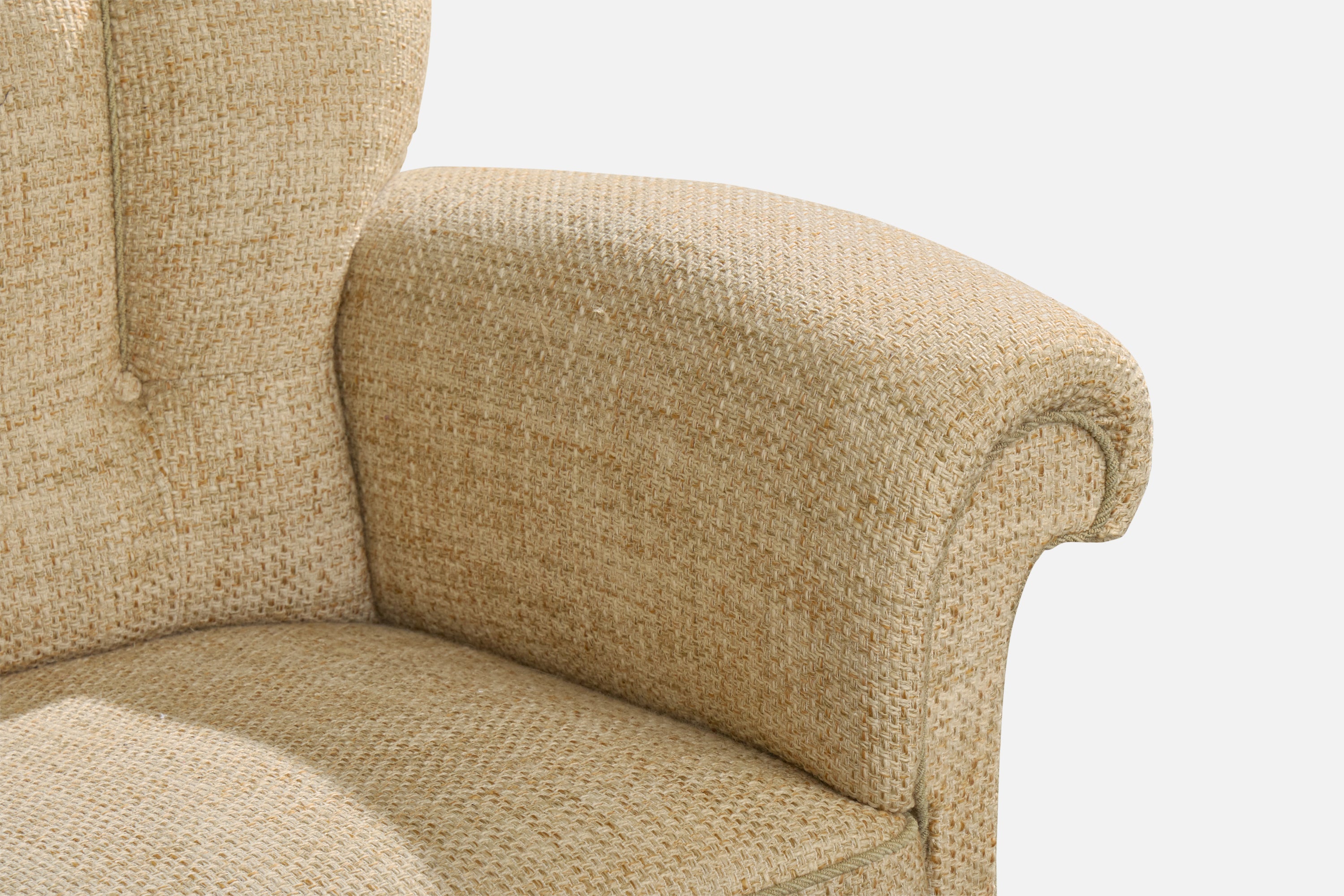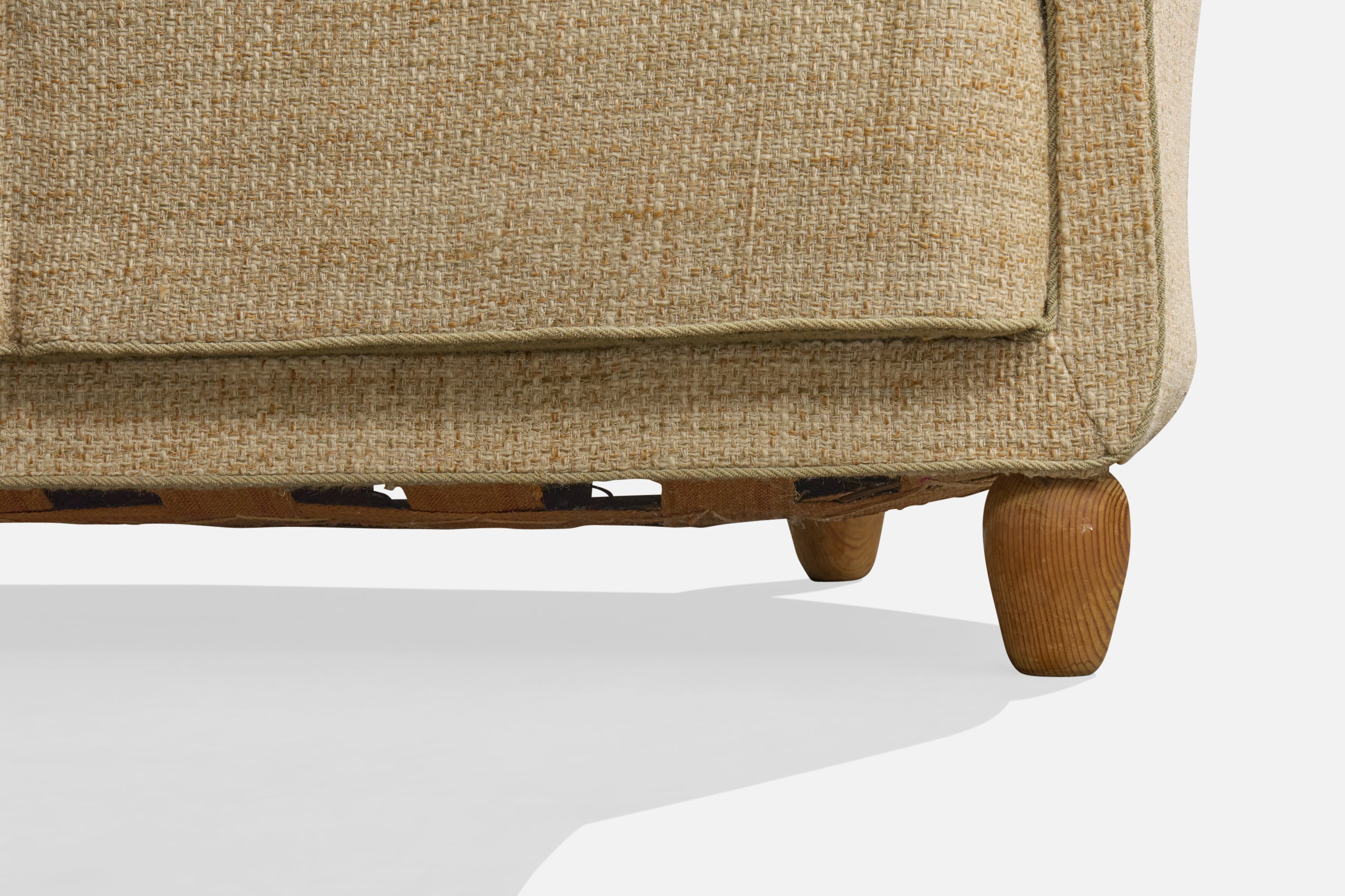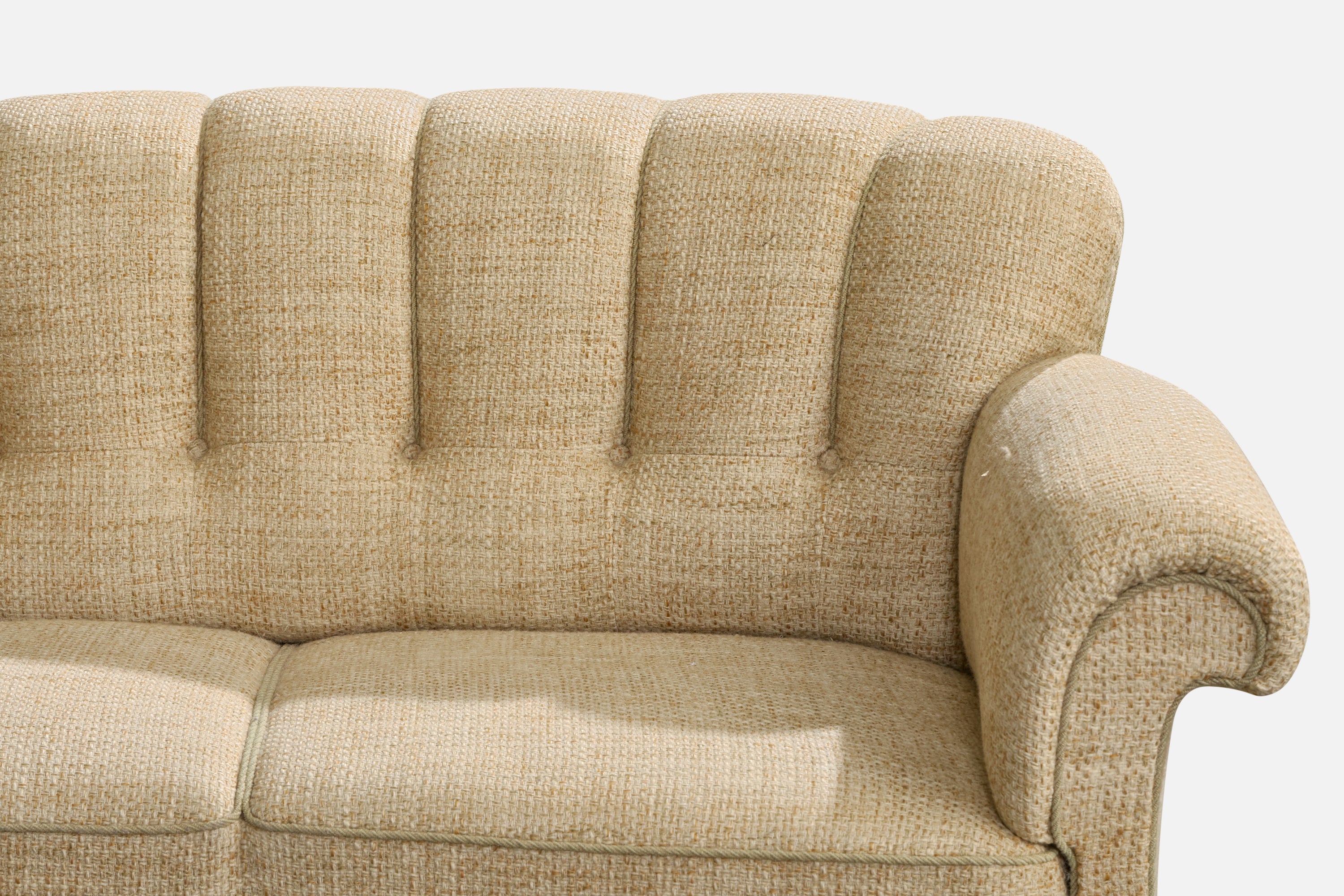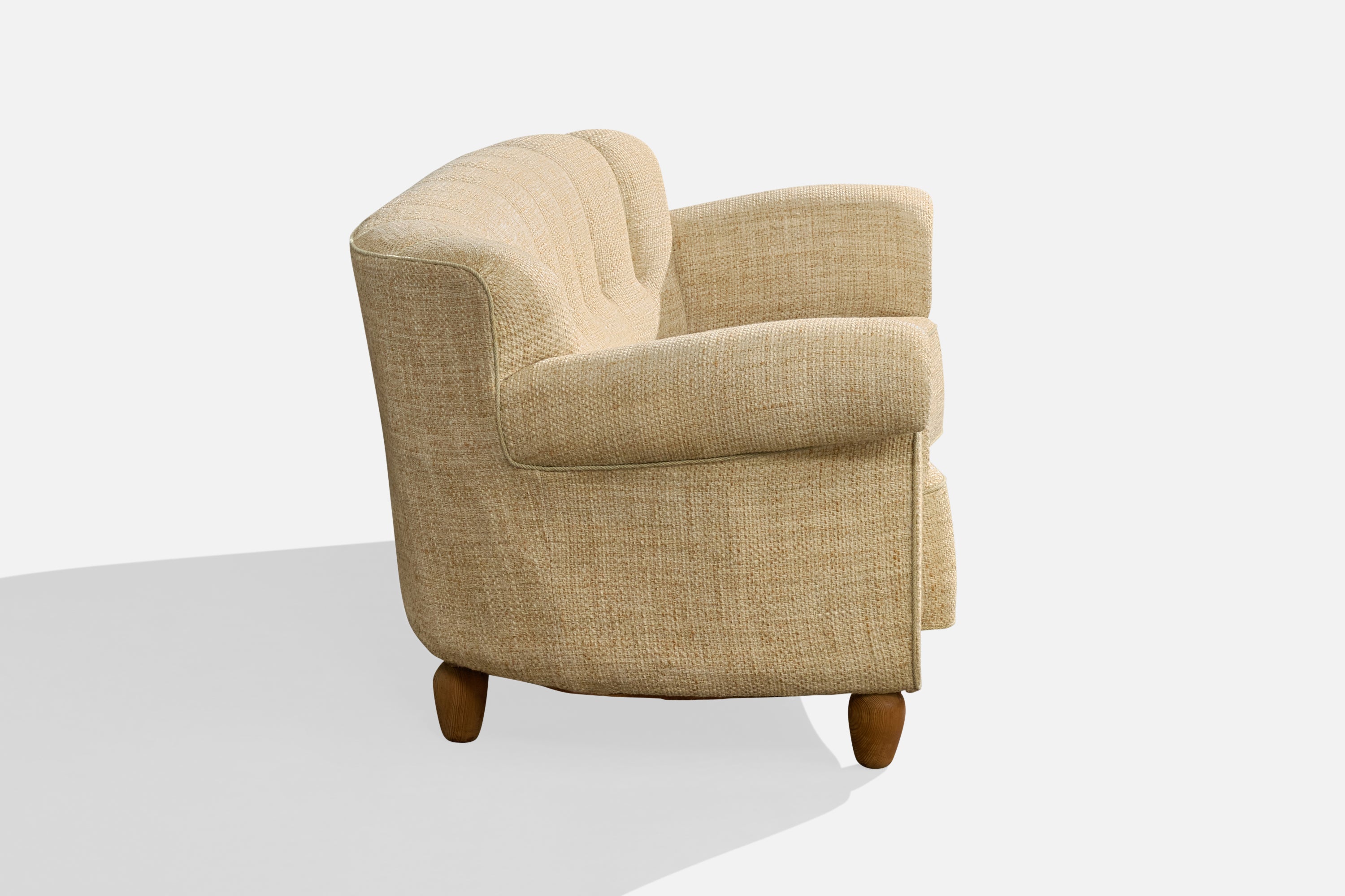 A beige fabric and wood sofa designed and produced in Denmark, c. 1940s.