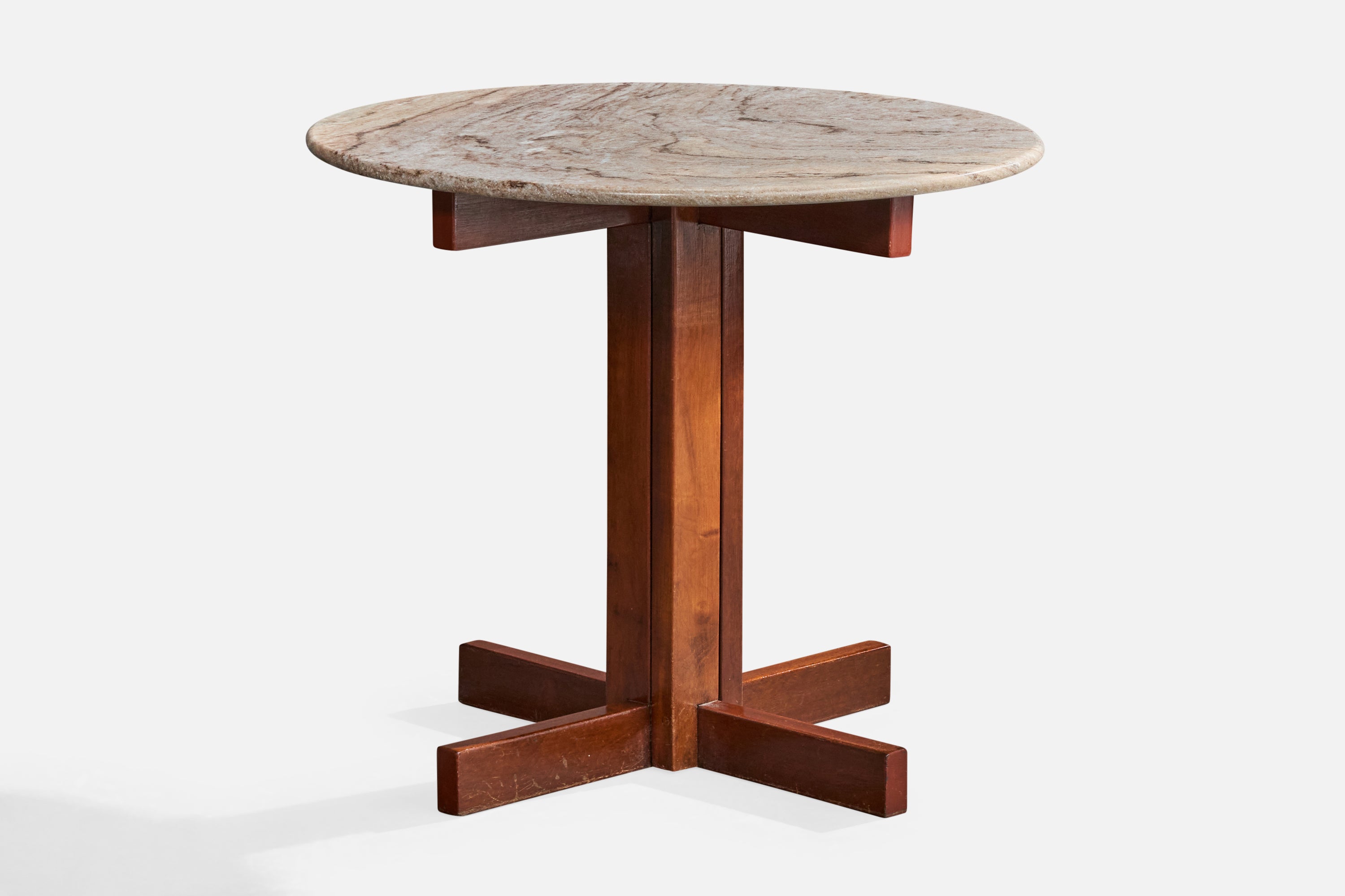 Brazilian Designer, Side Table, Wood, Marble, Brazil, 1960s