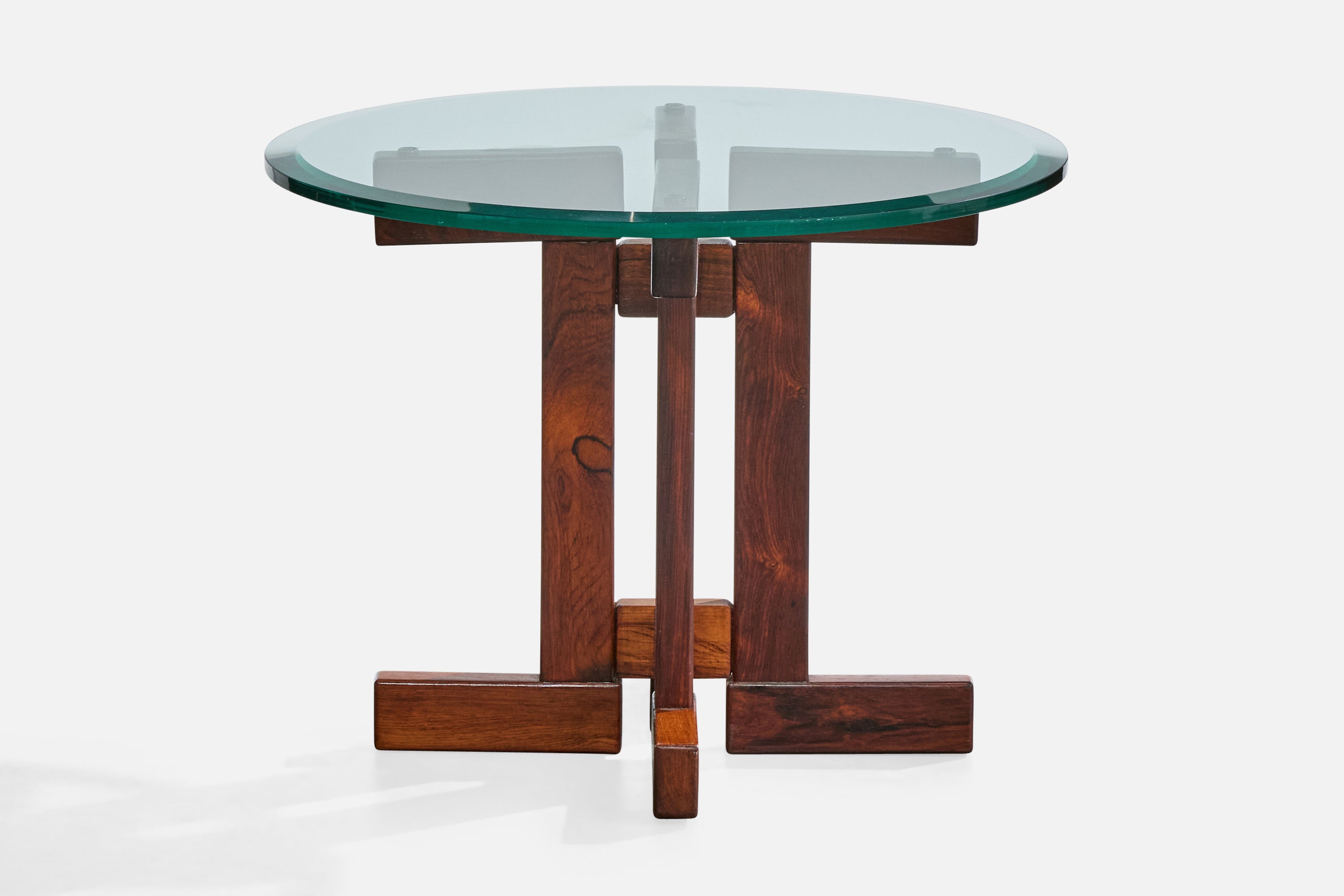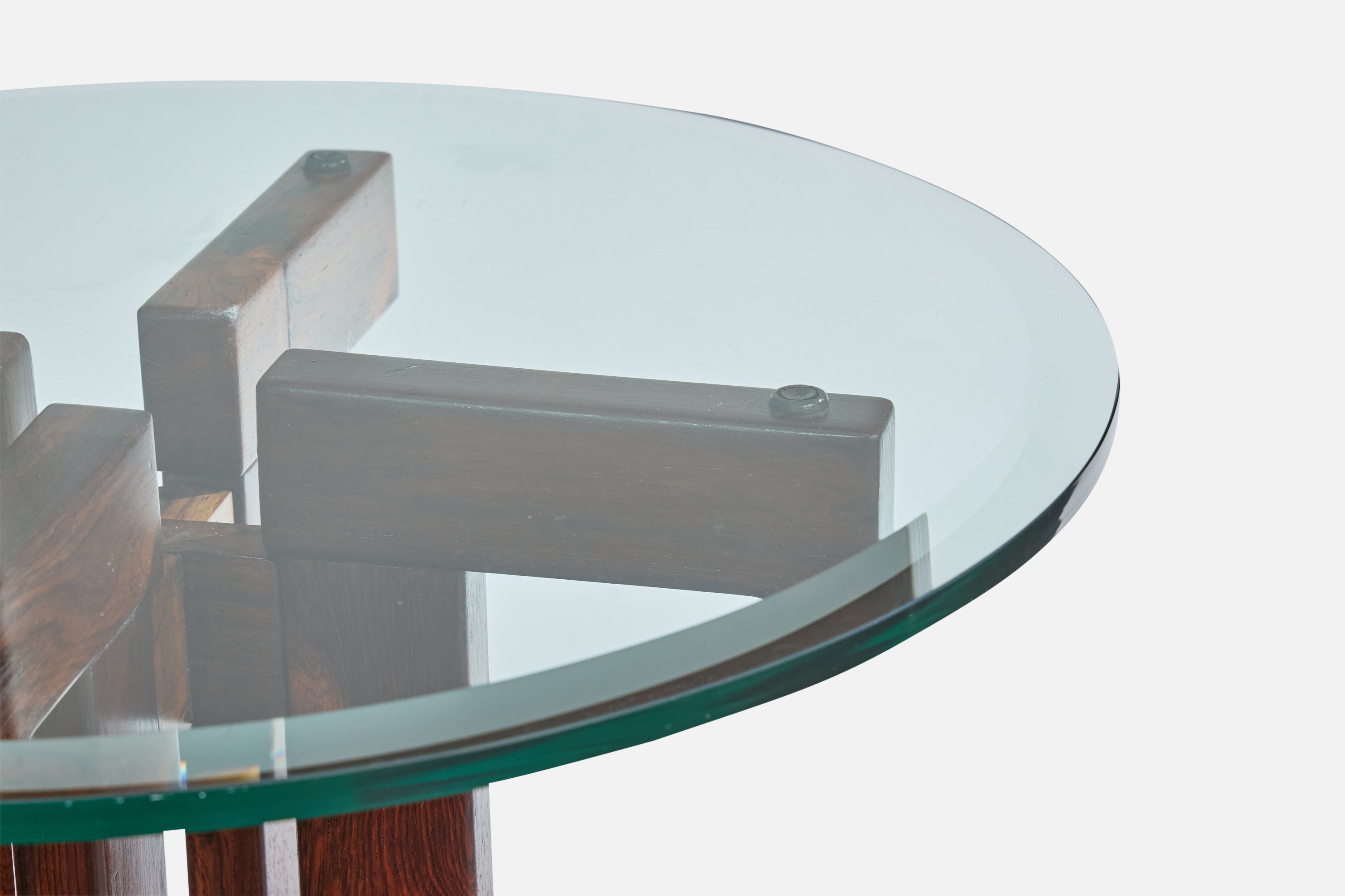 A wood and glass side table produced by Celina Decorações, Rio de Janeiro, Brazil, c. 1960s.