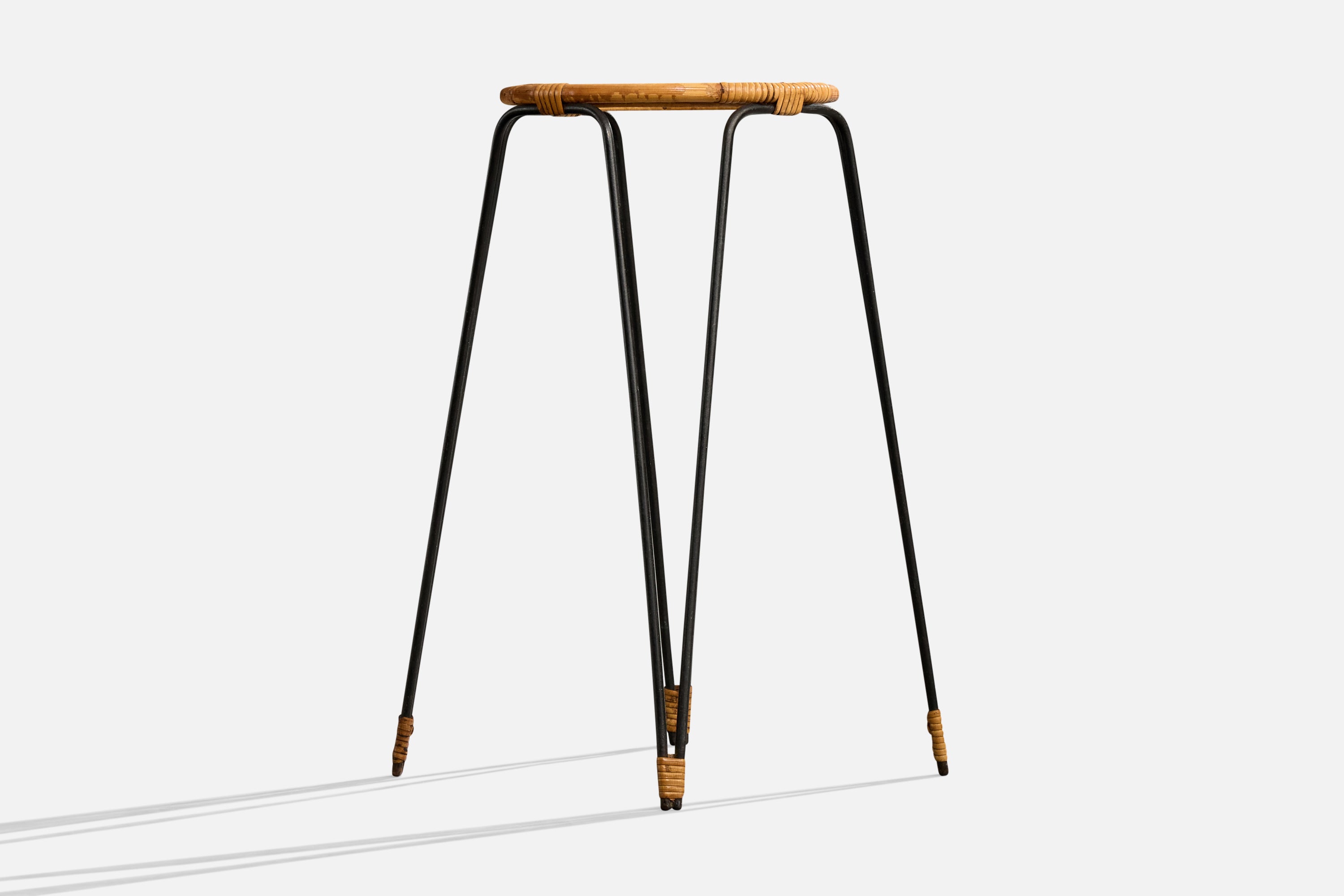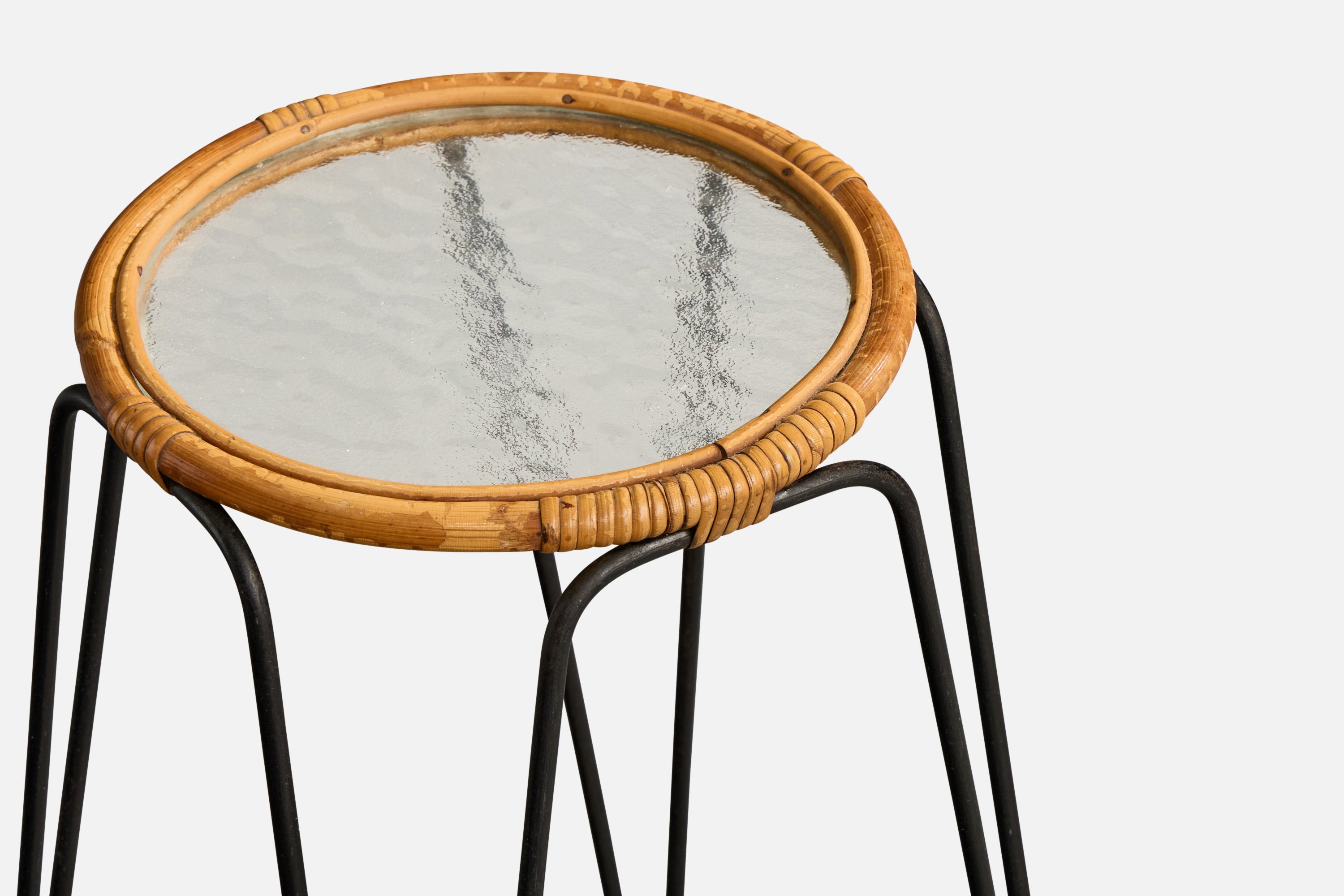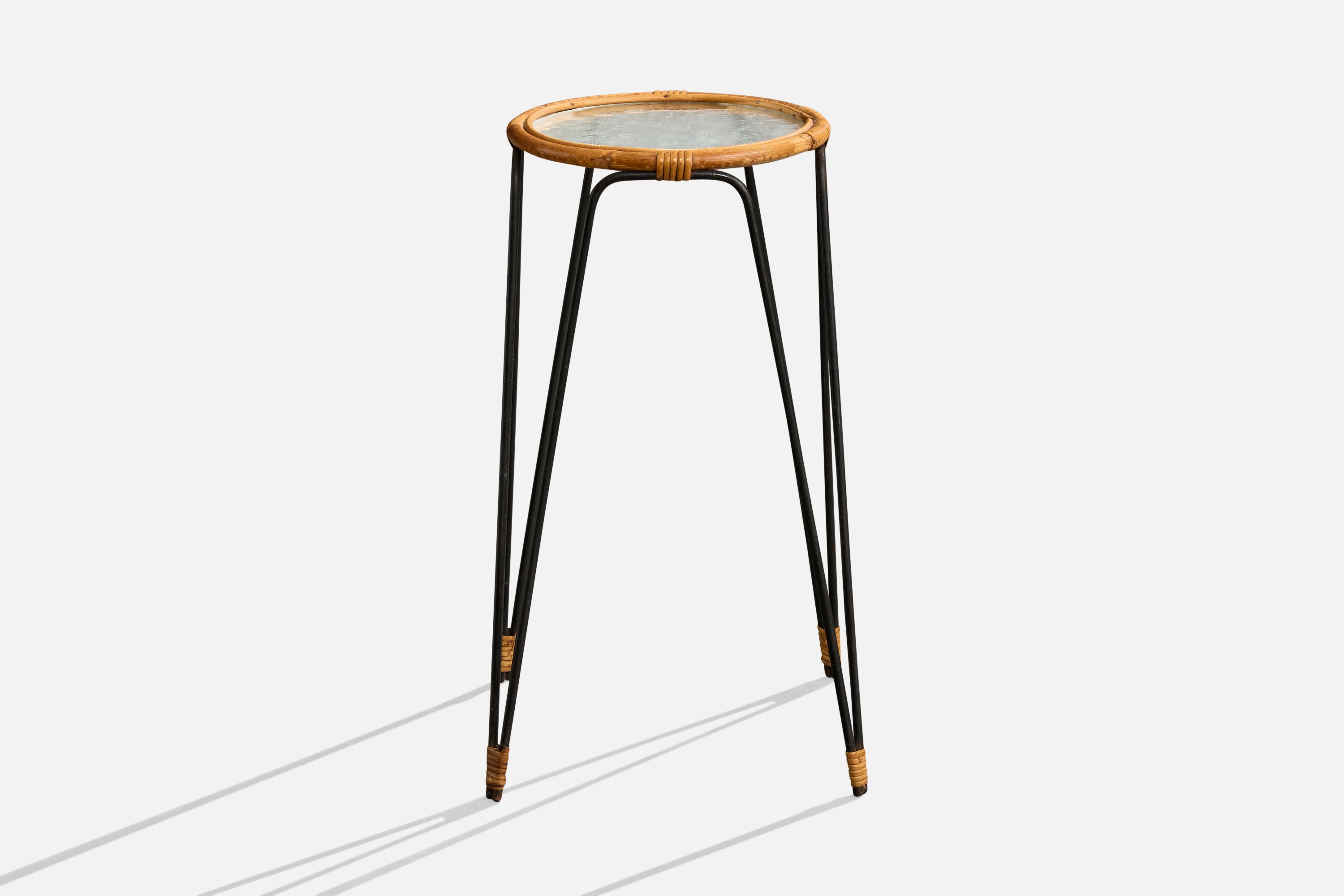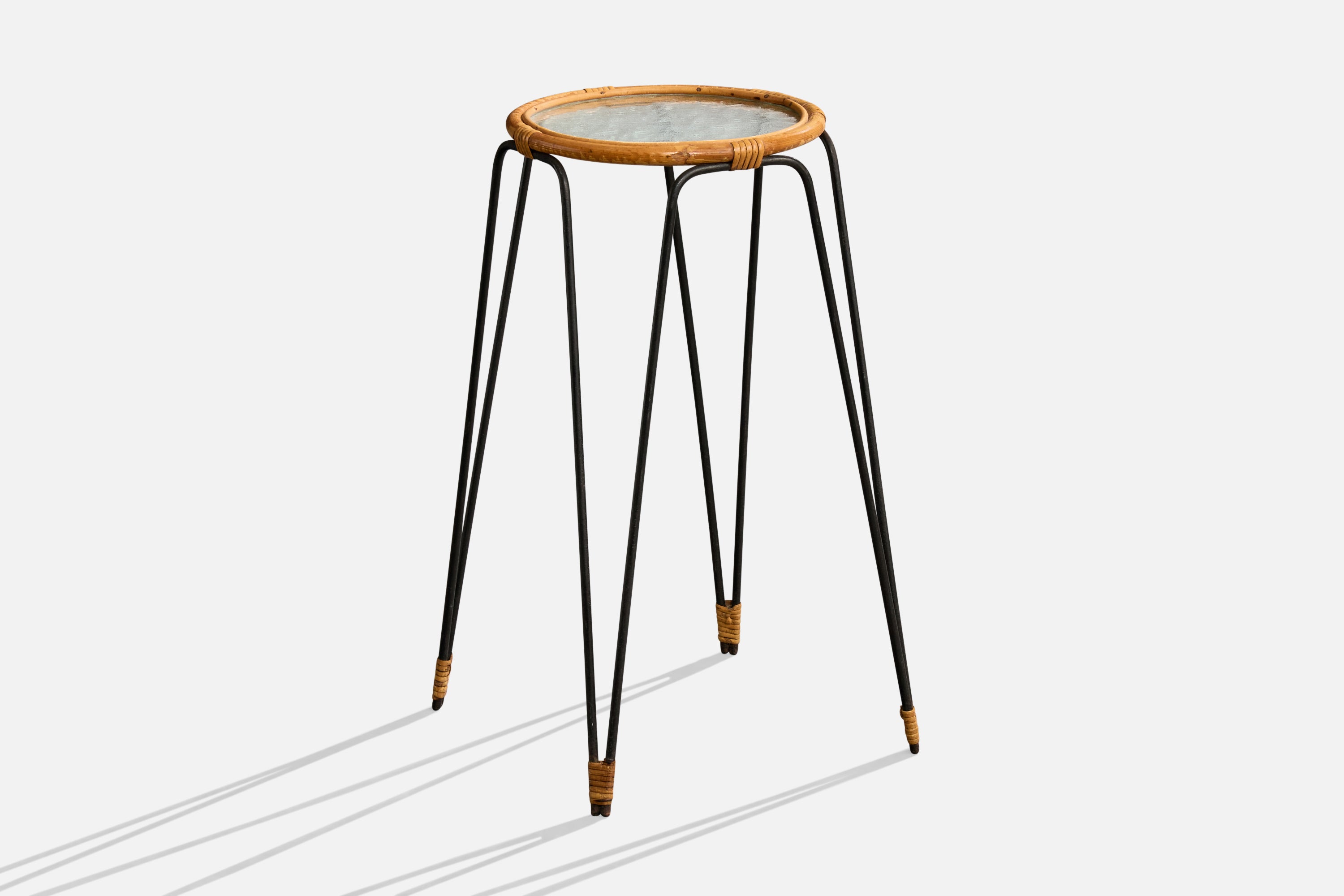 Swedish Designer, End Table, Iron, Bamboo, Rattan, Glass, Sweden, 1950s