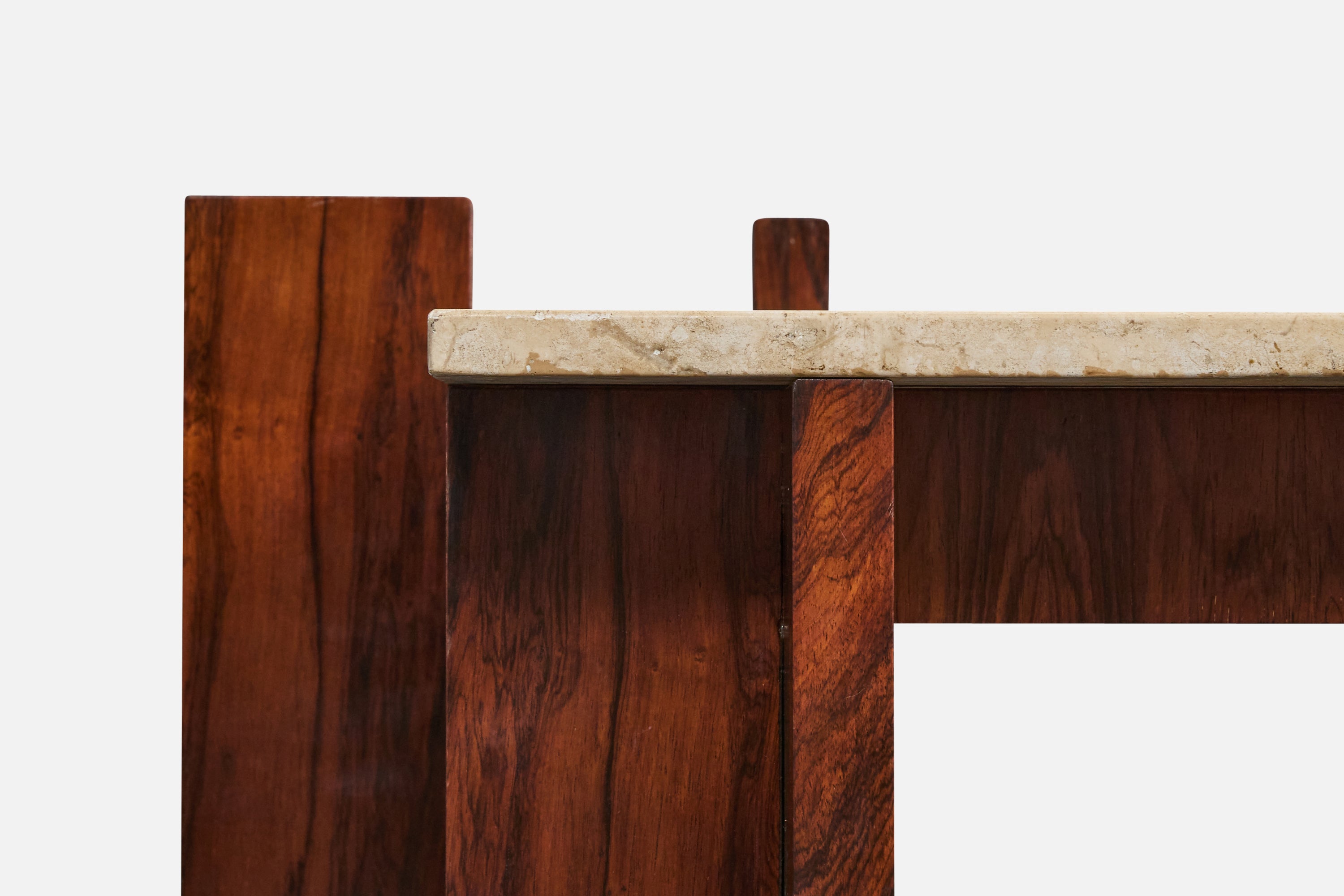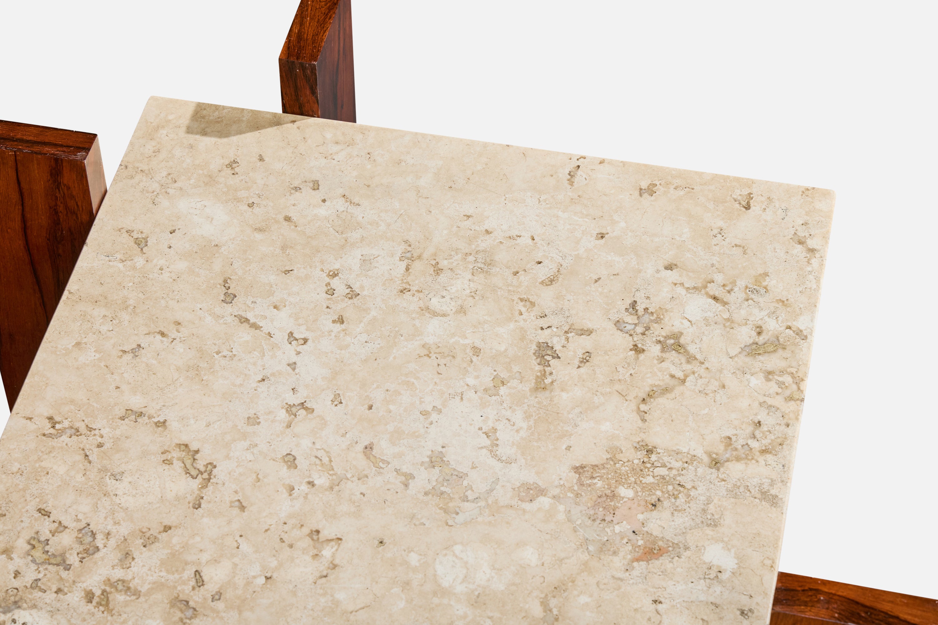 Brazilian Designer, Side Table, Wood, Marble, Brazil, 1960s
