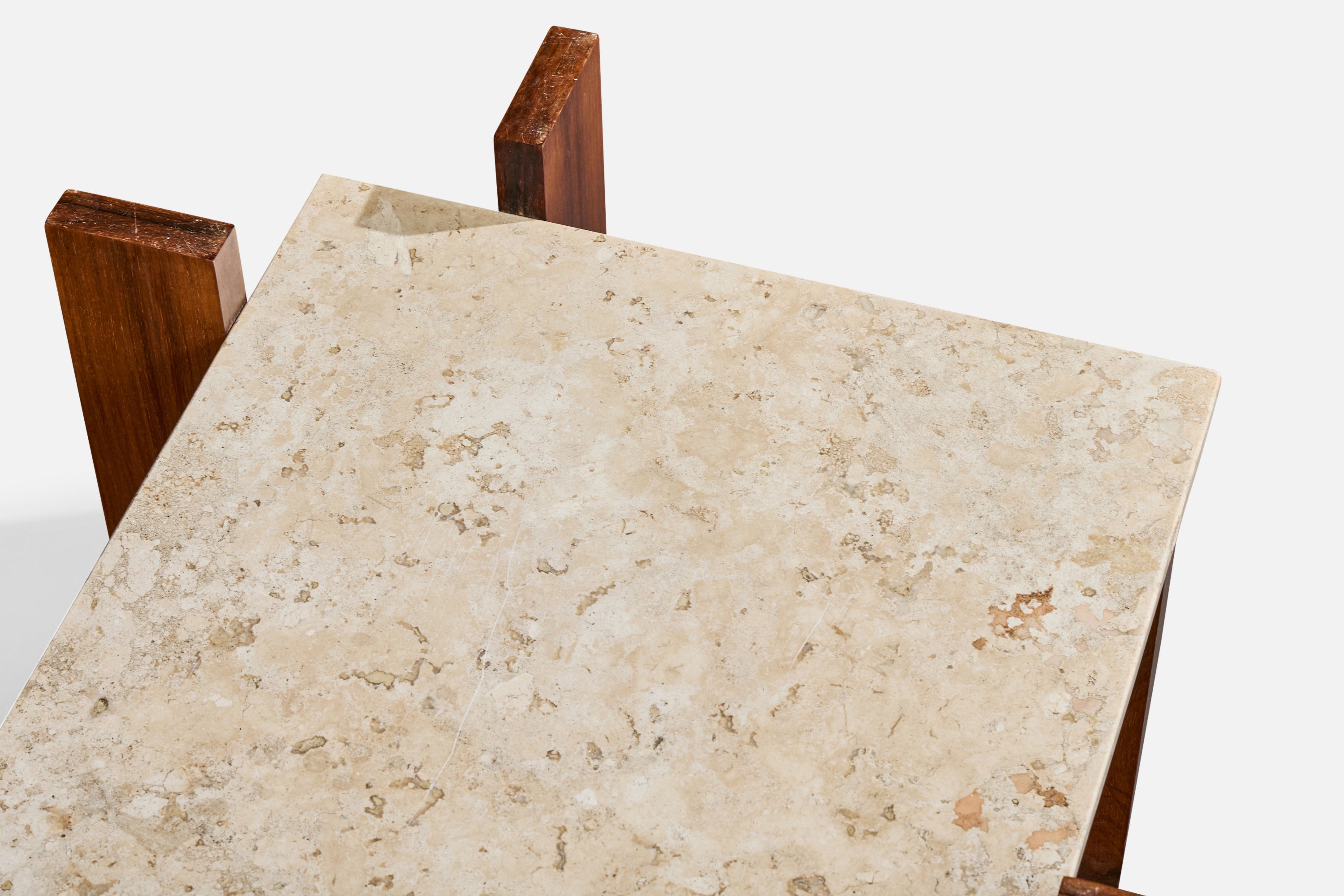 Brazilian Designer, Side Tables, Wood, Marble, Brazil, 1960s