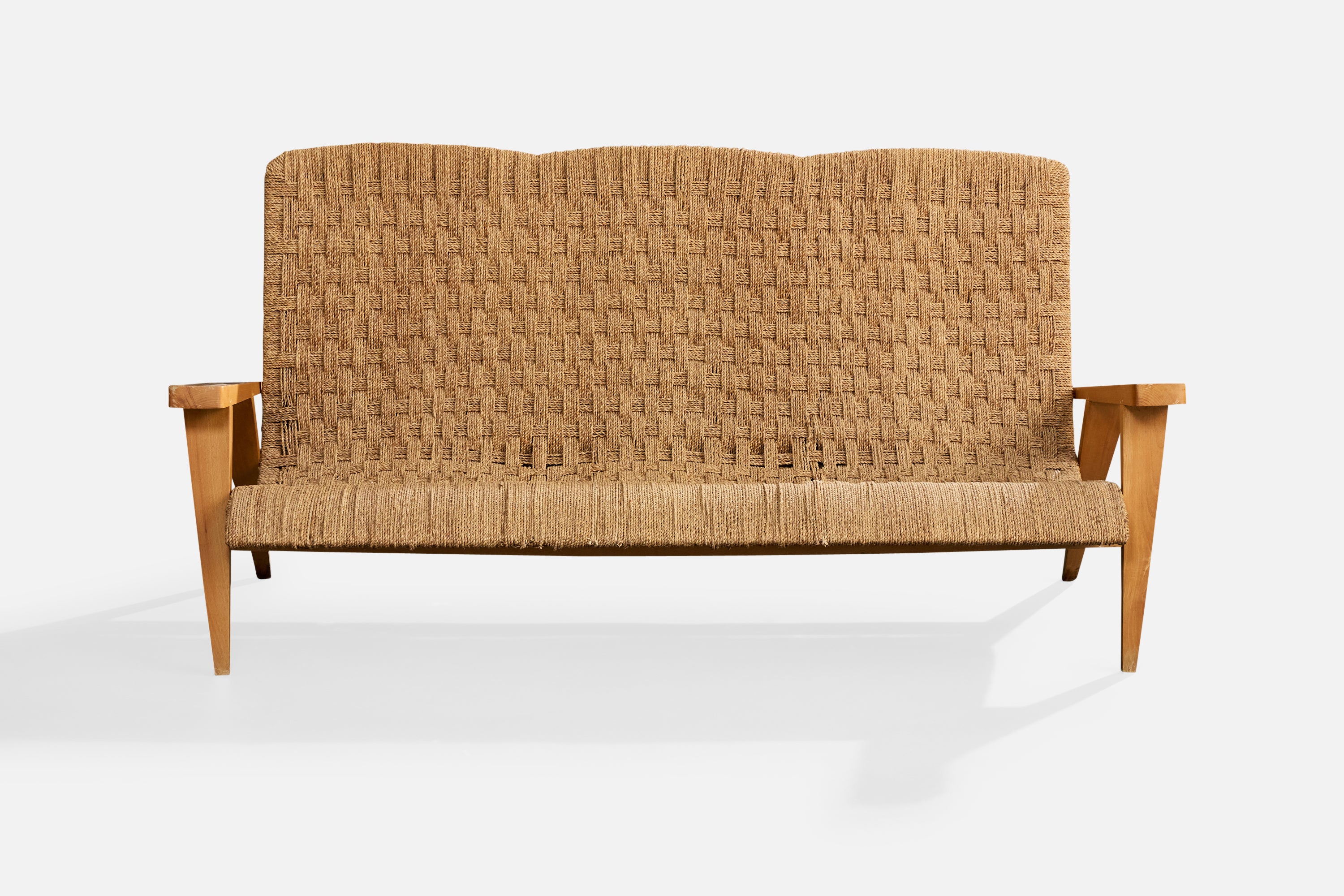 Augusto Romano Attribution, Sofa, Wood, Rush, Italy, 1940s