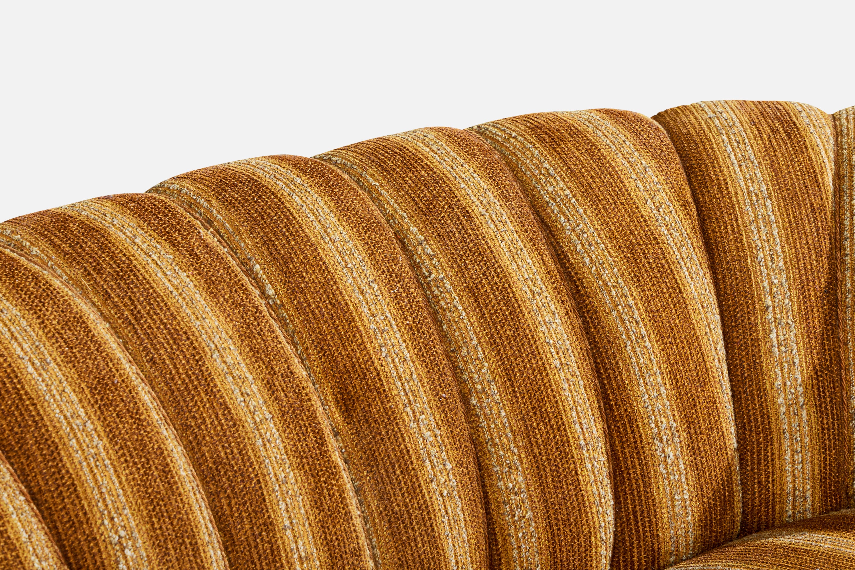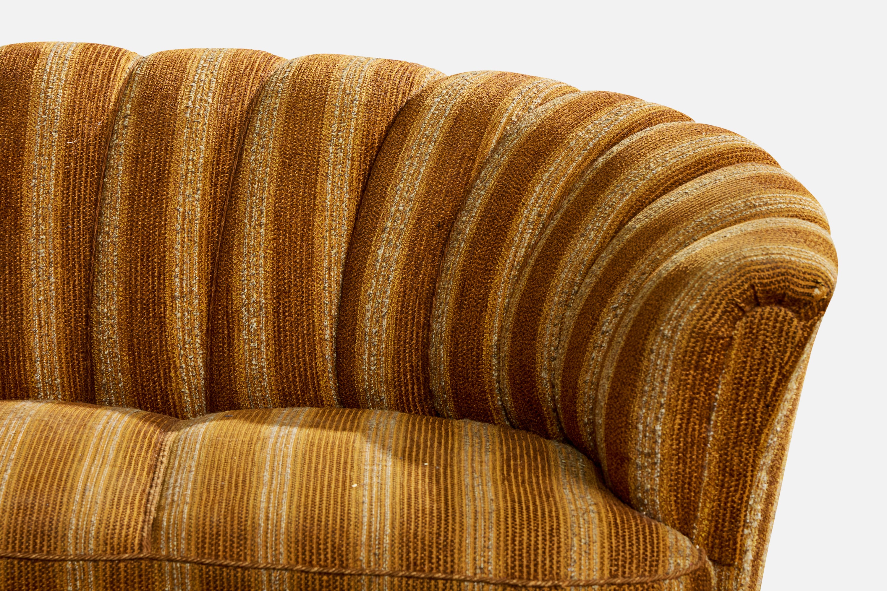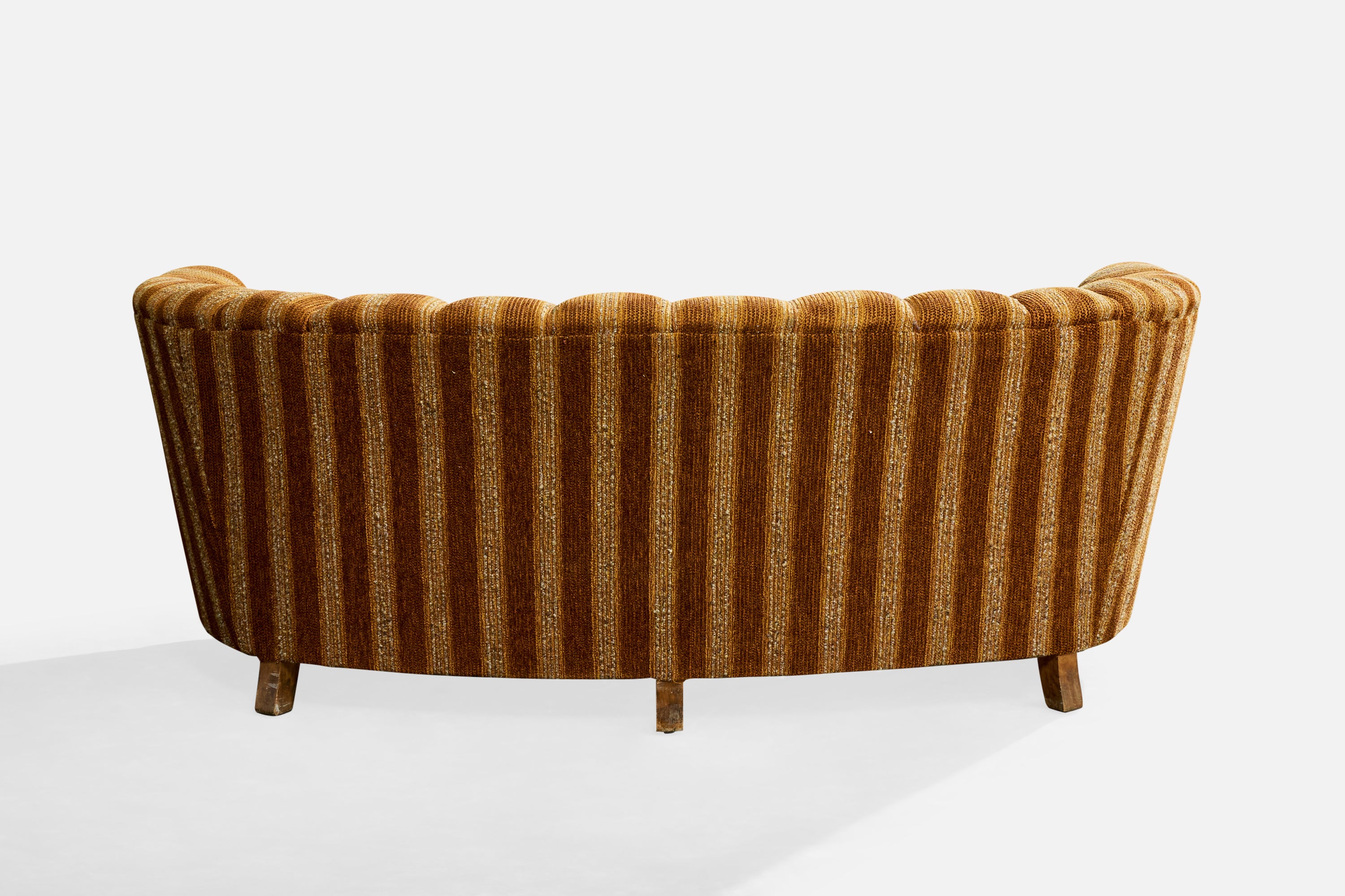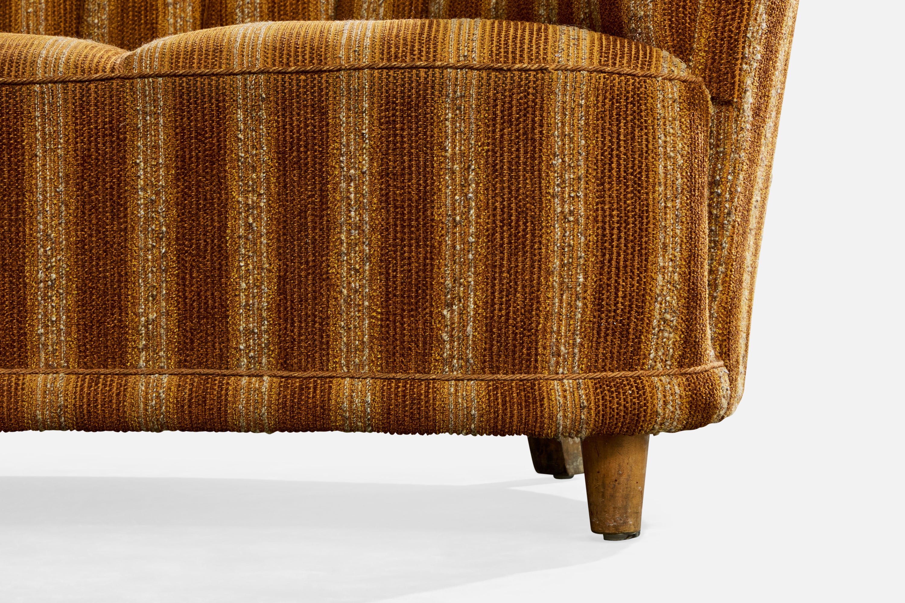 A beige brown-striped fabric and wood sofa designed and produced in Sweden, c. 1940s.