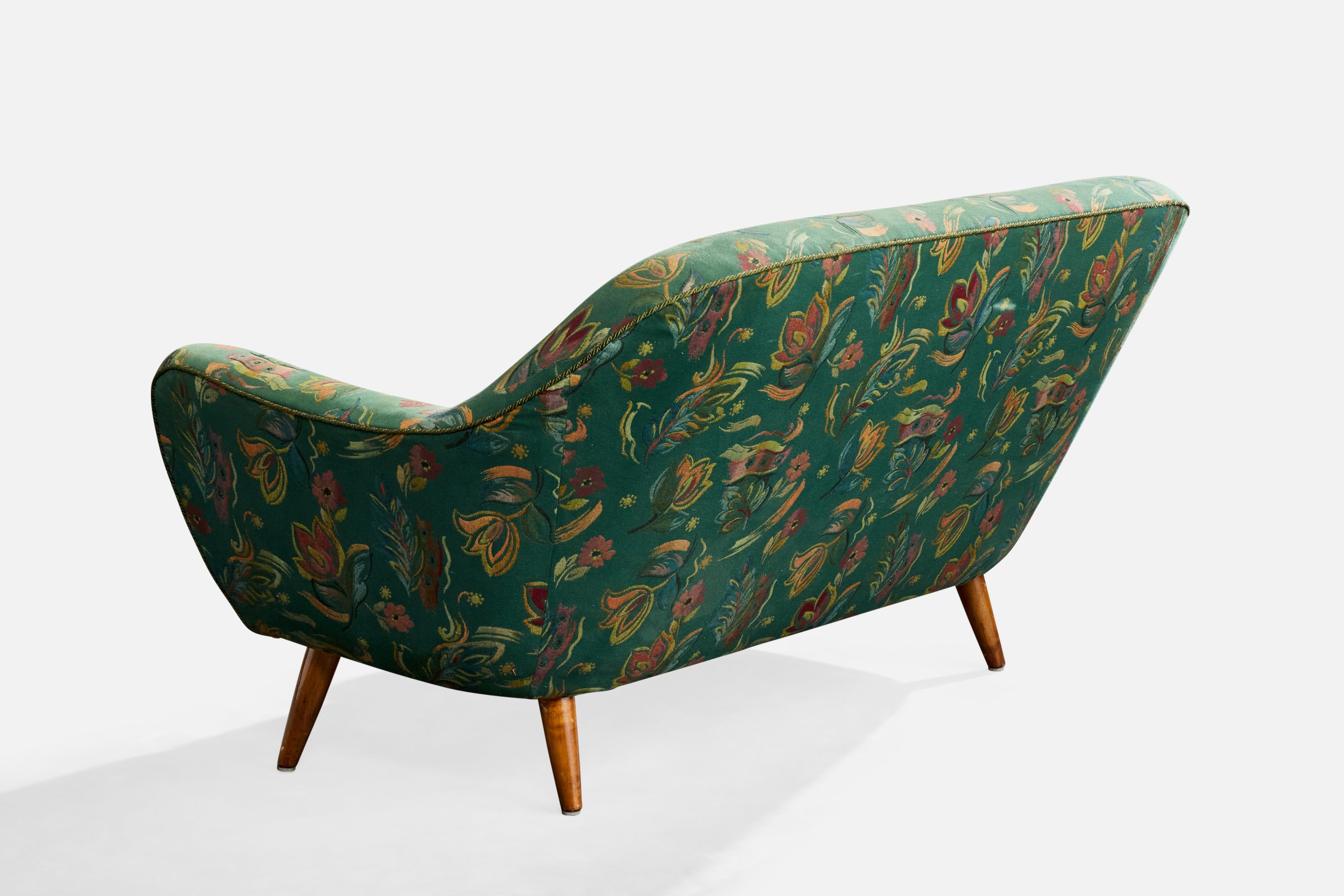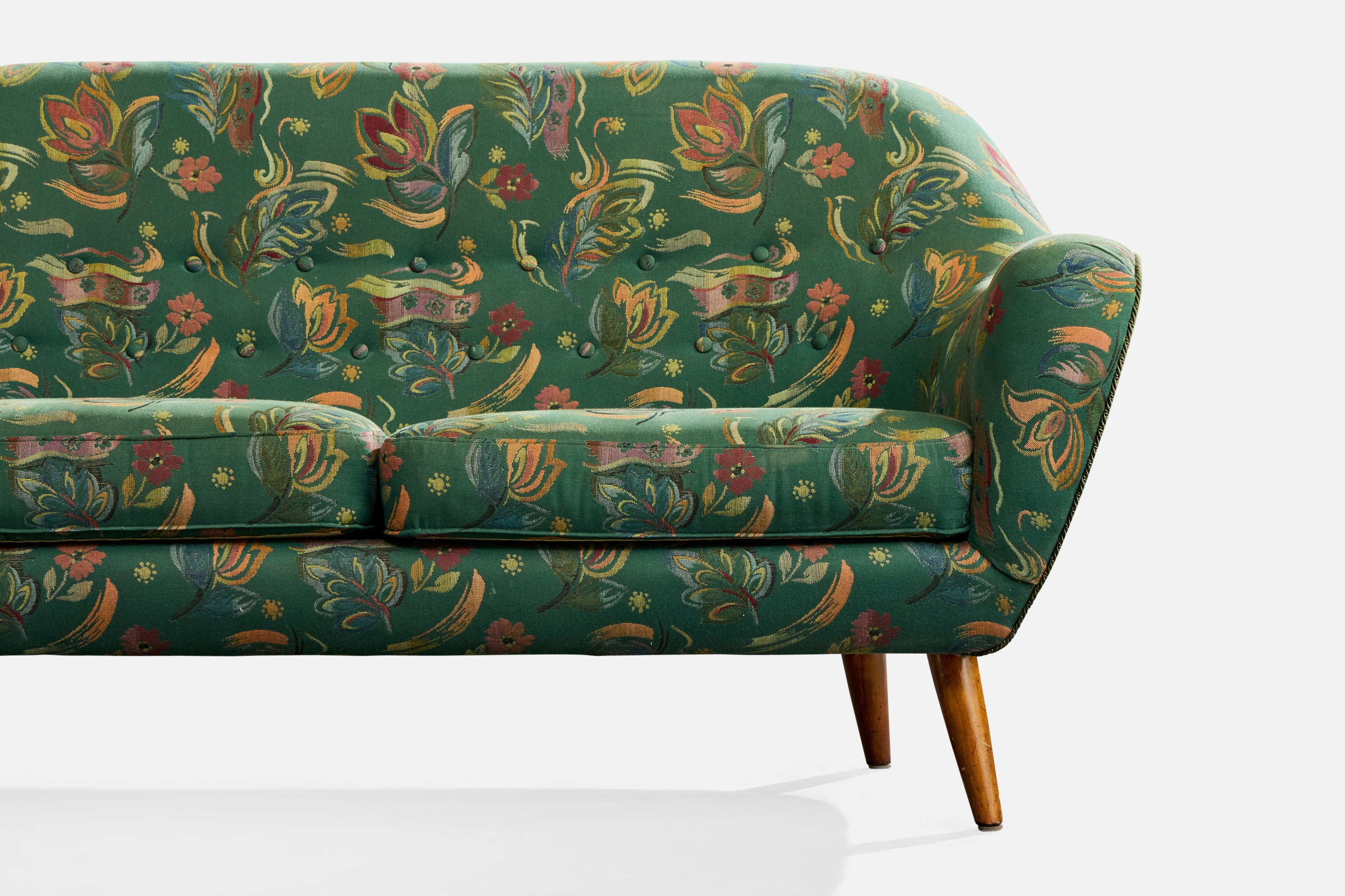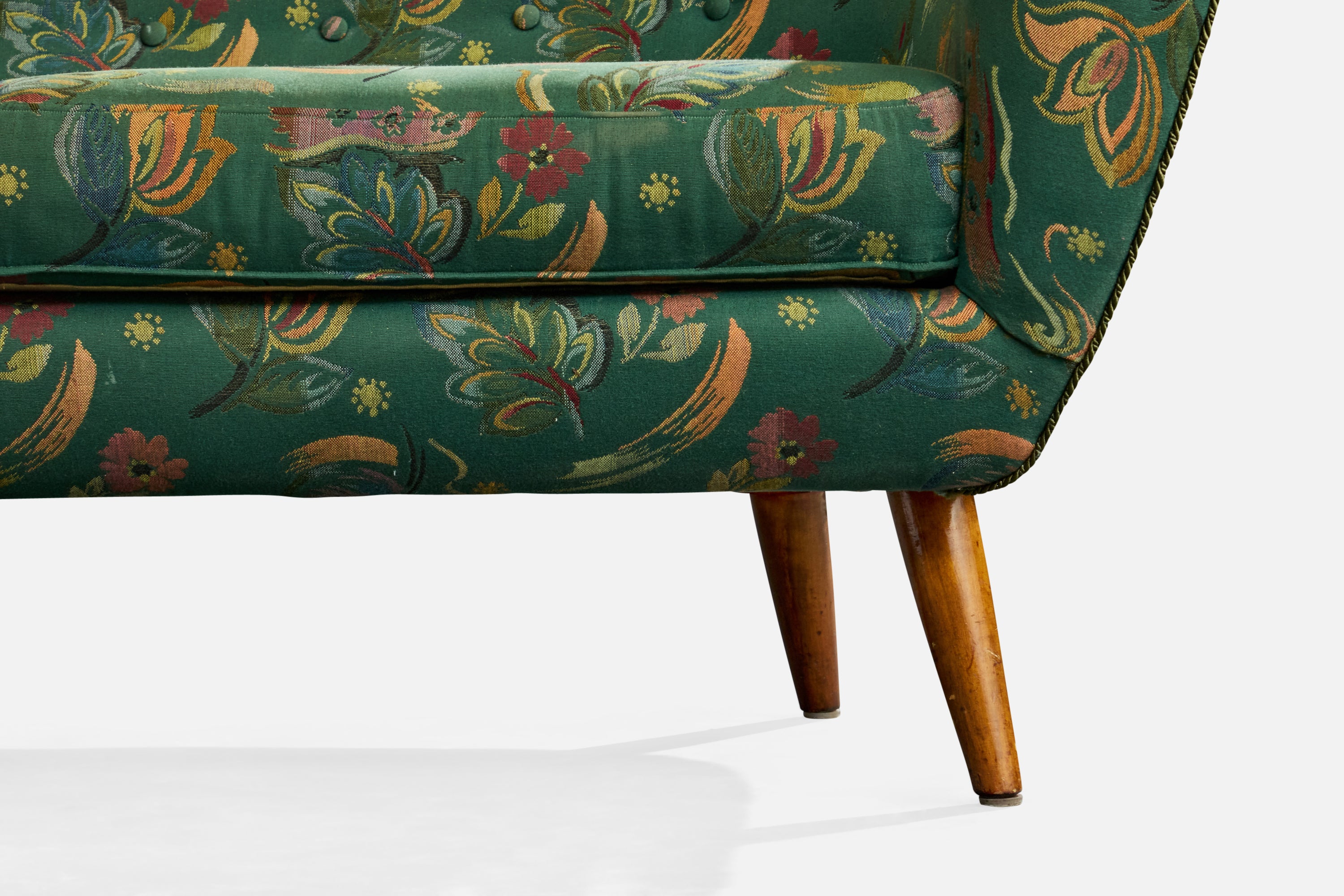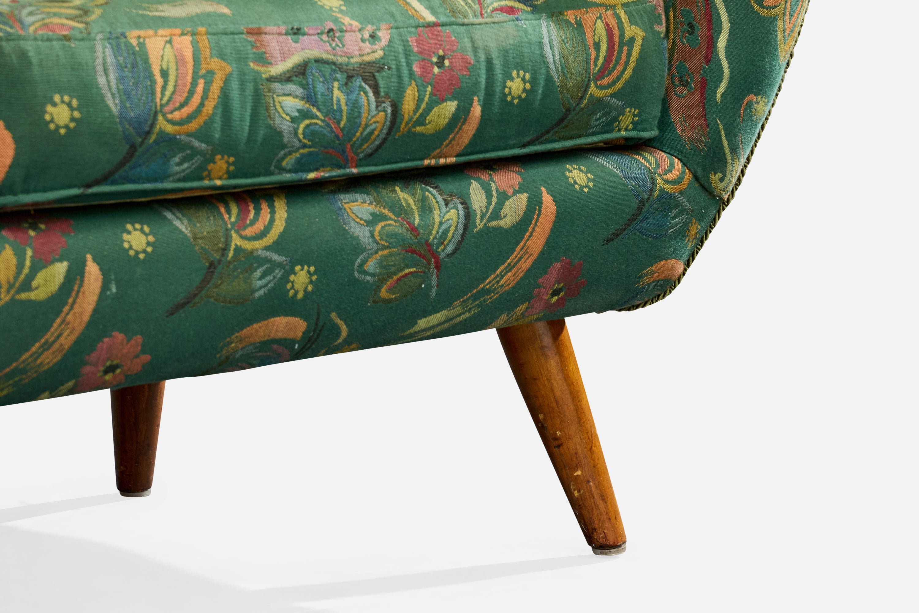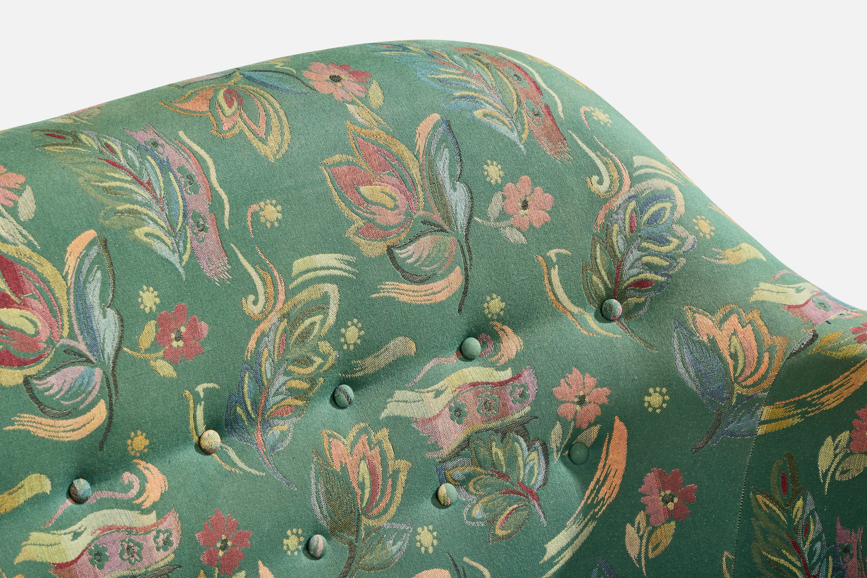 A green floral-printed fabric and wood sofa, model "Chile" designed by Svante Skogh and produced by Klings, Sweden, c. 1950s.