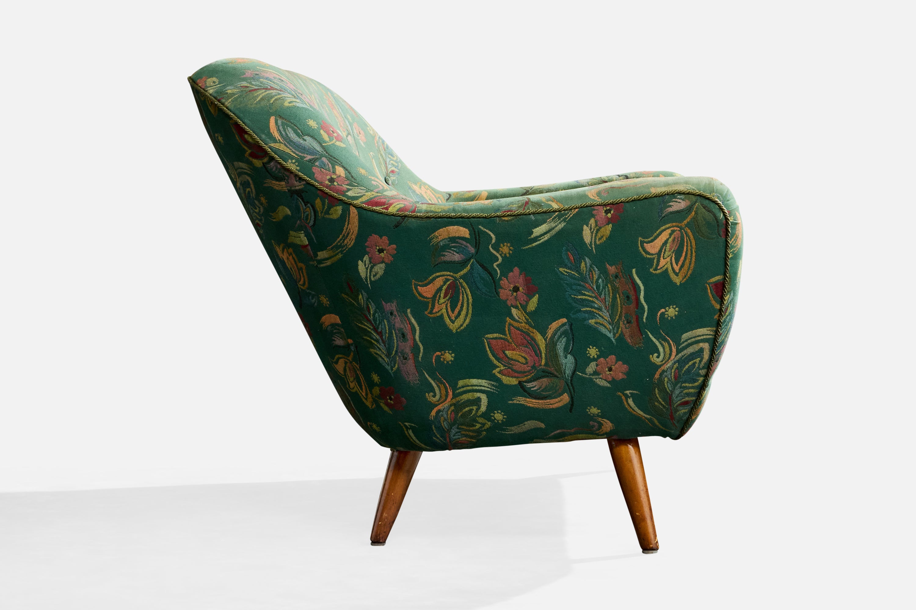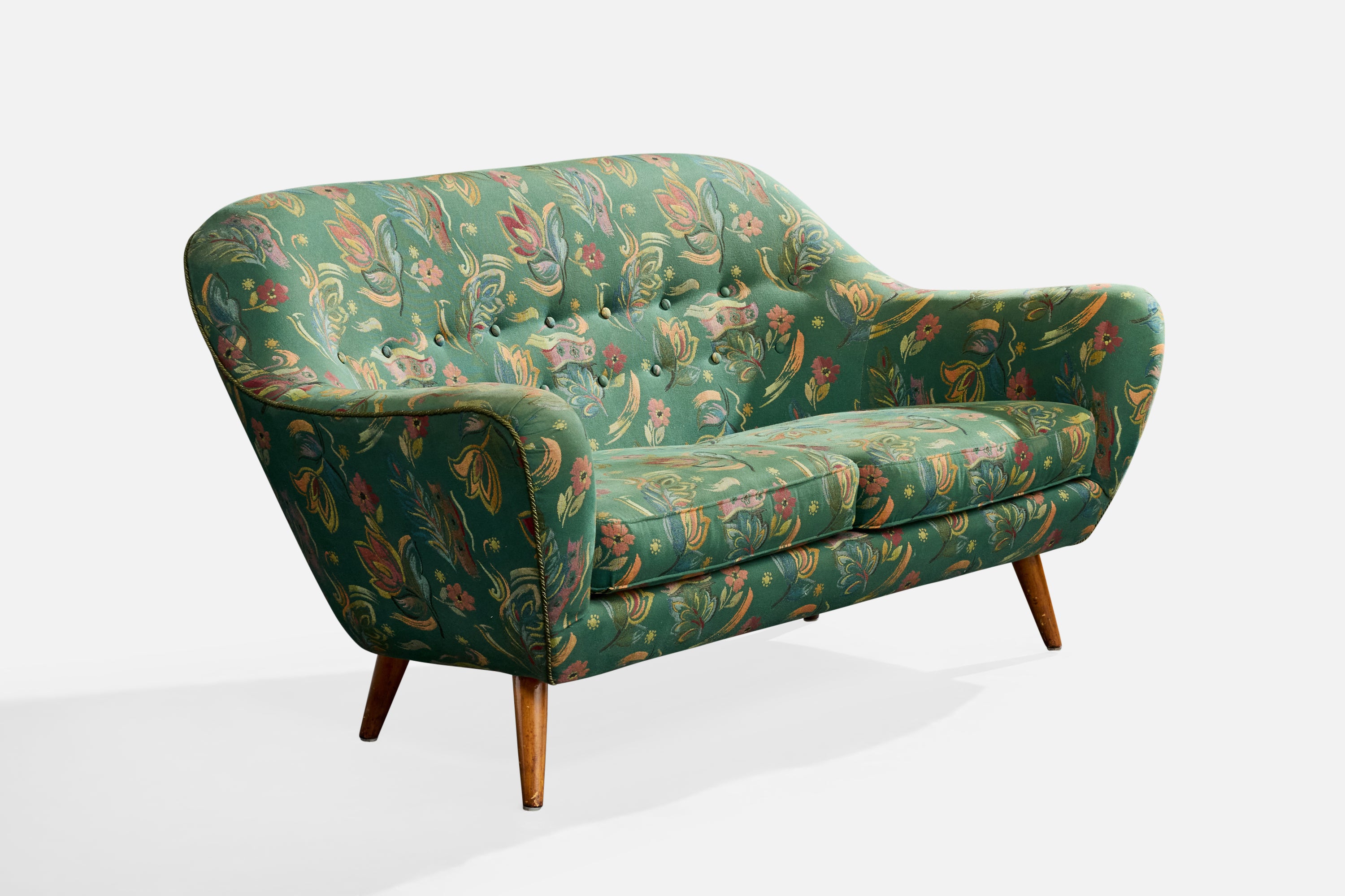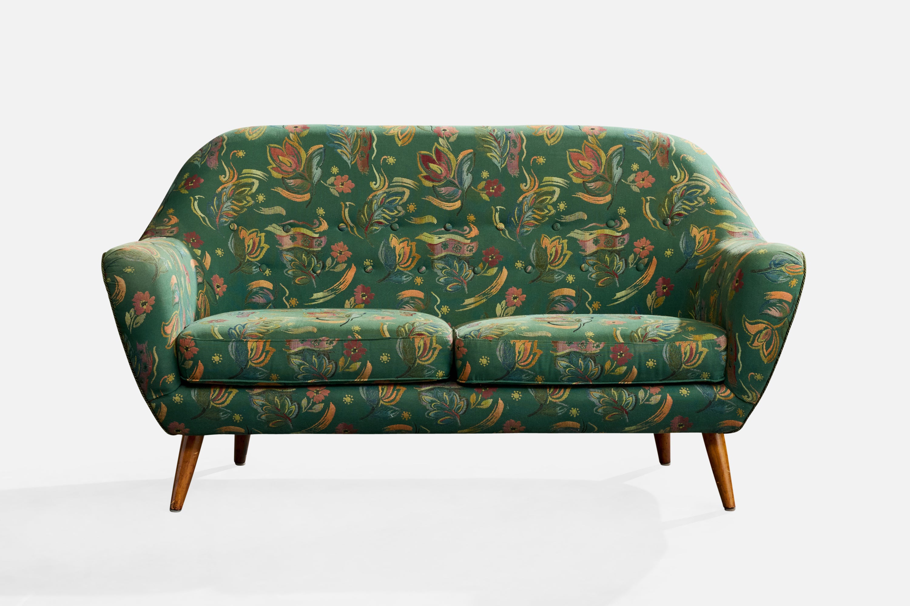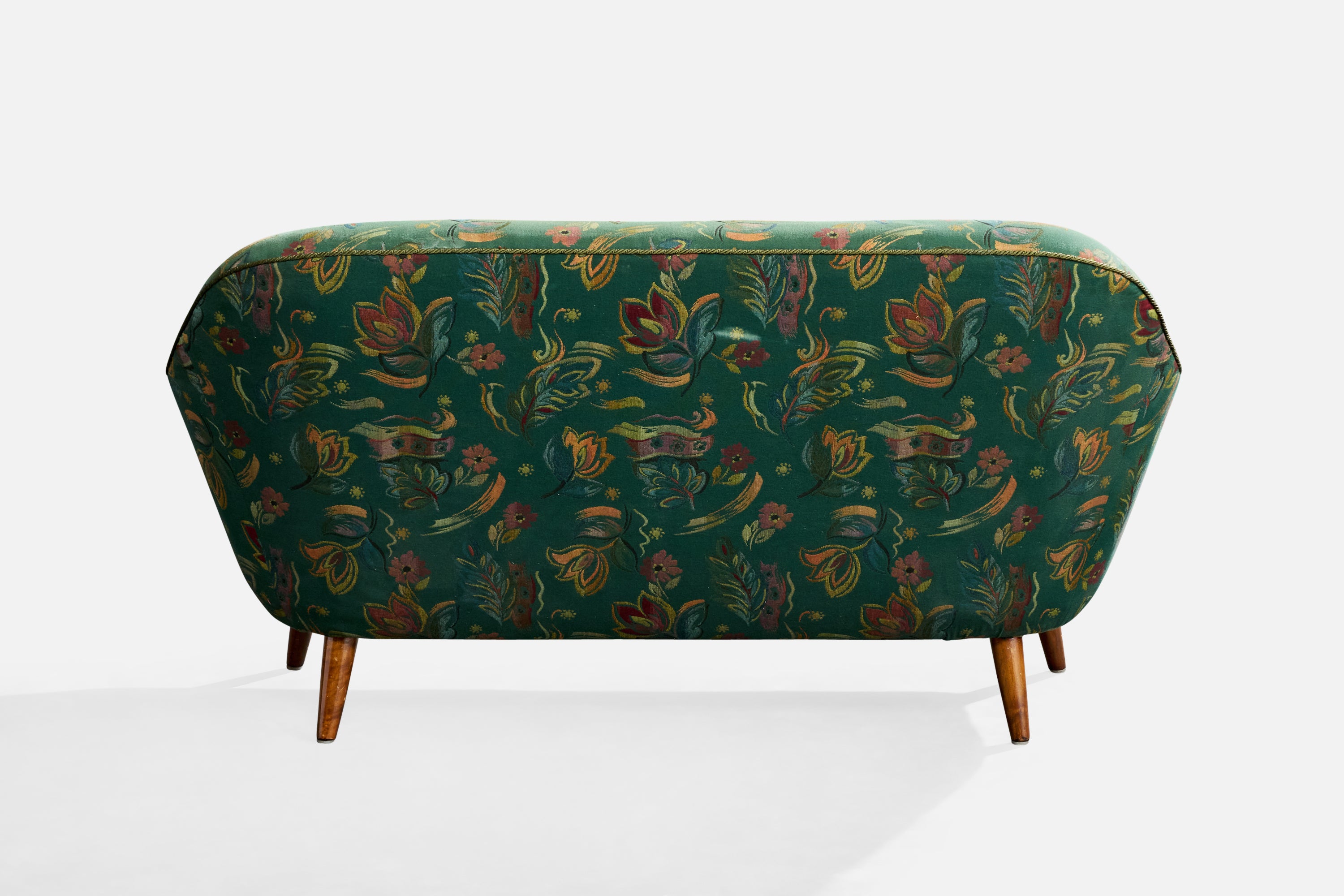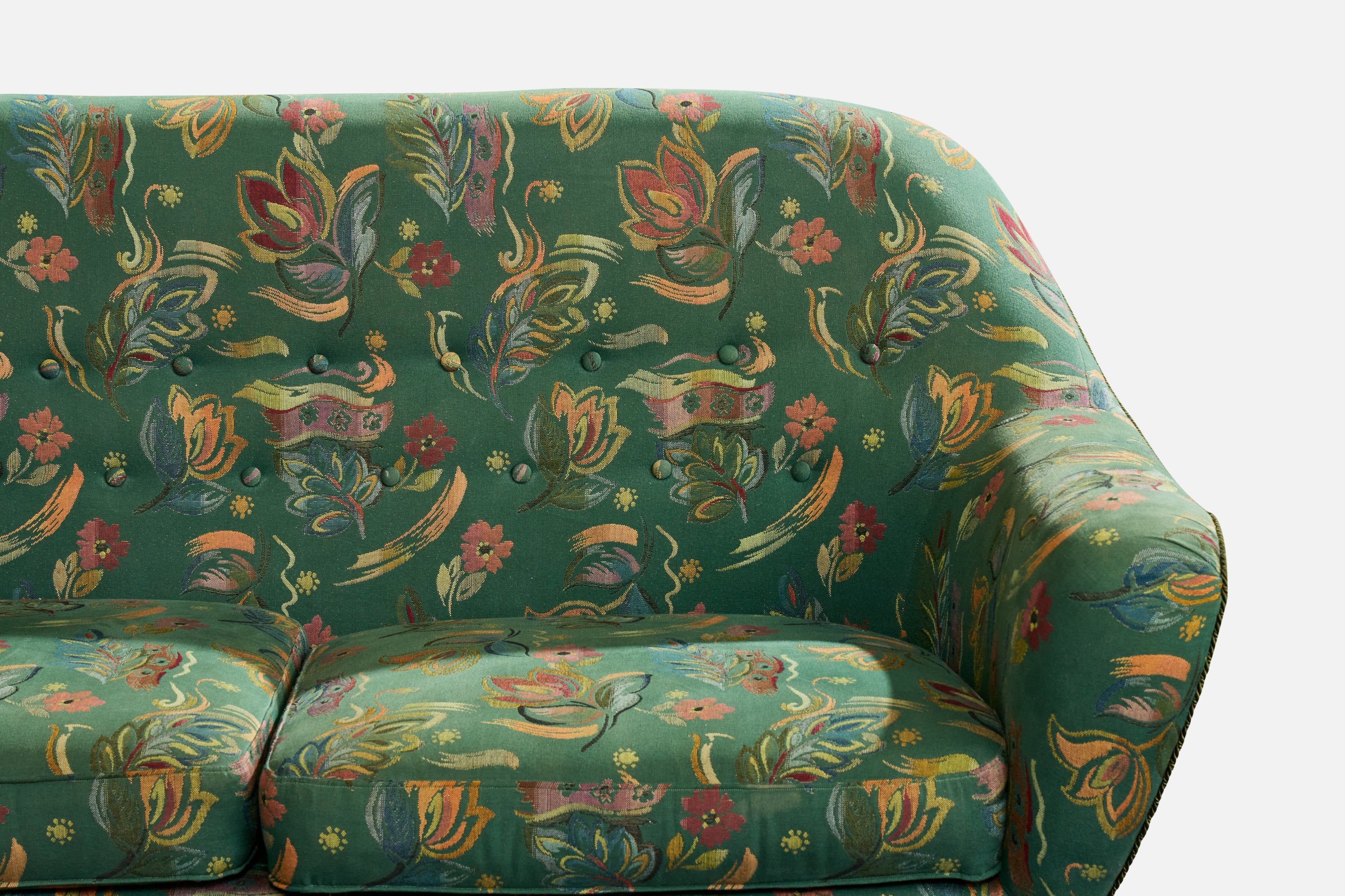 A green floral-printed fabric and wood sofa, model "Chile" designed by Svante Skogh and produced by Klings, Sweden, c. 1950s.