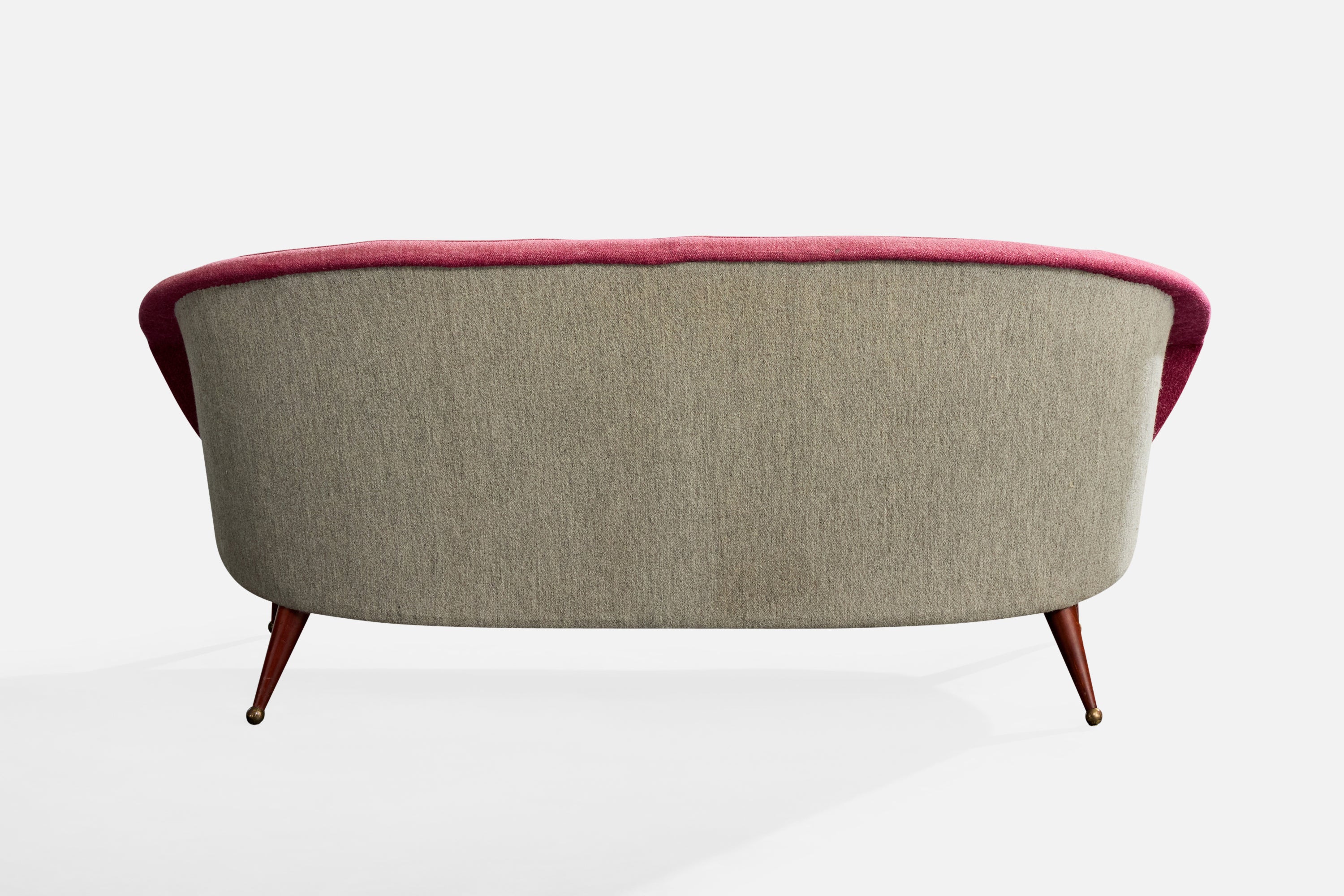 Folke Jansson, Sofa, Fabric, Teak, Brass, Sweden, 1950s