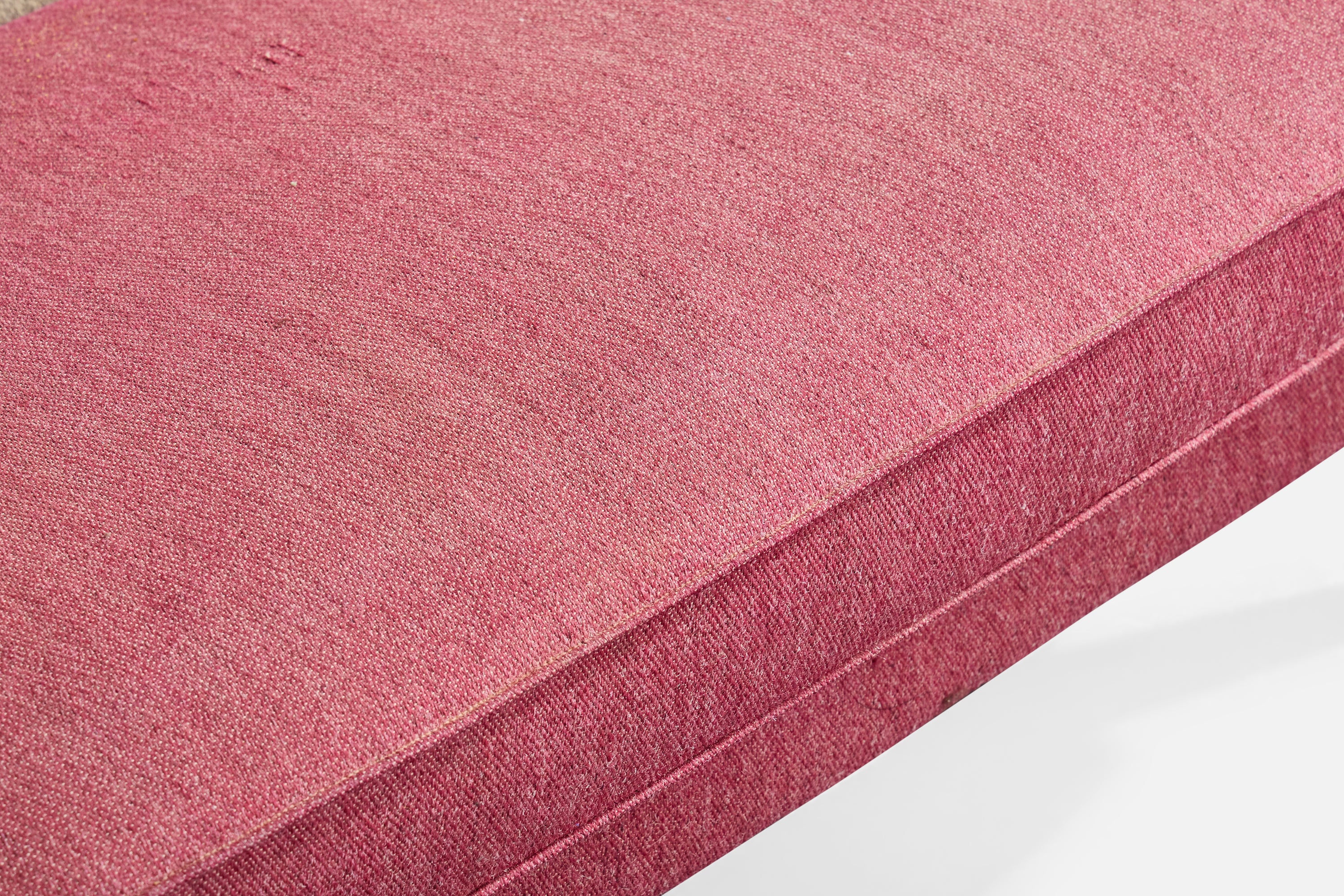 A pink grey fabric, teak and brass sofa or settee, model Tellus, designed by Folke Jansson and produced by SM Wincrantz, Skövde, Sweden, c. 1950s.