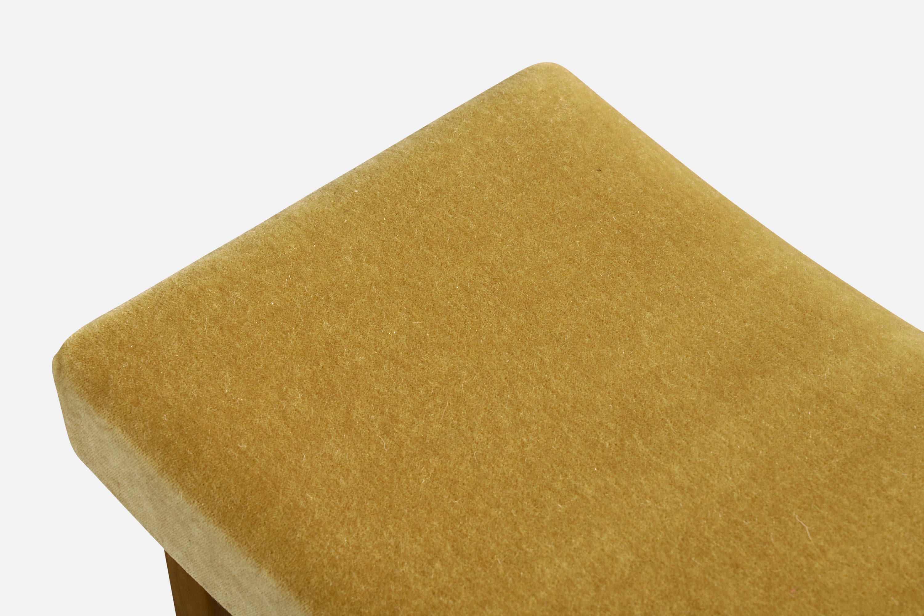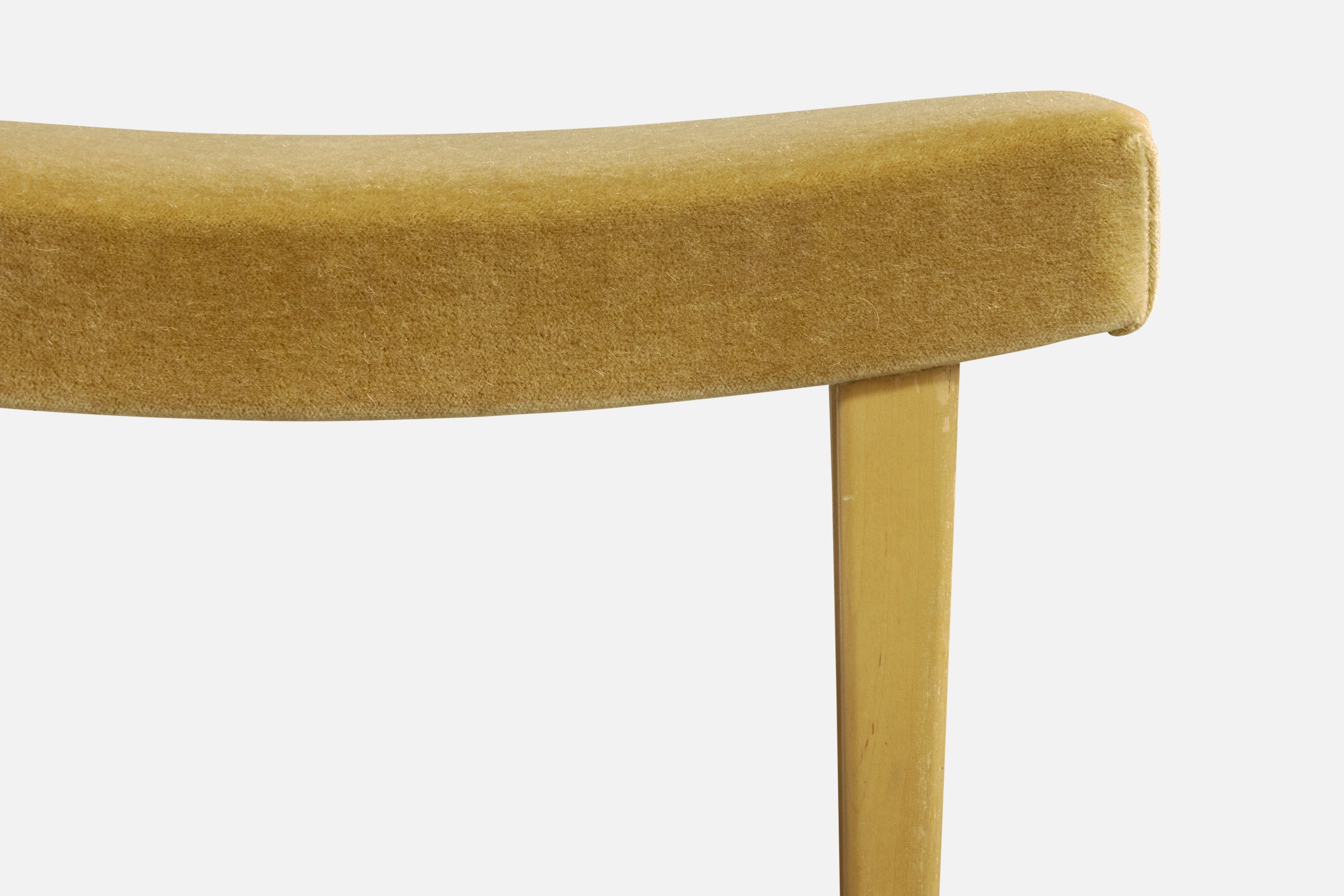 A beige mohair and wood stool designed by Bruno Mathsson and produced by Firma Karl Mathsson, Sweden, c. 1940s.