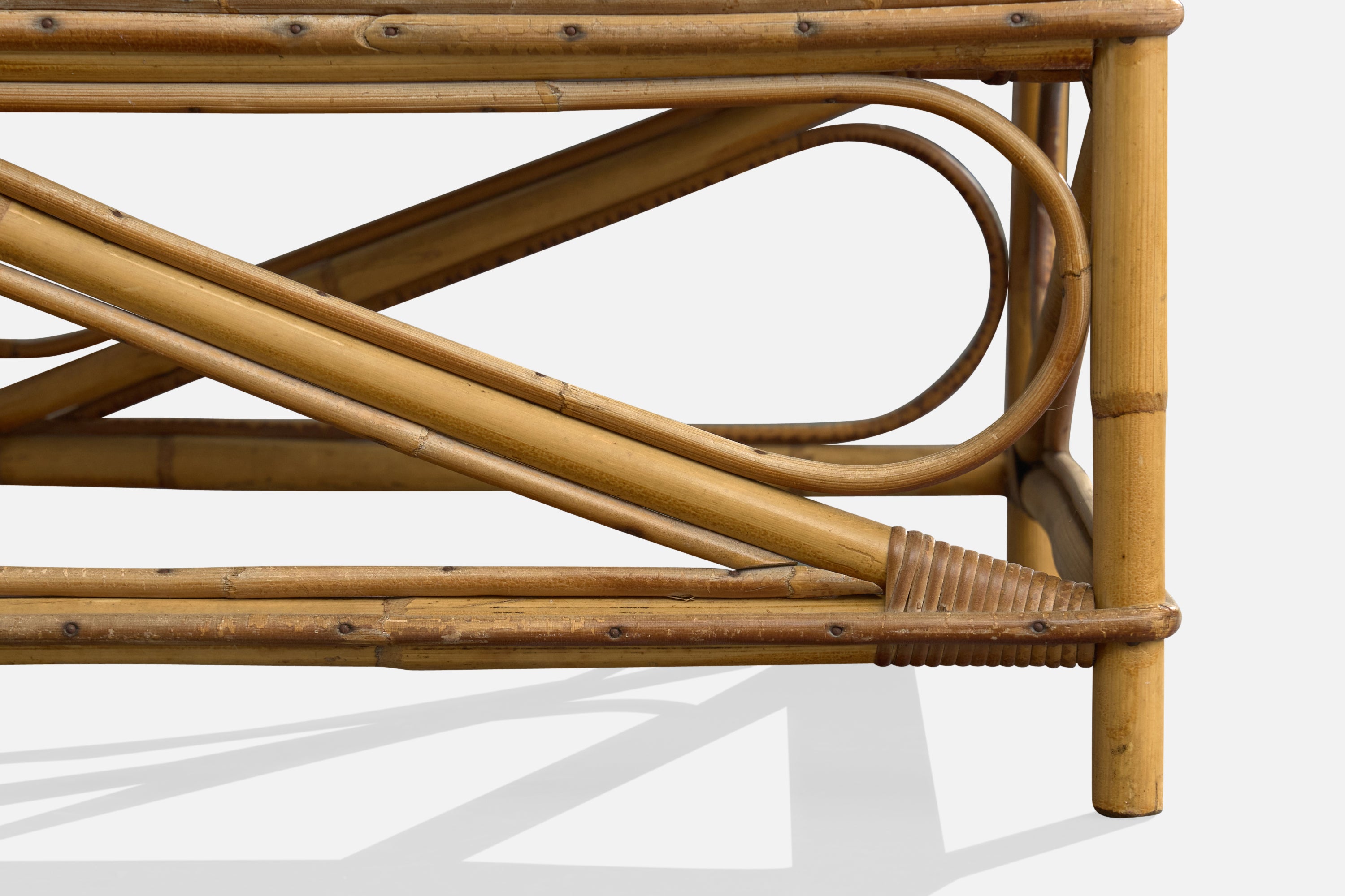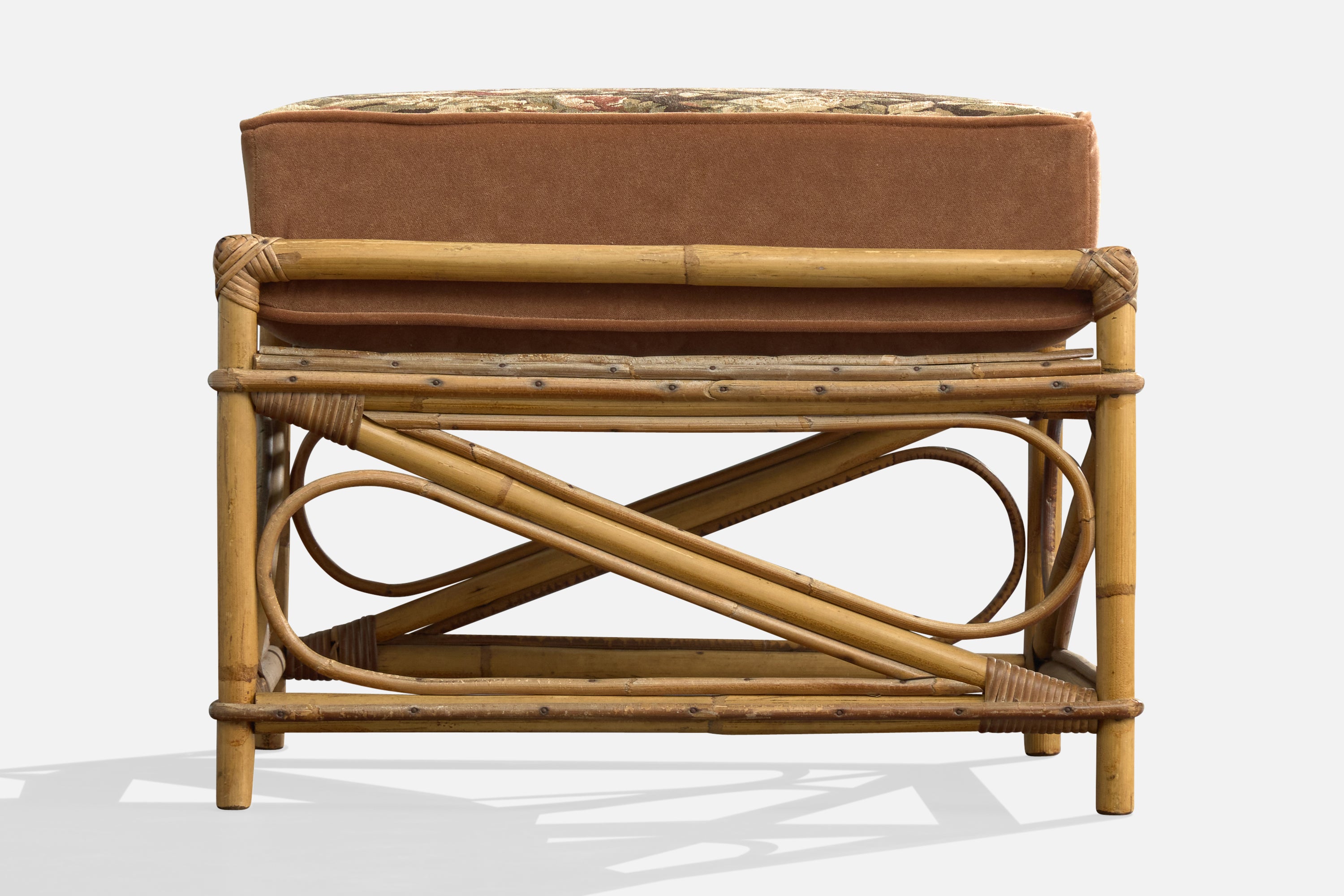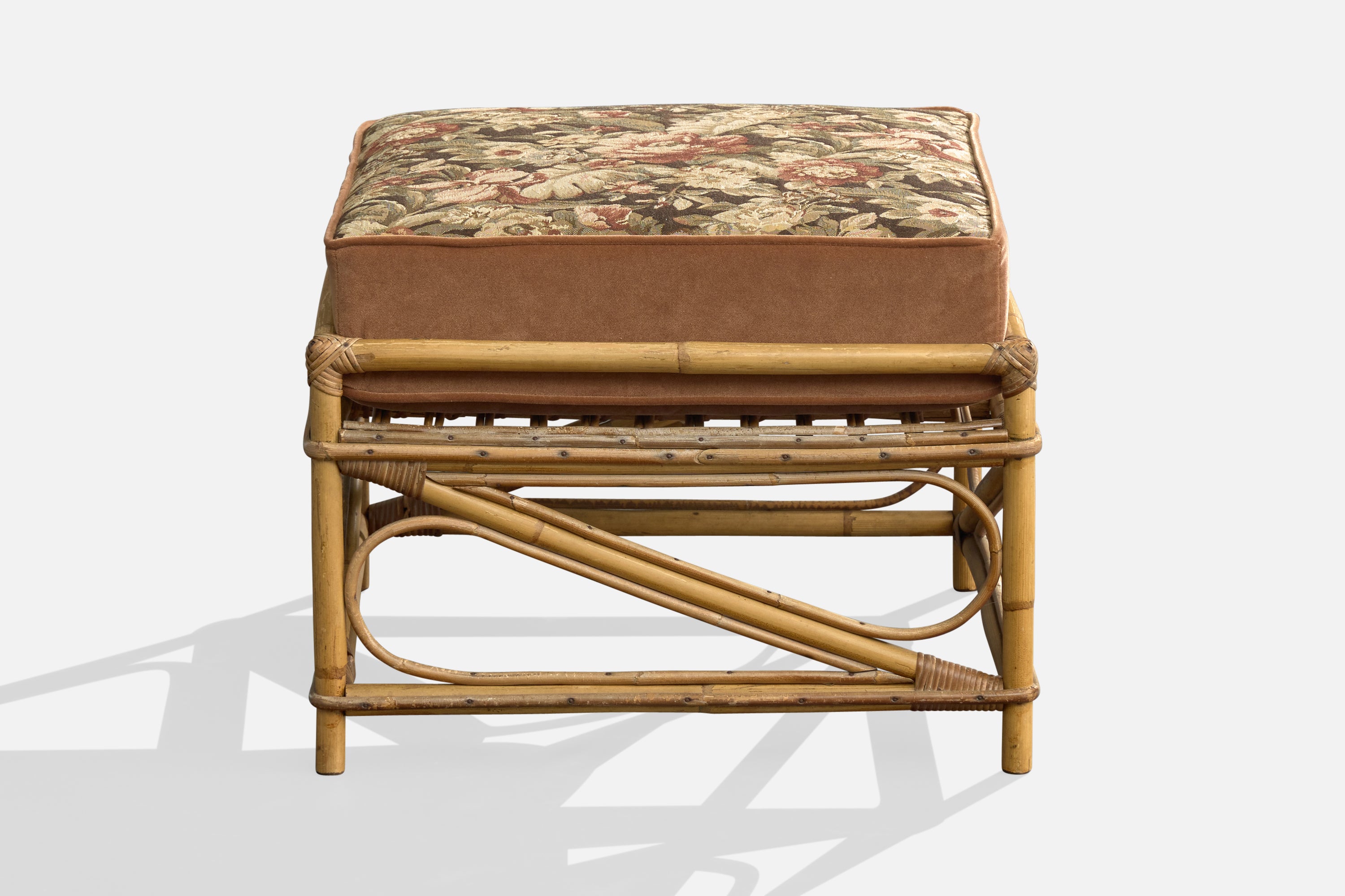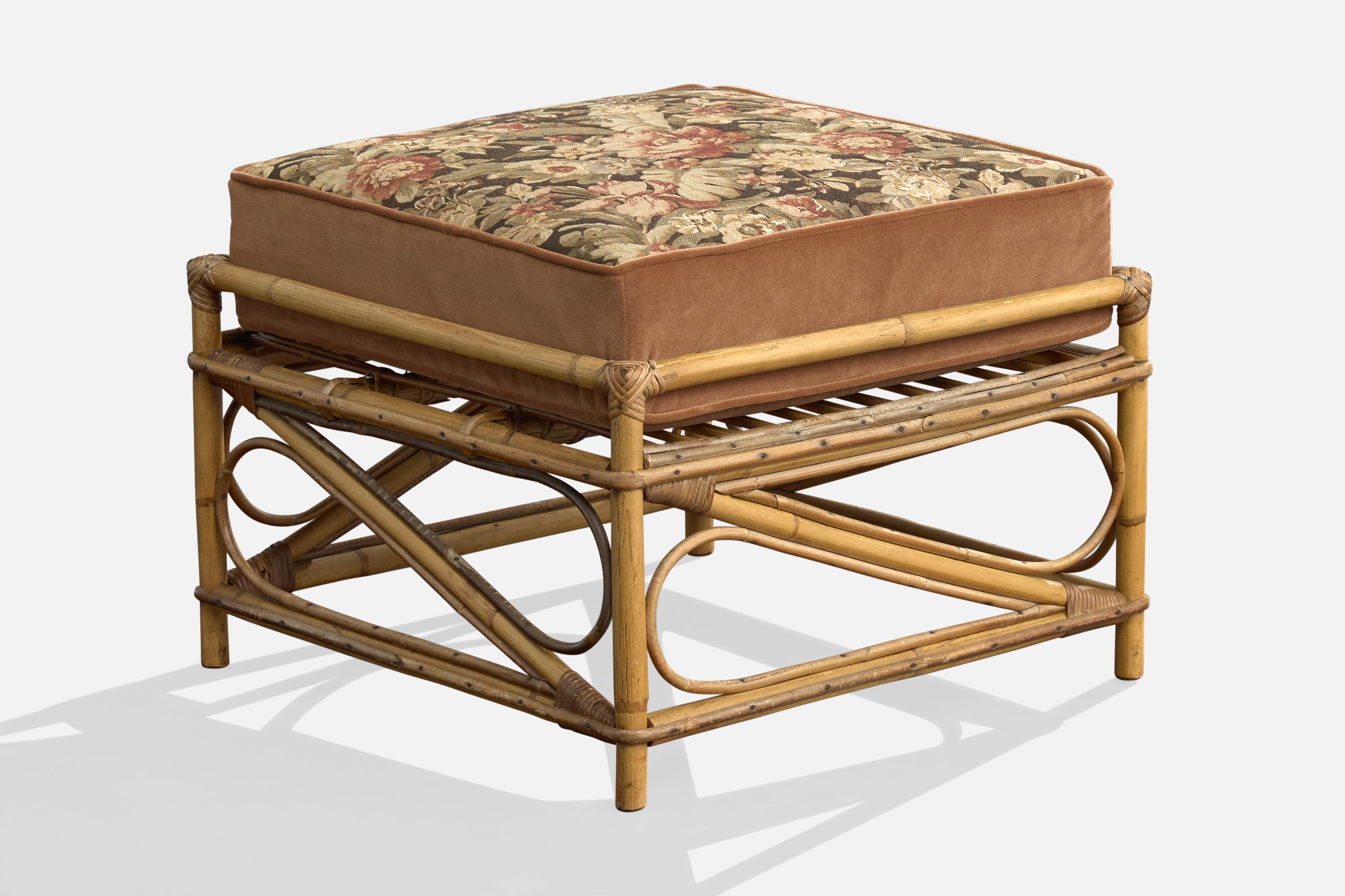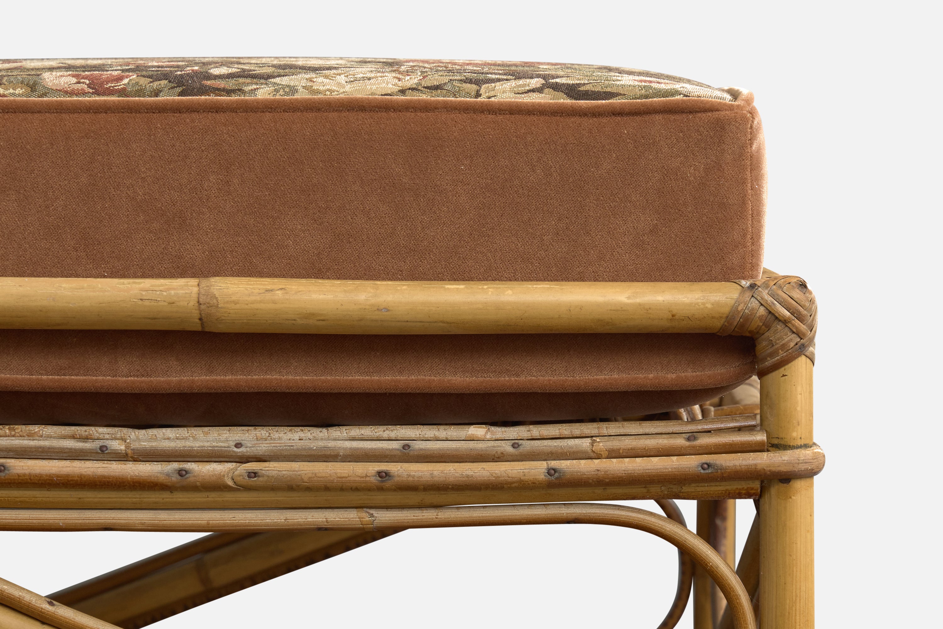 American Designer, Stool, Bamboo, Rattan, Velvet, Fabric, USA, 1950s