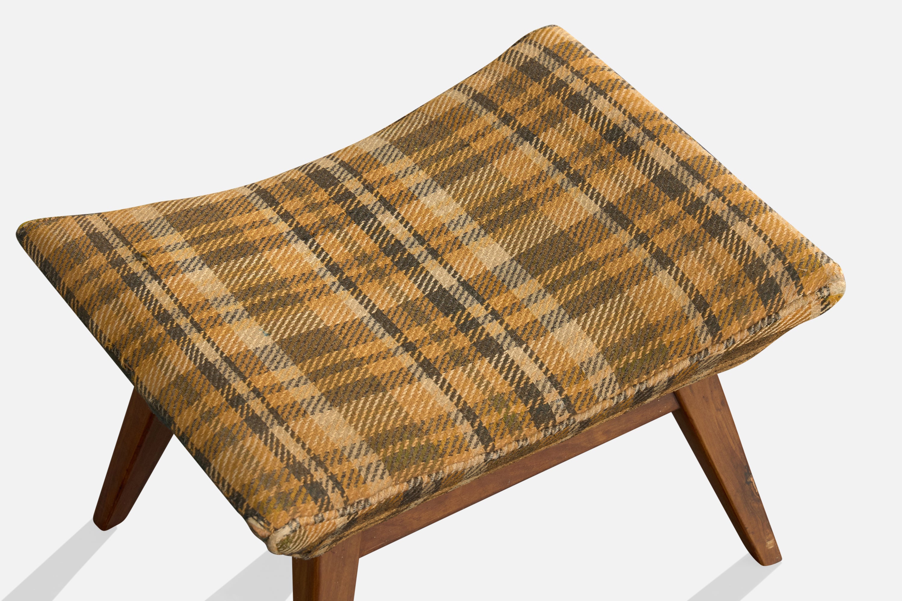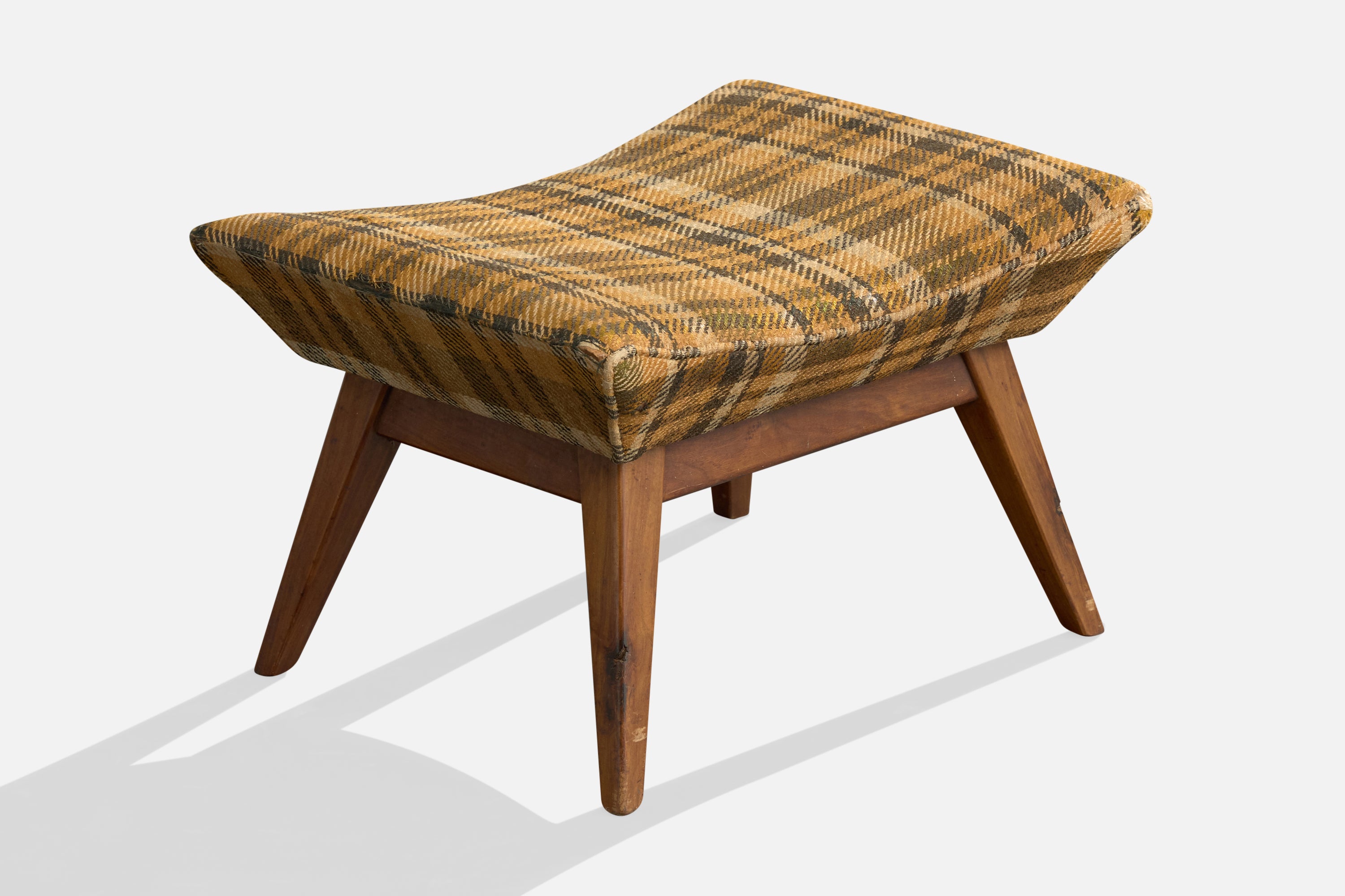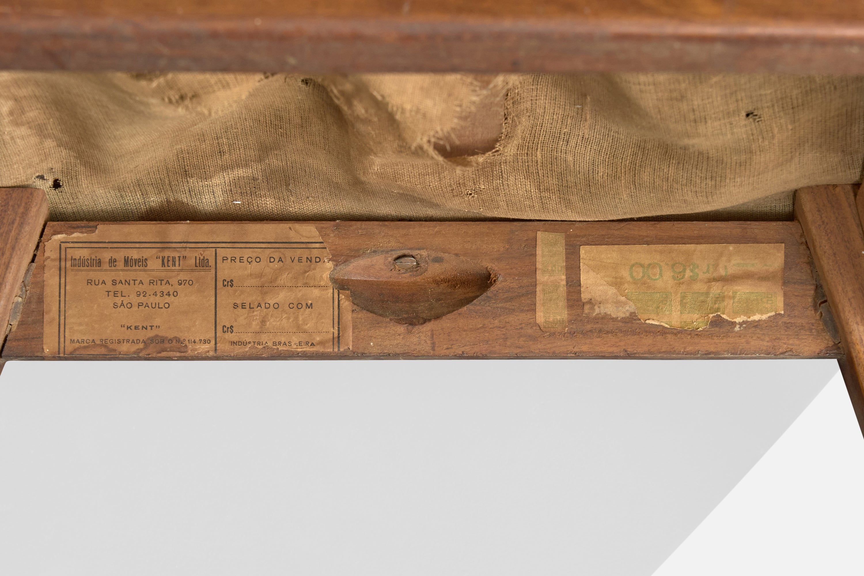 A wood and beige yellow fabric stool produced by Kent Móveis designed and produced in Brazil, c. 1950s.
