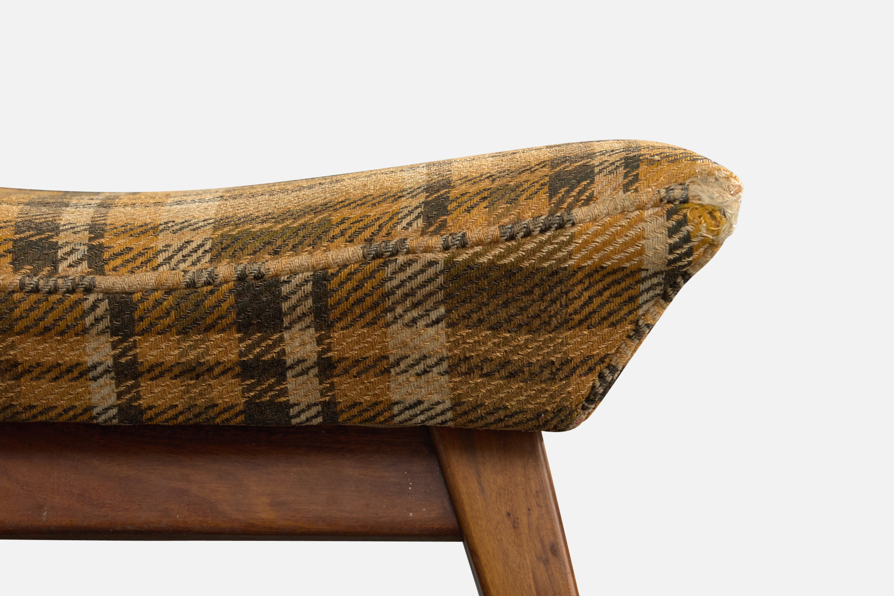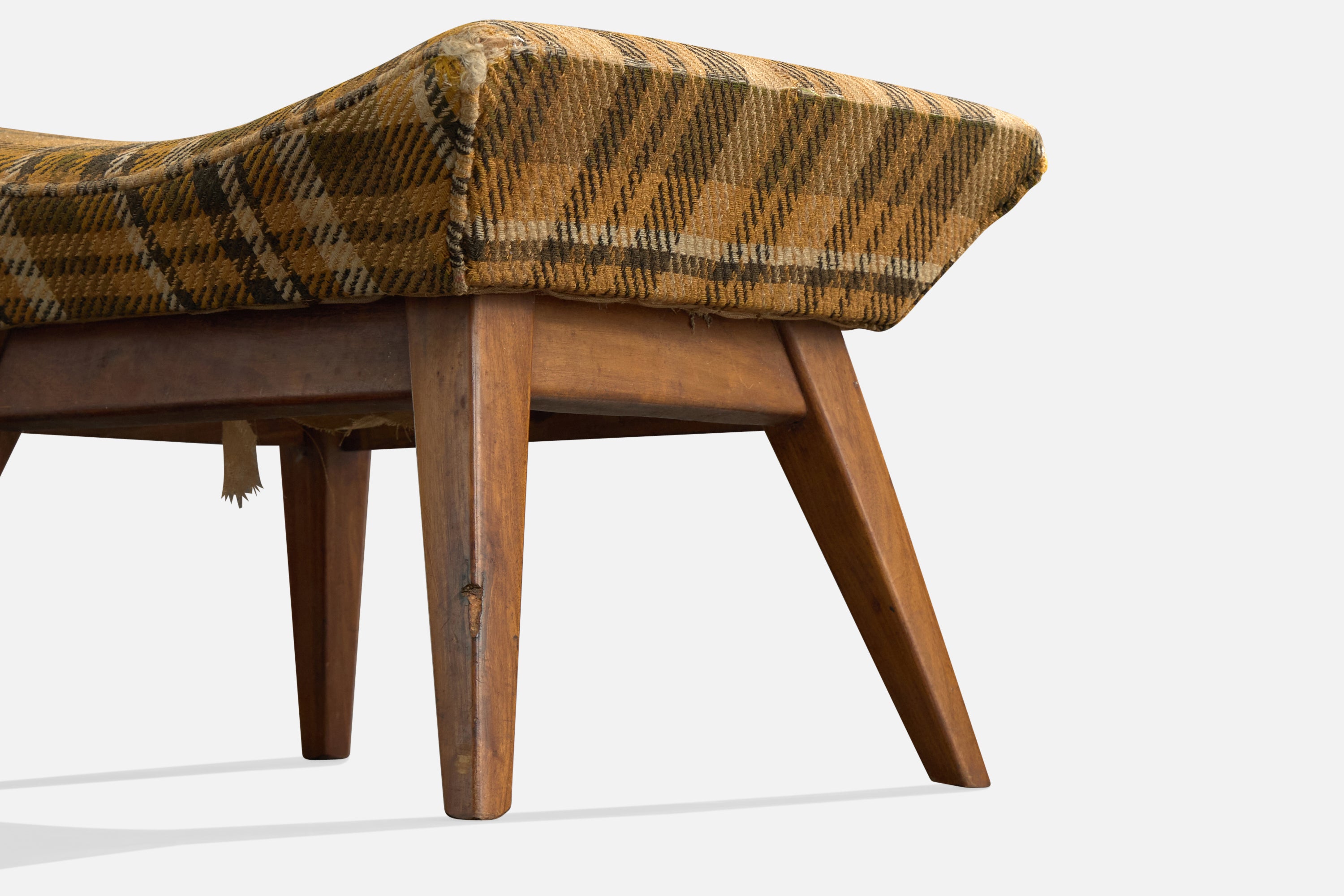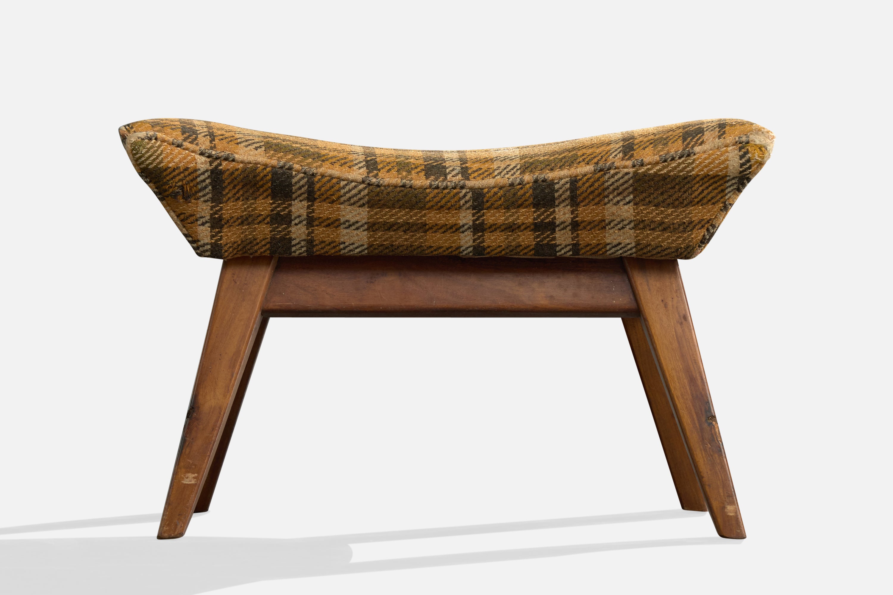 A wood and beige yellow fabric stool produced by Kent Móveis designed and produced in Brazil, c. 1950s.