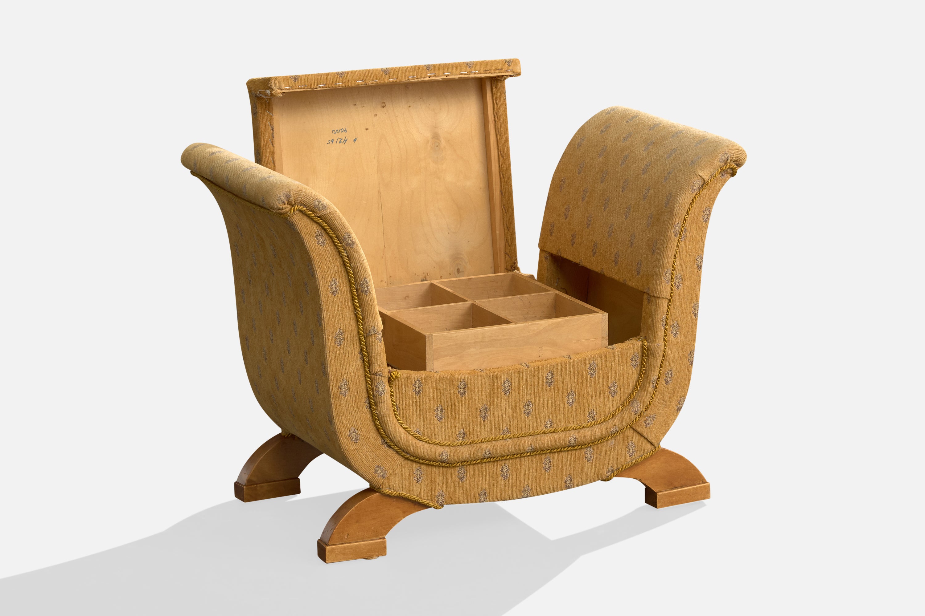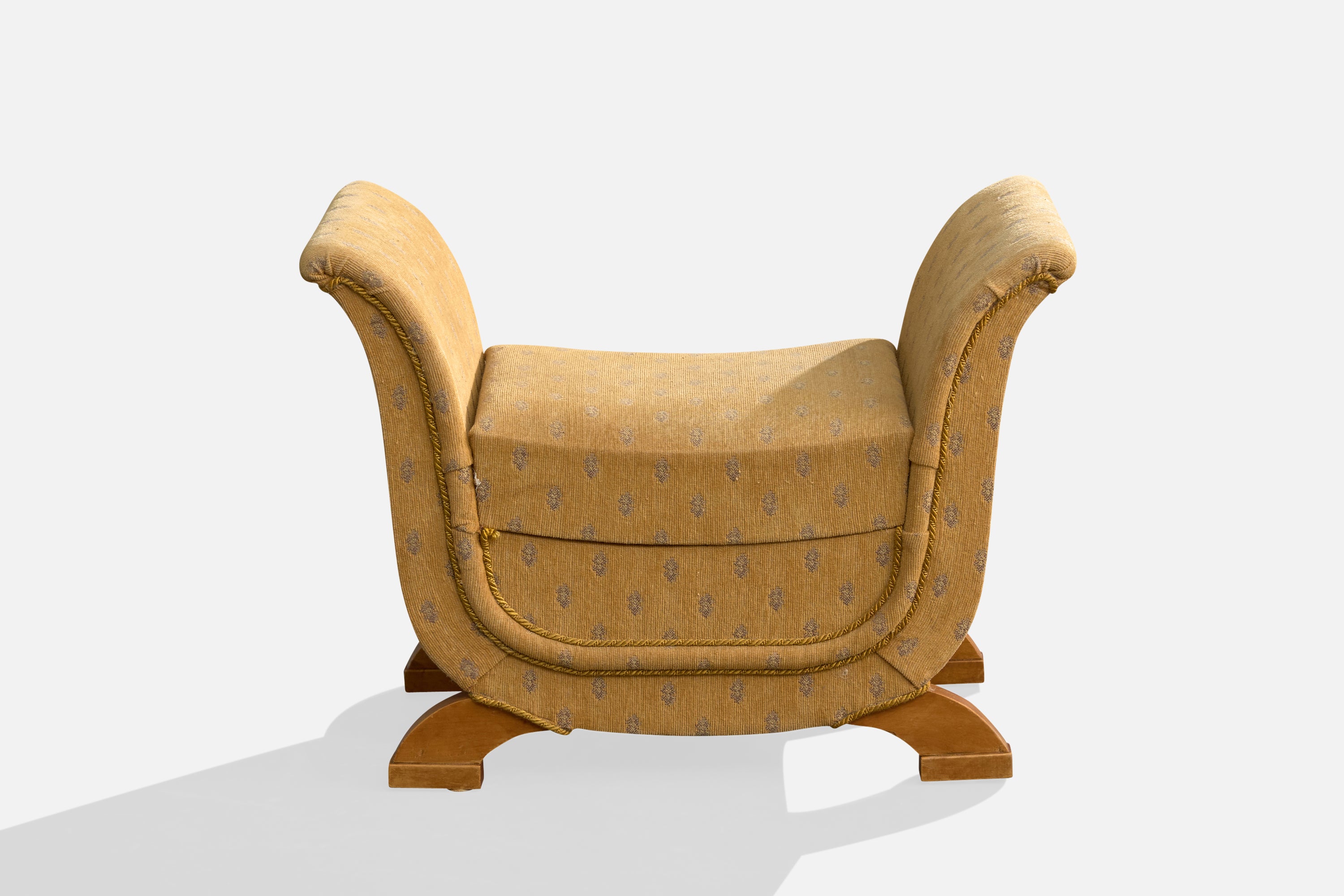 Swedish Designer, Sewing Stool, Fabric, Wood, Sweden, 1930s