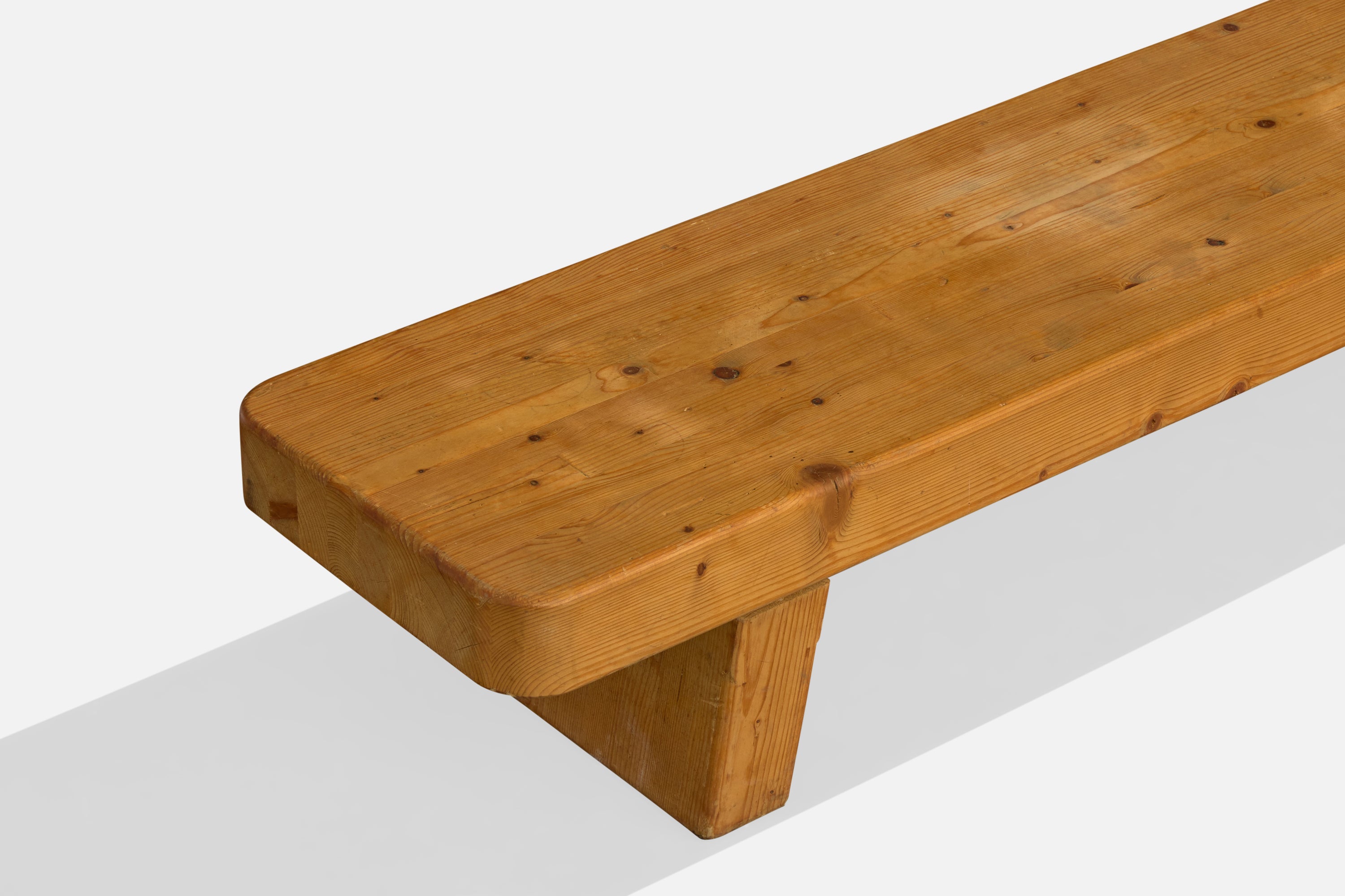 A sizable pine bench designed and produced in France, c. 1980s.