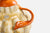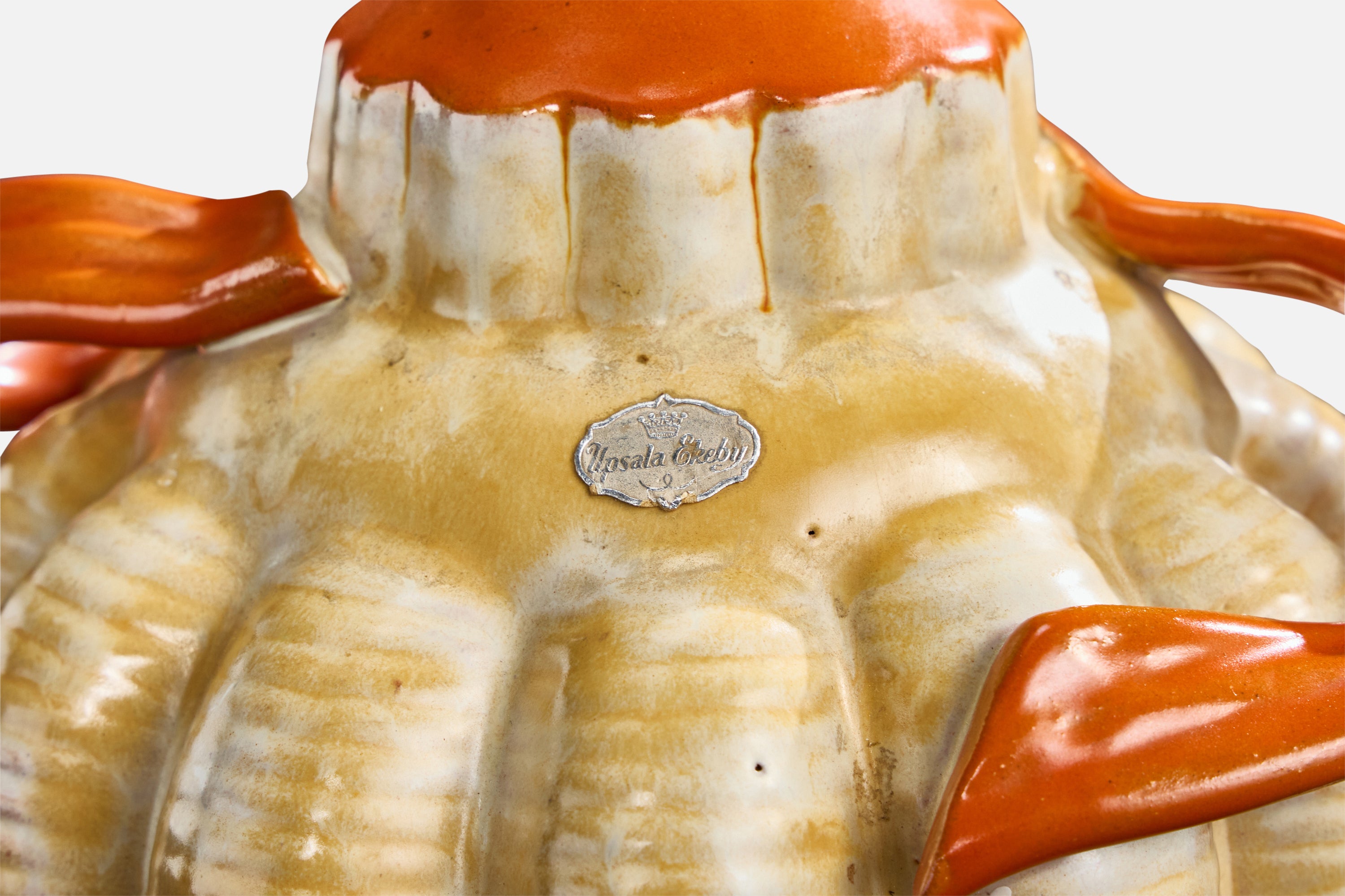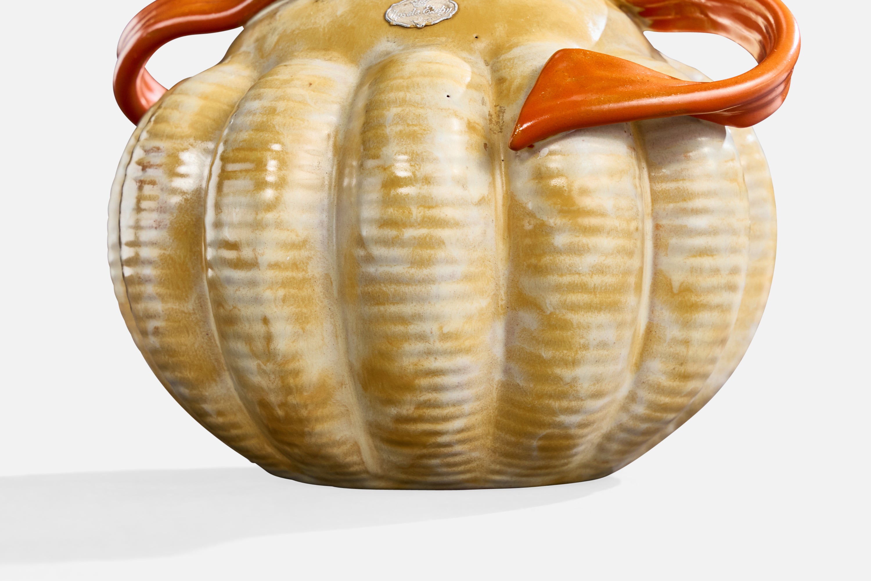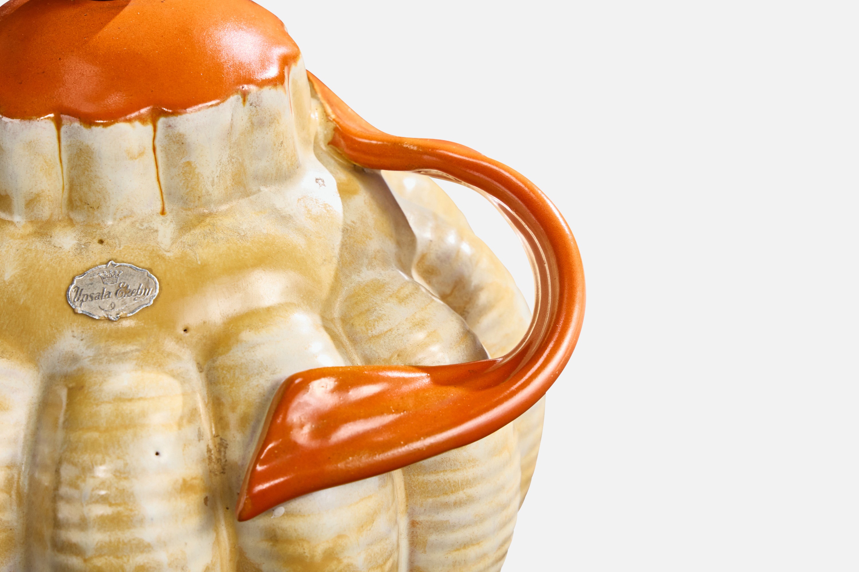 A beige orange glazed ceramic and brass table lamp designed and produced in Sweden, c. 1930s.