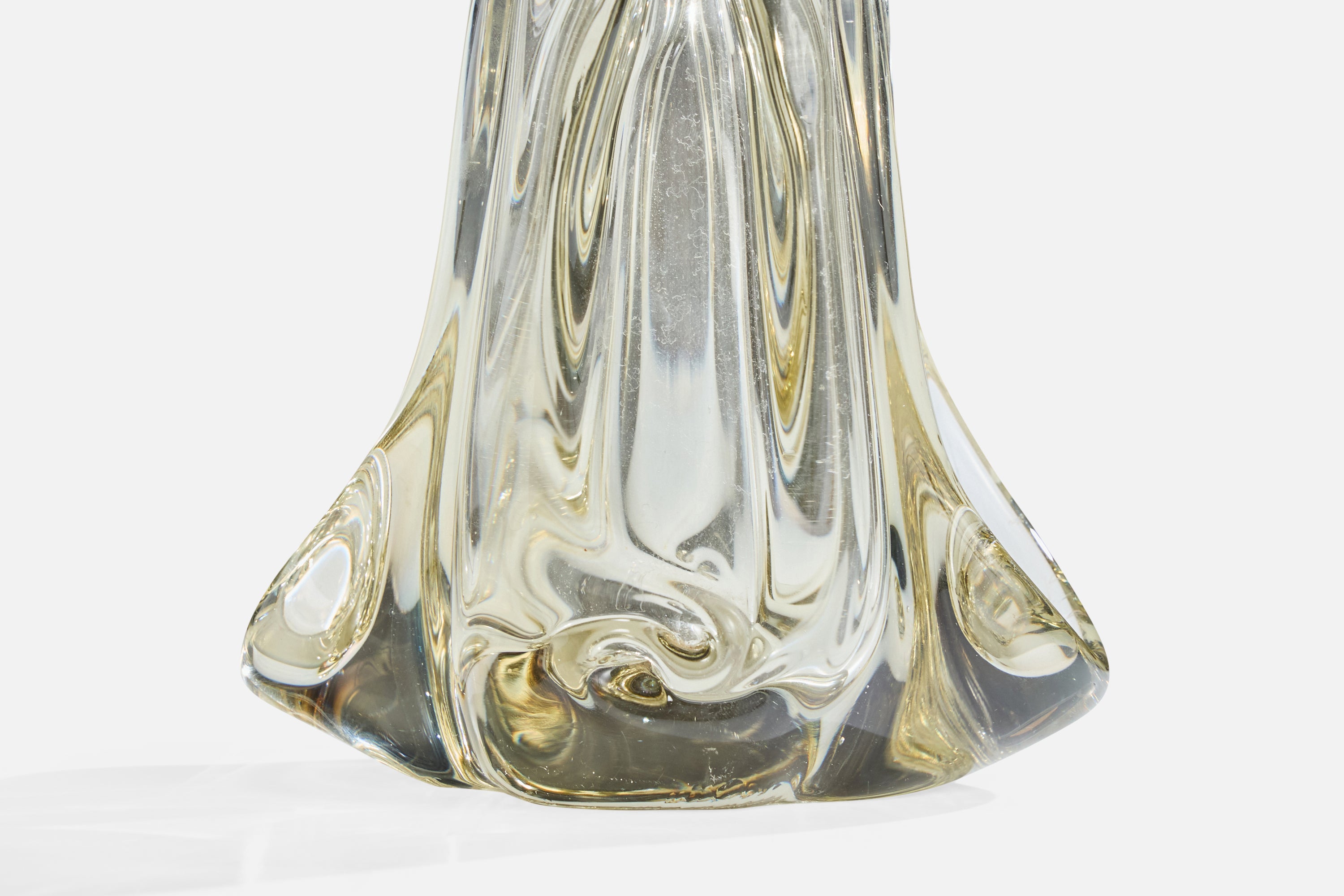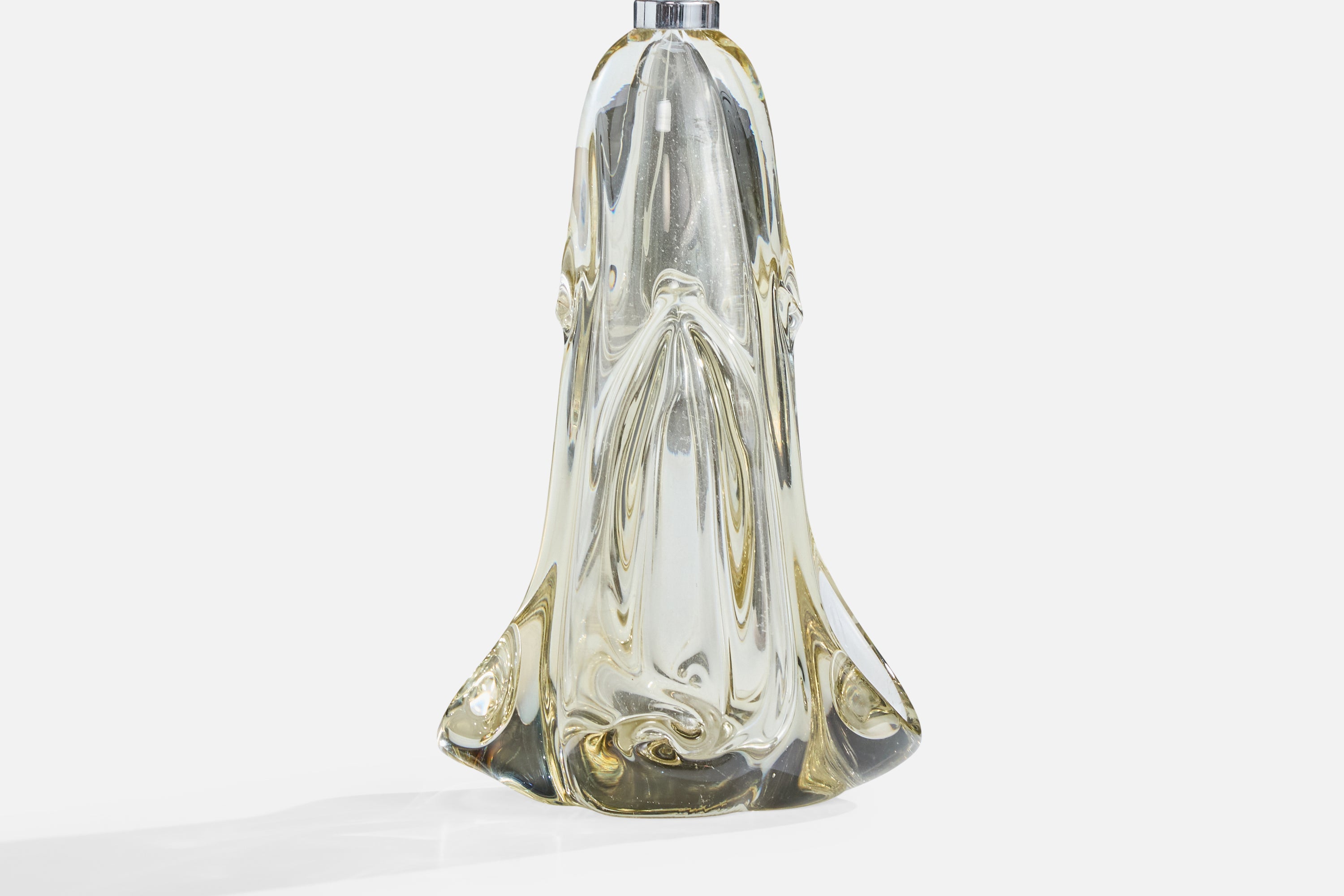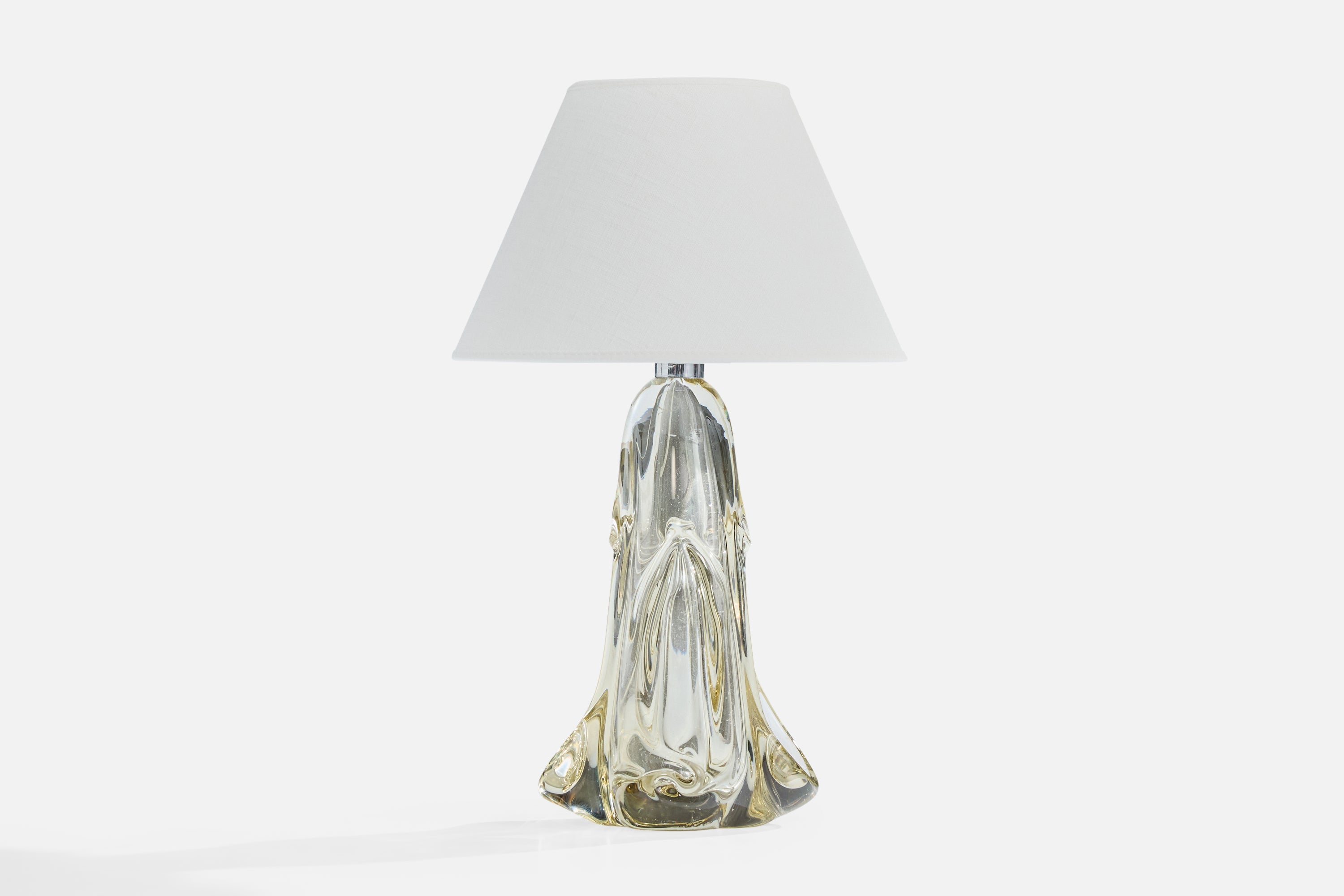 A blown crystal glass table lamp designed and produced in France, c. 1950s.