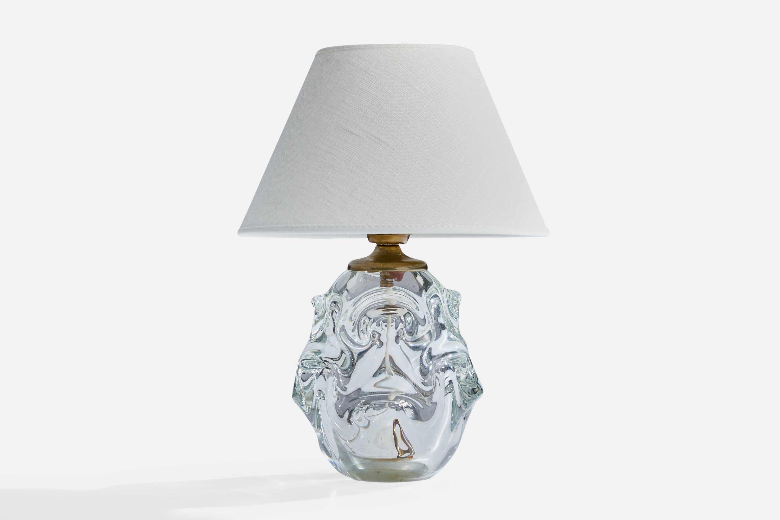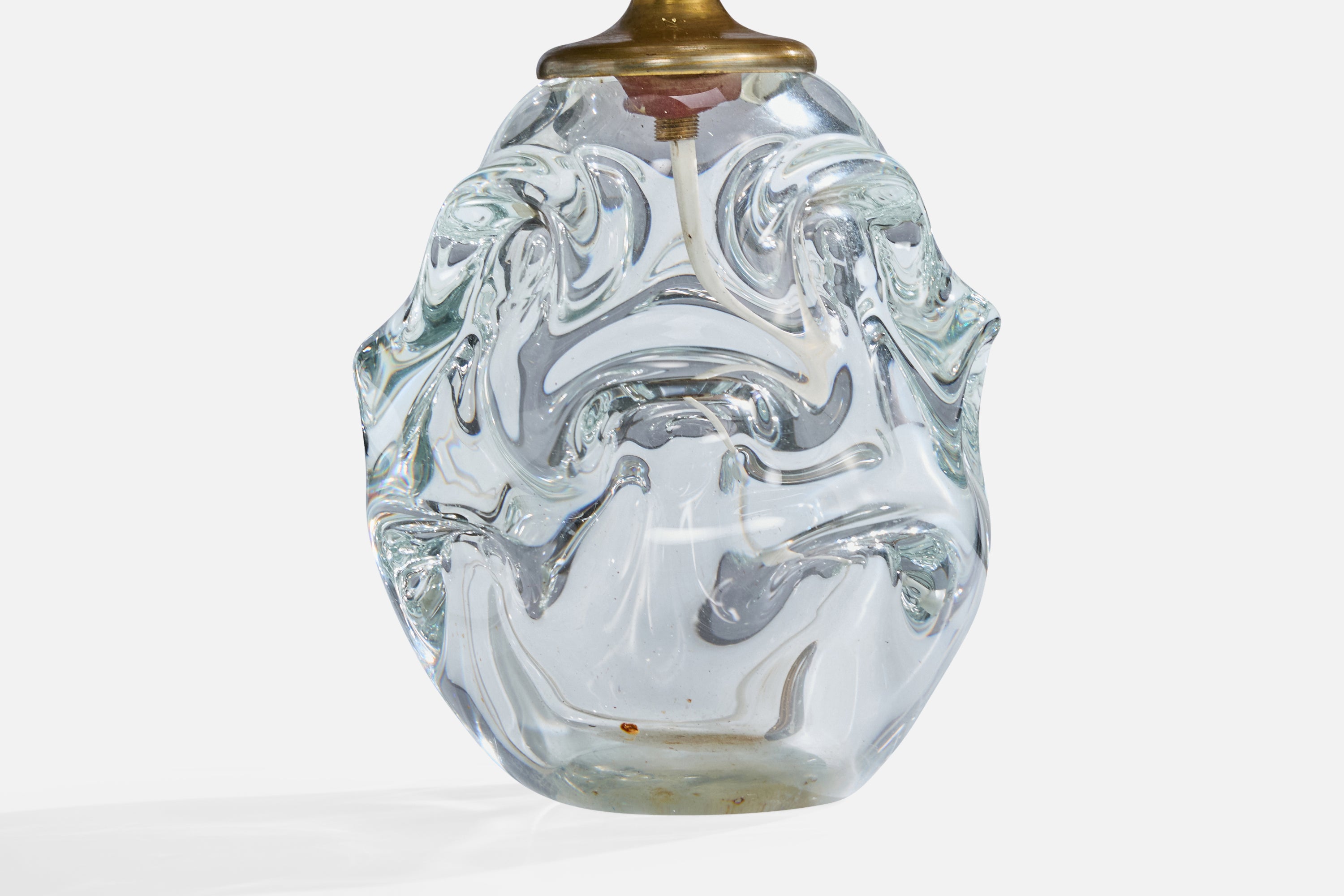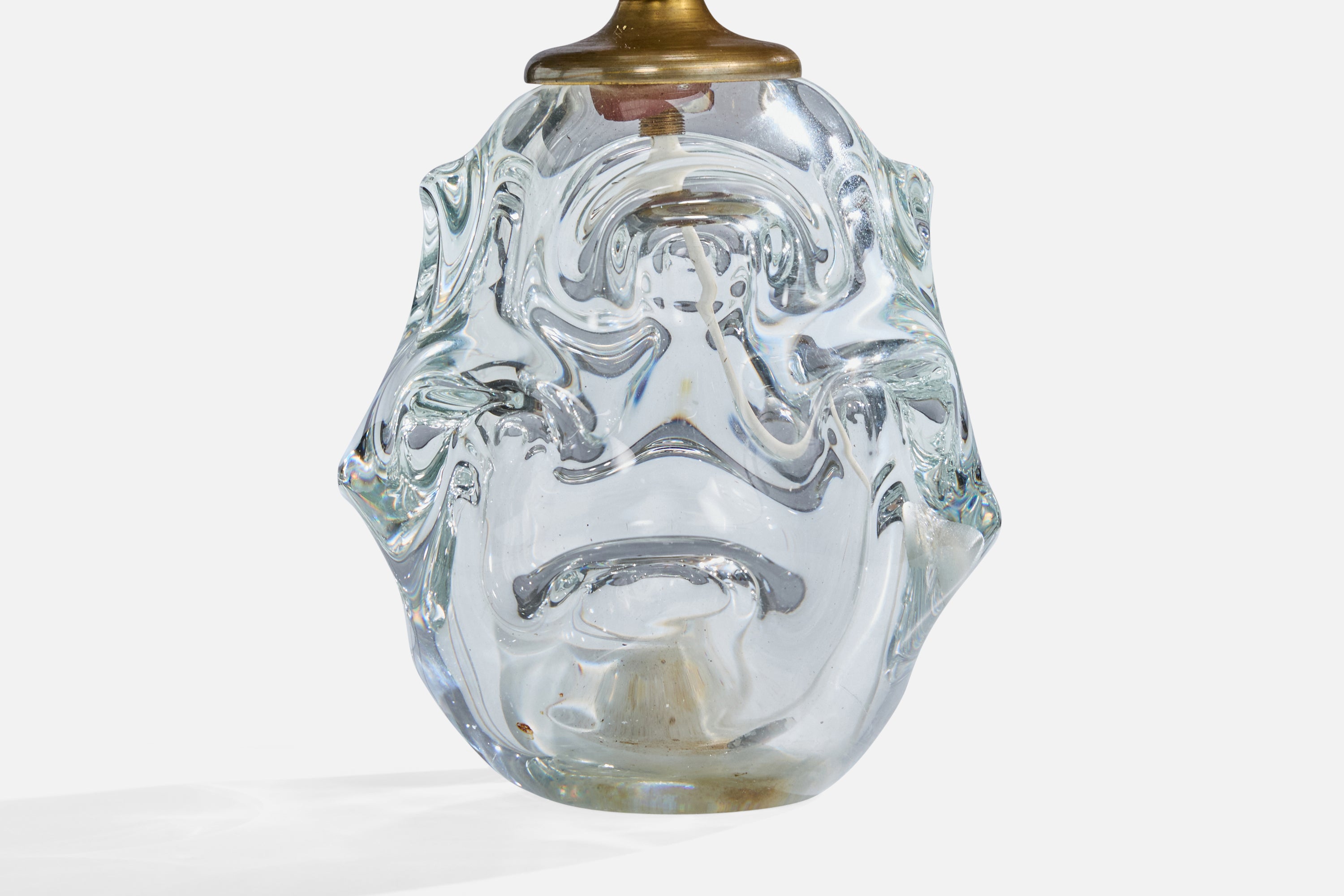 A blown glass and brass table lamp designed by Börne Augustsson and produced by Åseda Glasbruk, Sweden, c. 1940s.