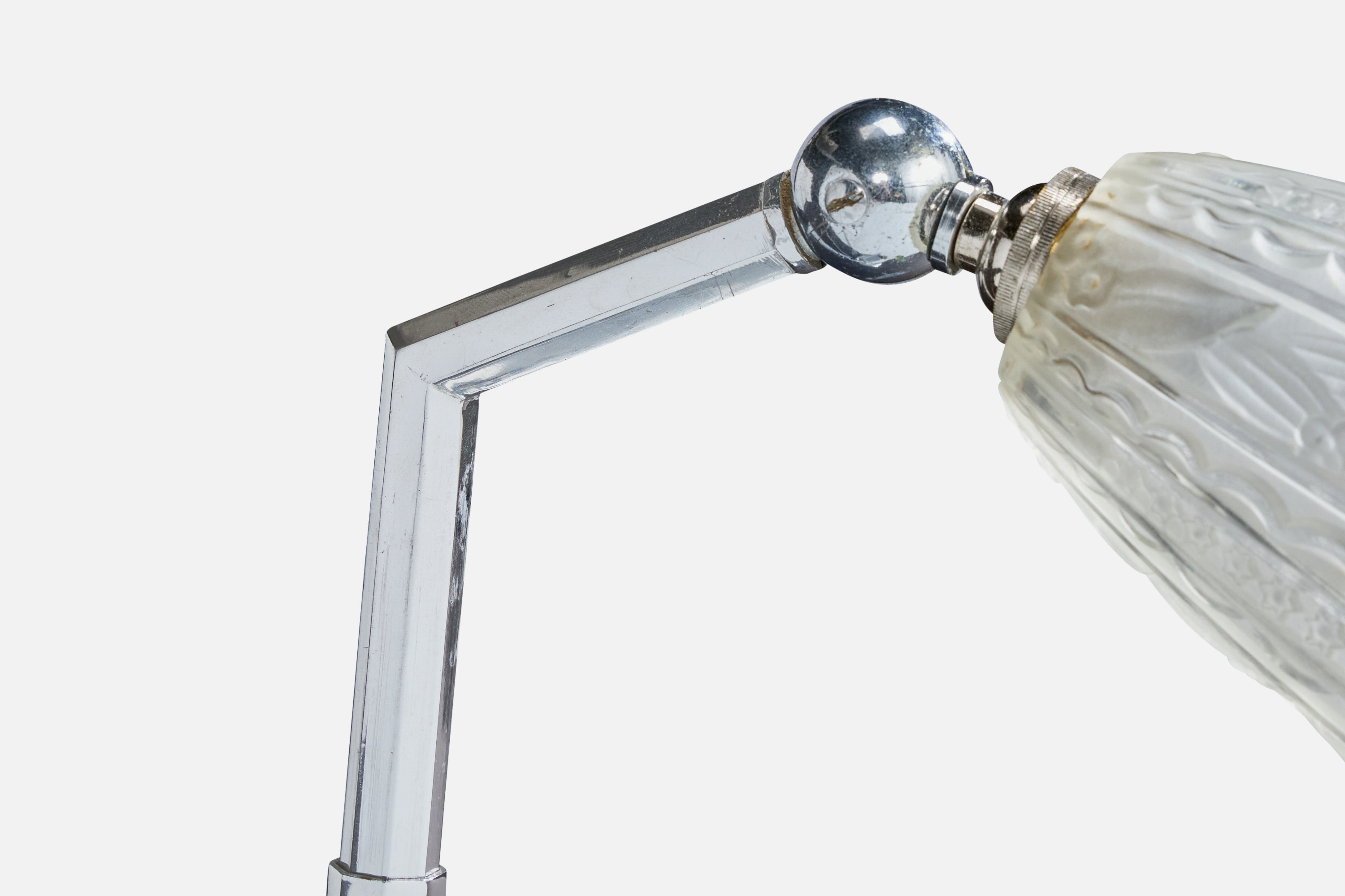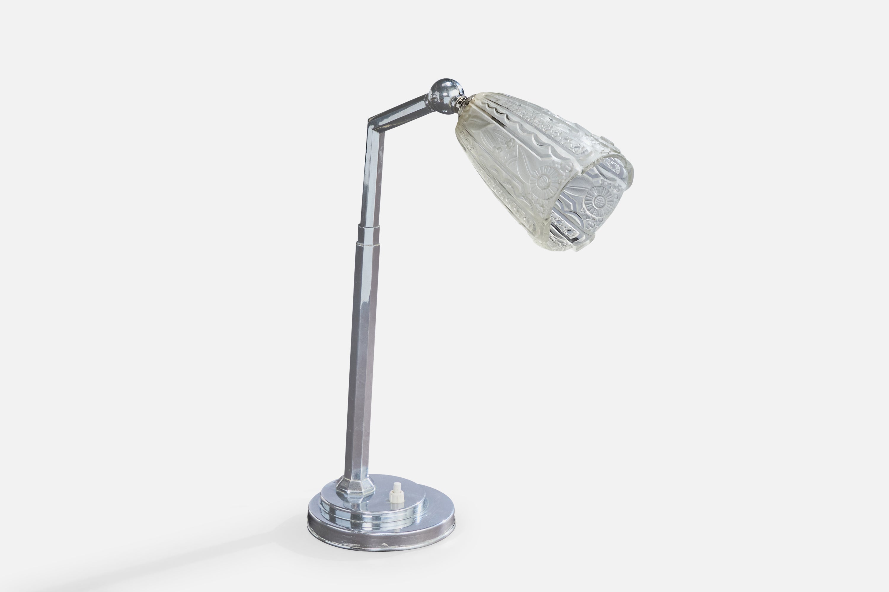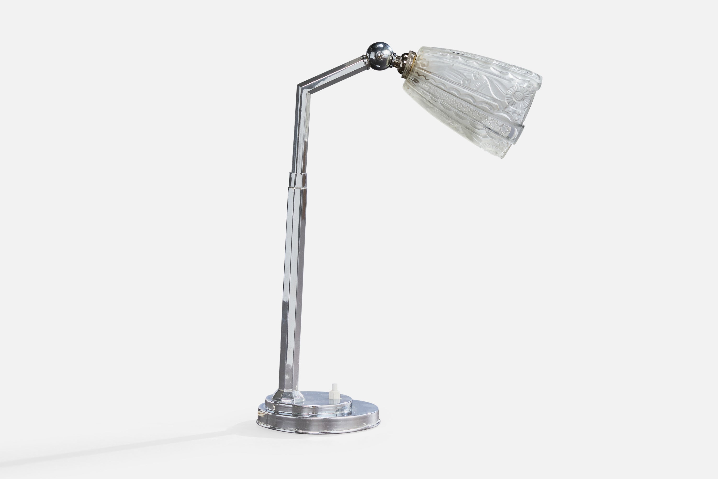 An adjustable chrome metal and glass table lamp designed and produced in France, c. 1930s.