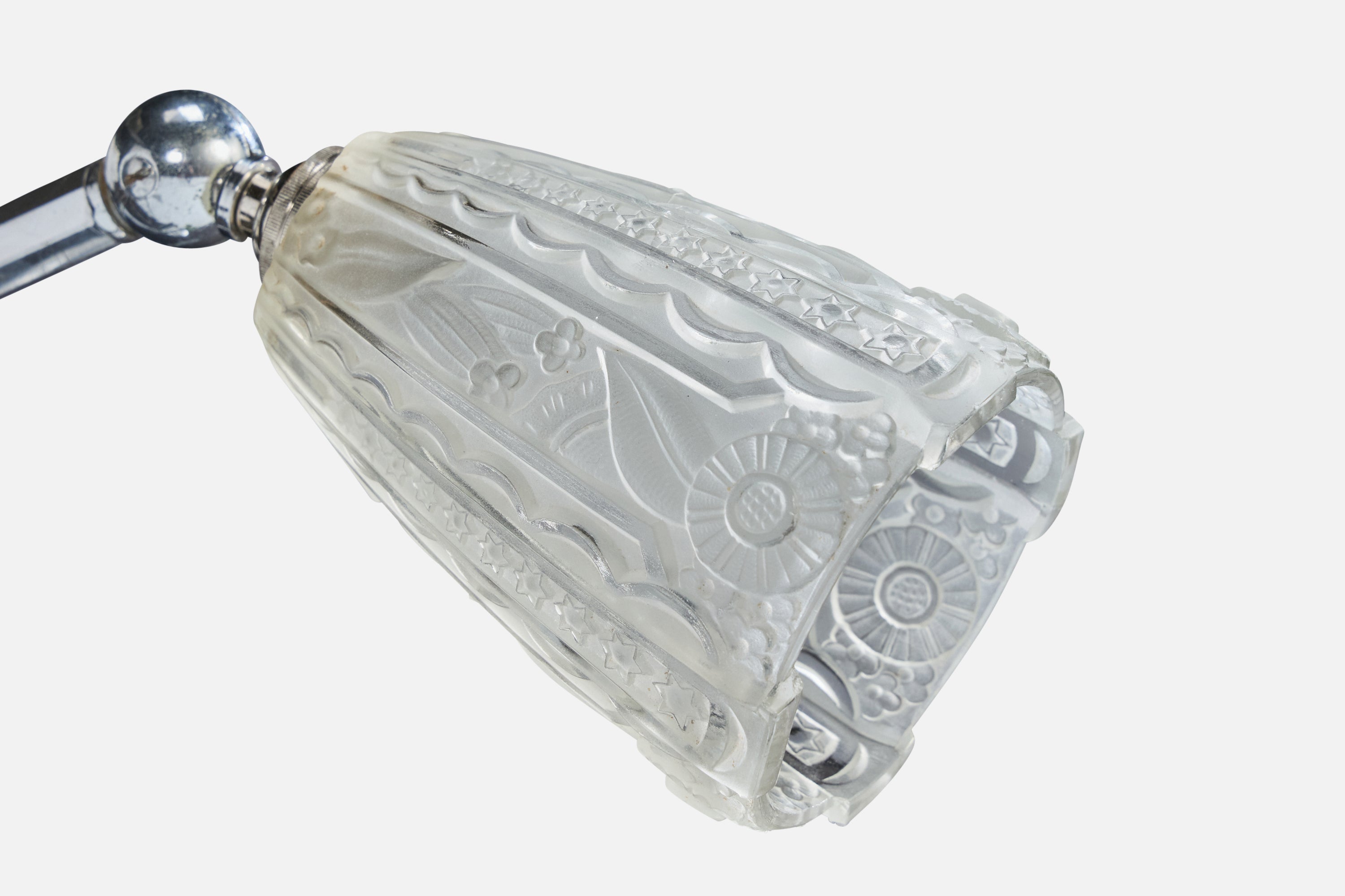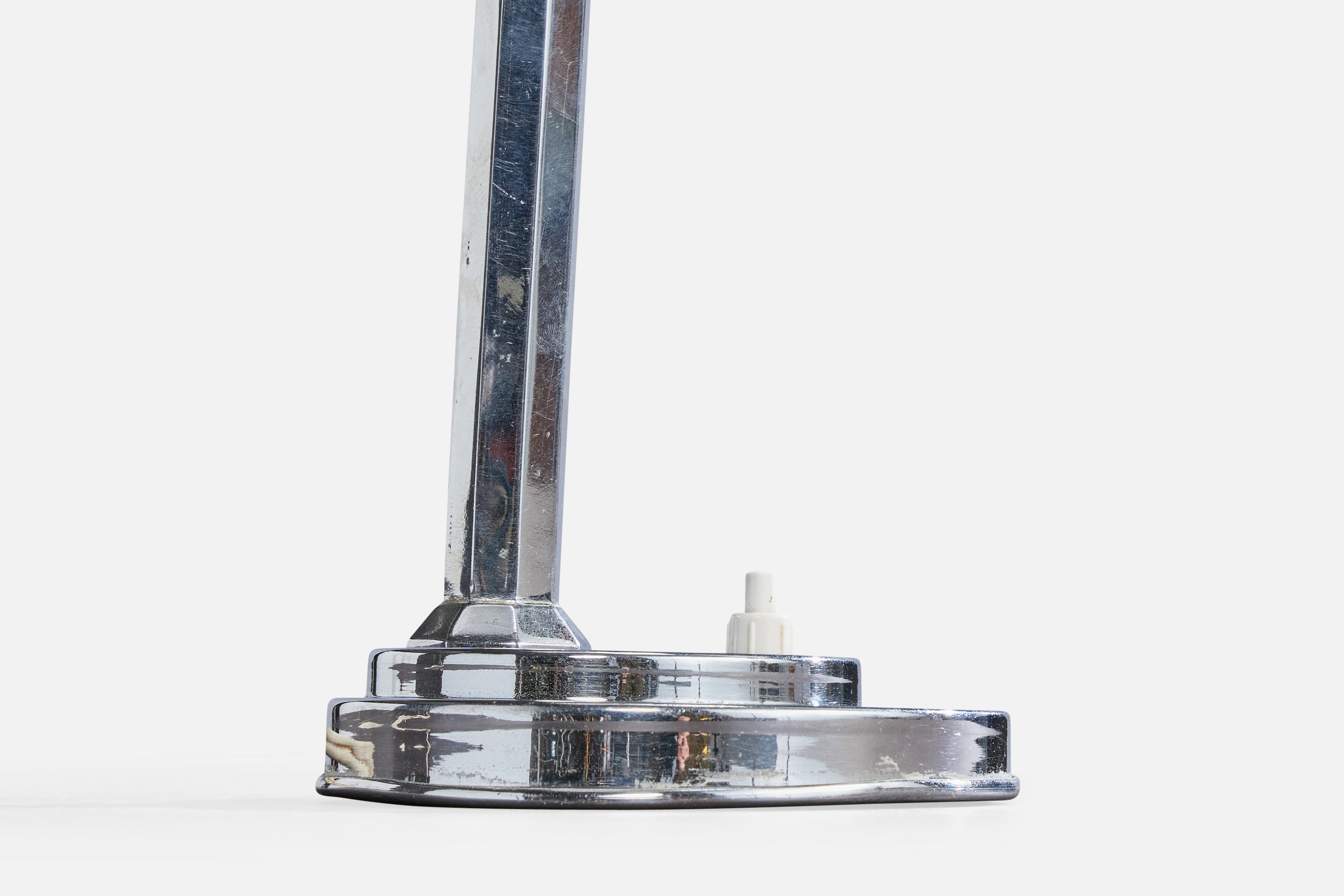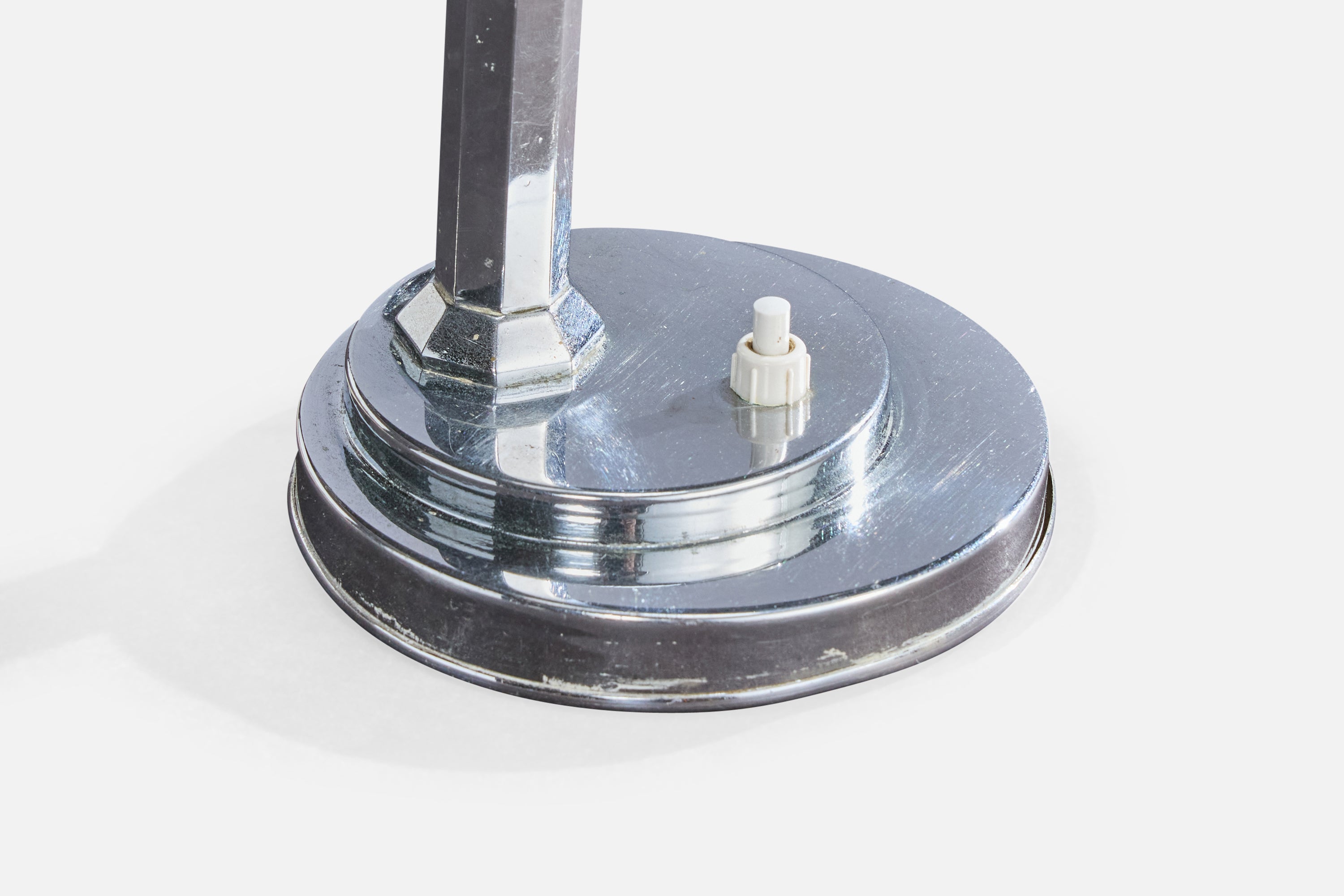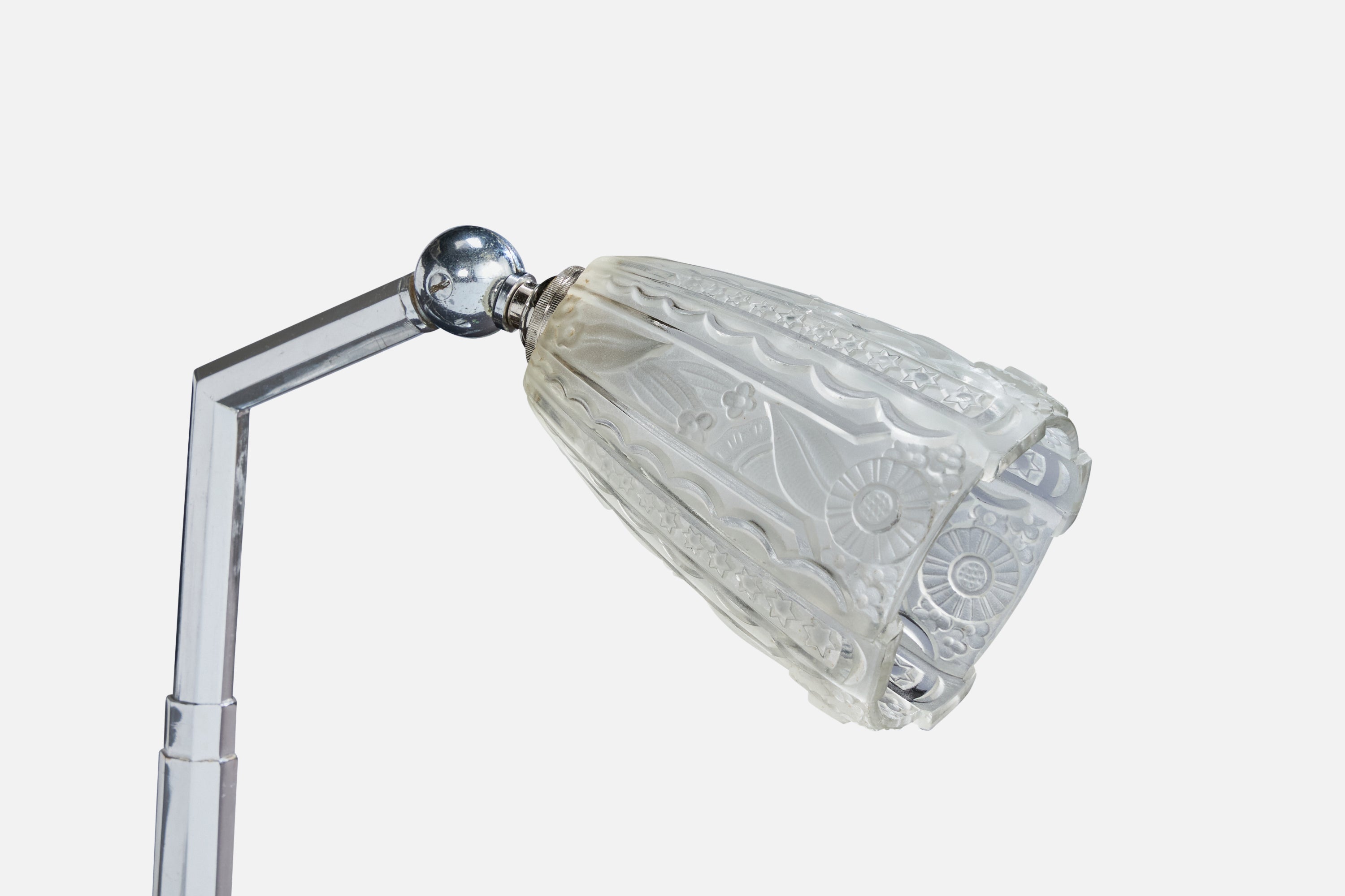 An adjustable chrome metal and glass table lamp designed and produced in France, c. 1930s.