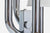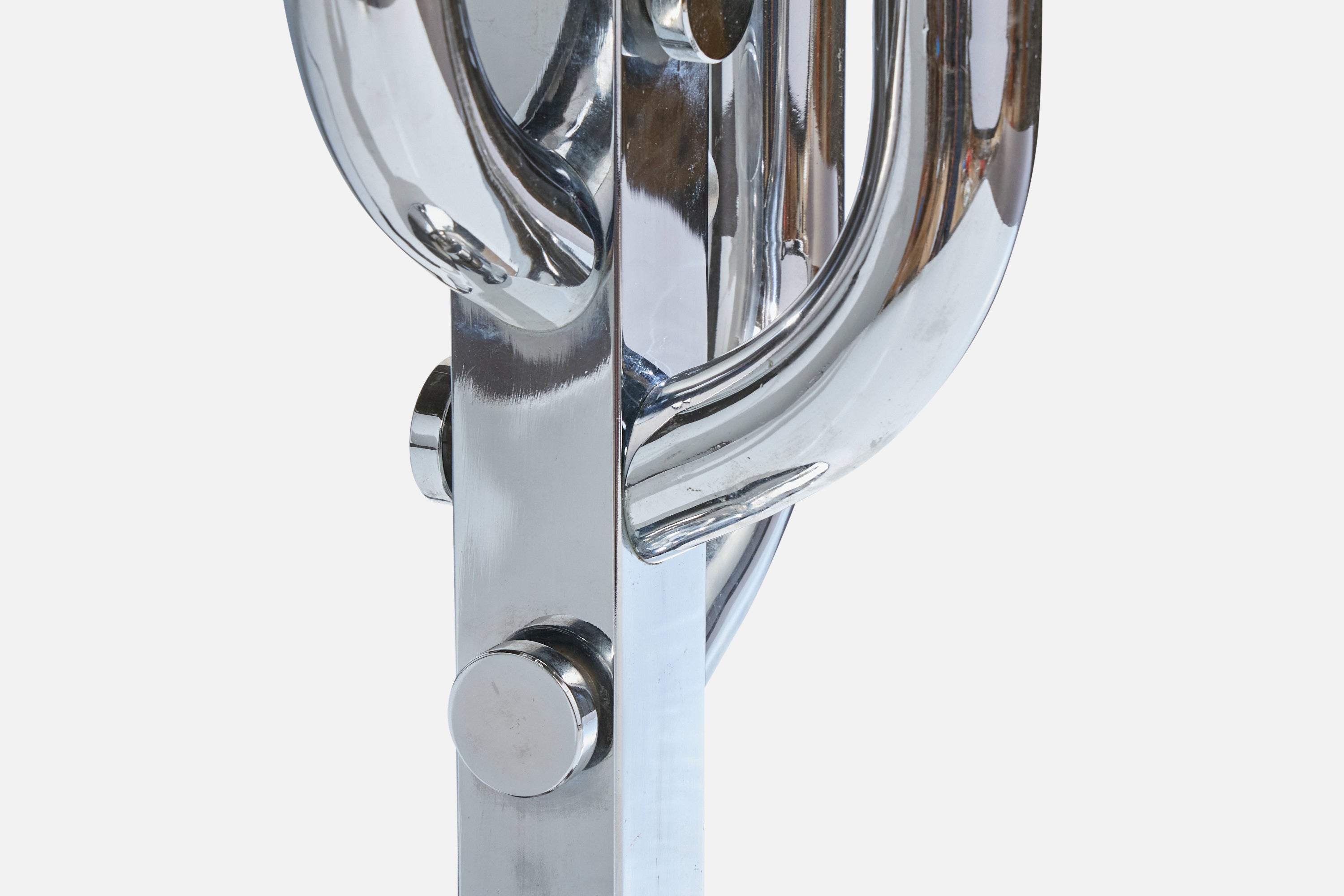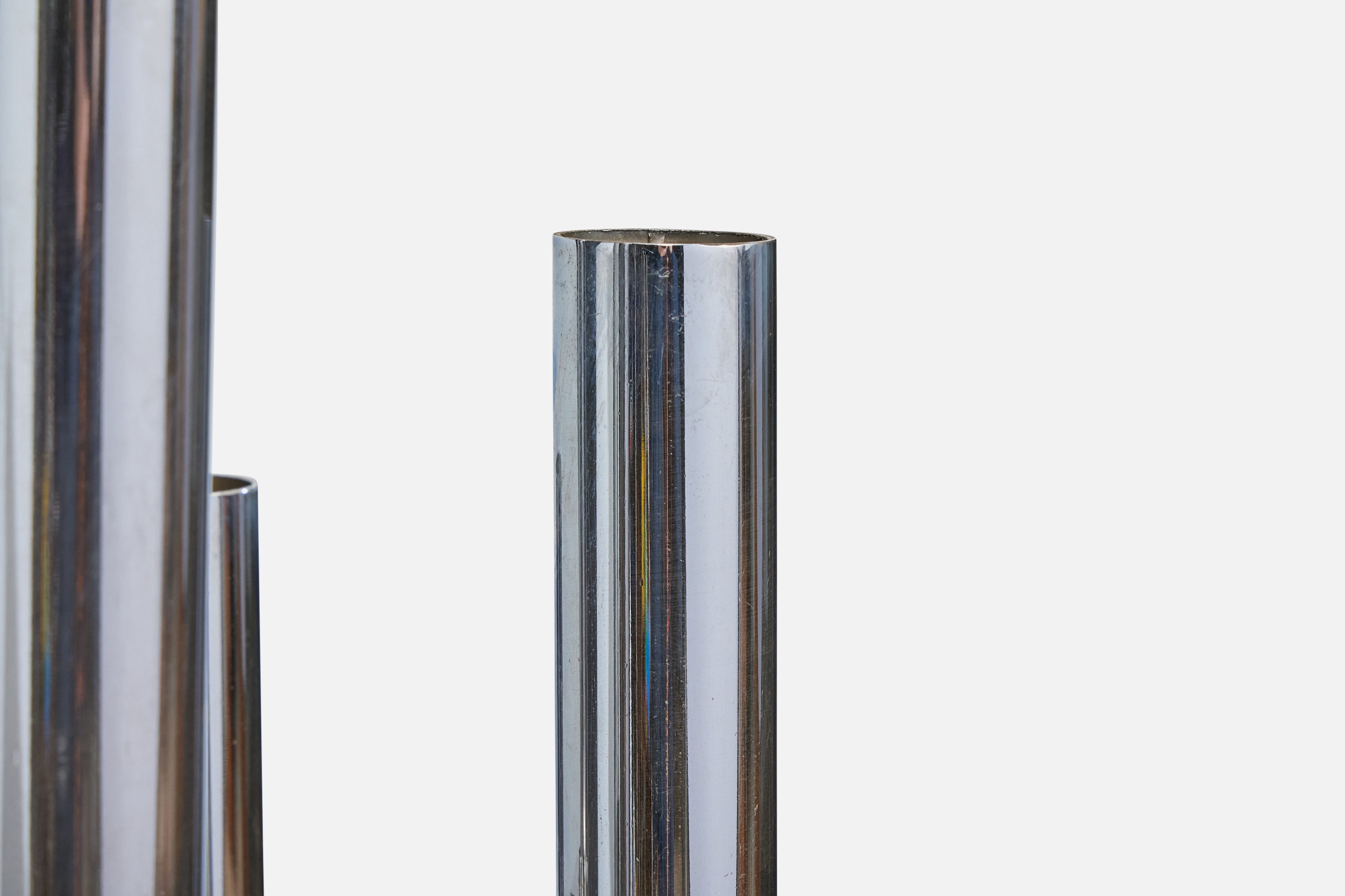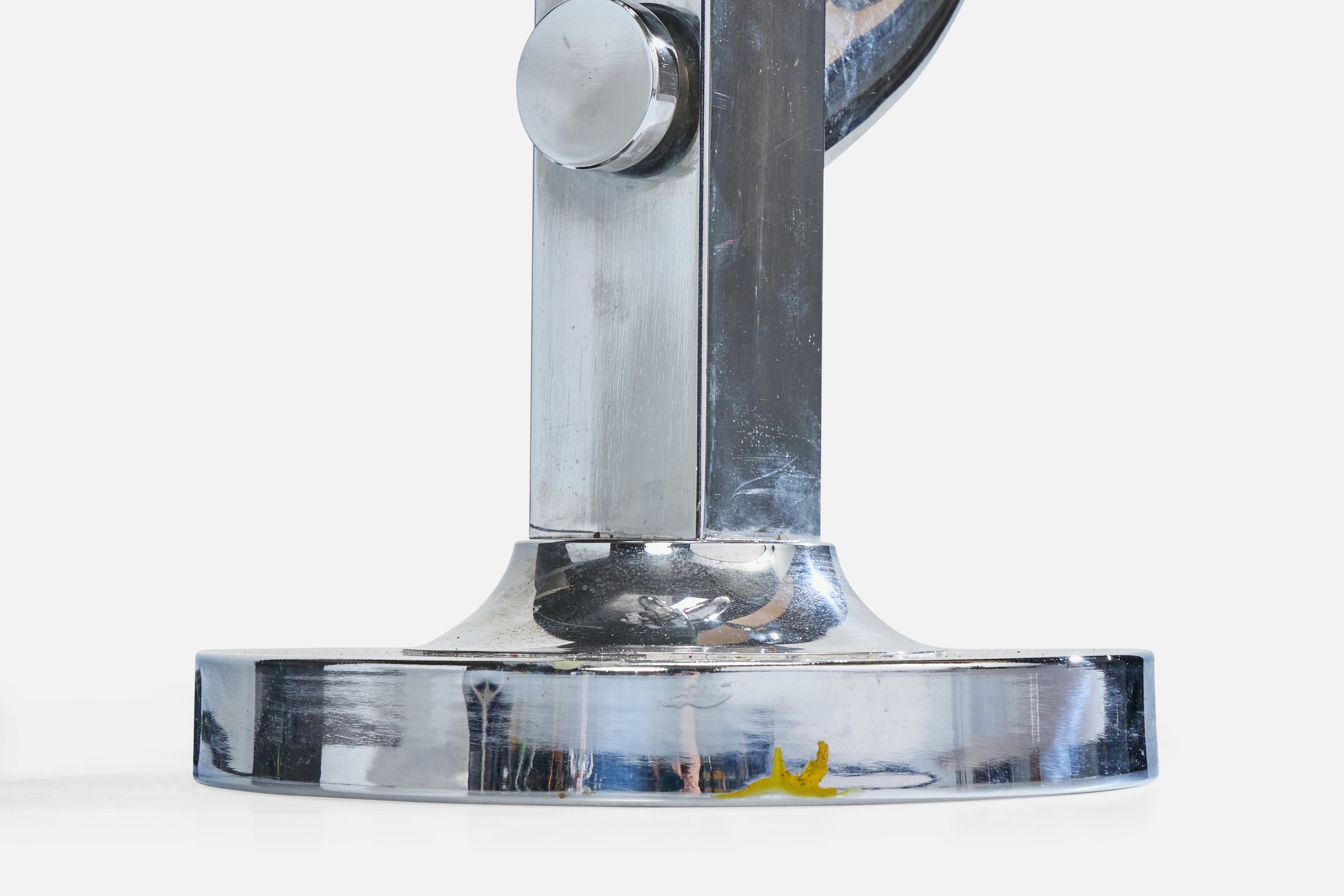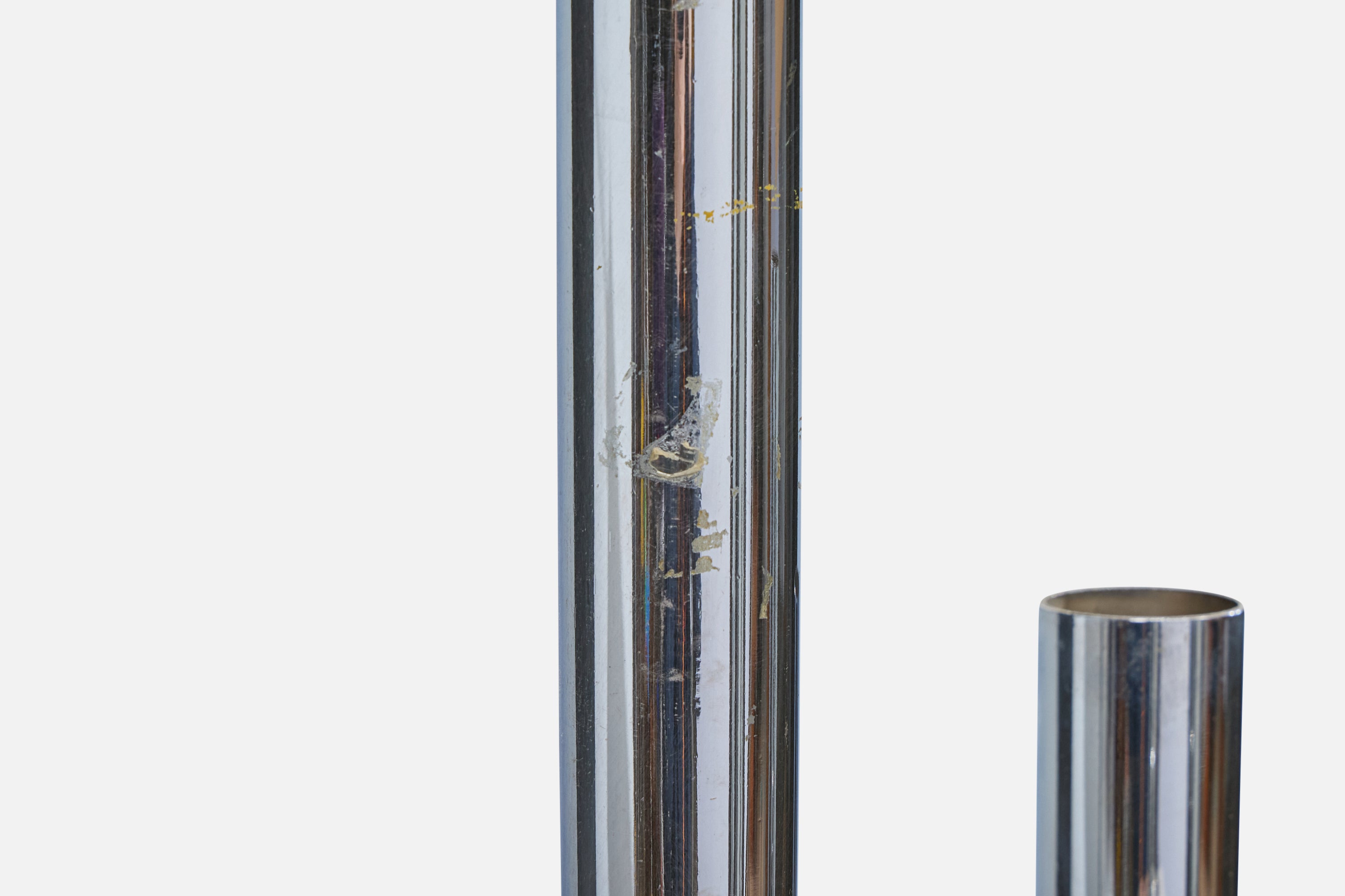 A chrome-plated metal and white fabric table lamp likely designed and produced in France, c. 1970s.