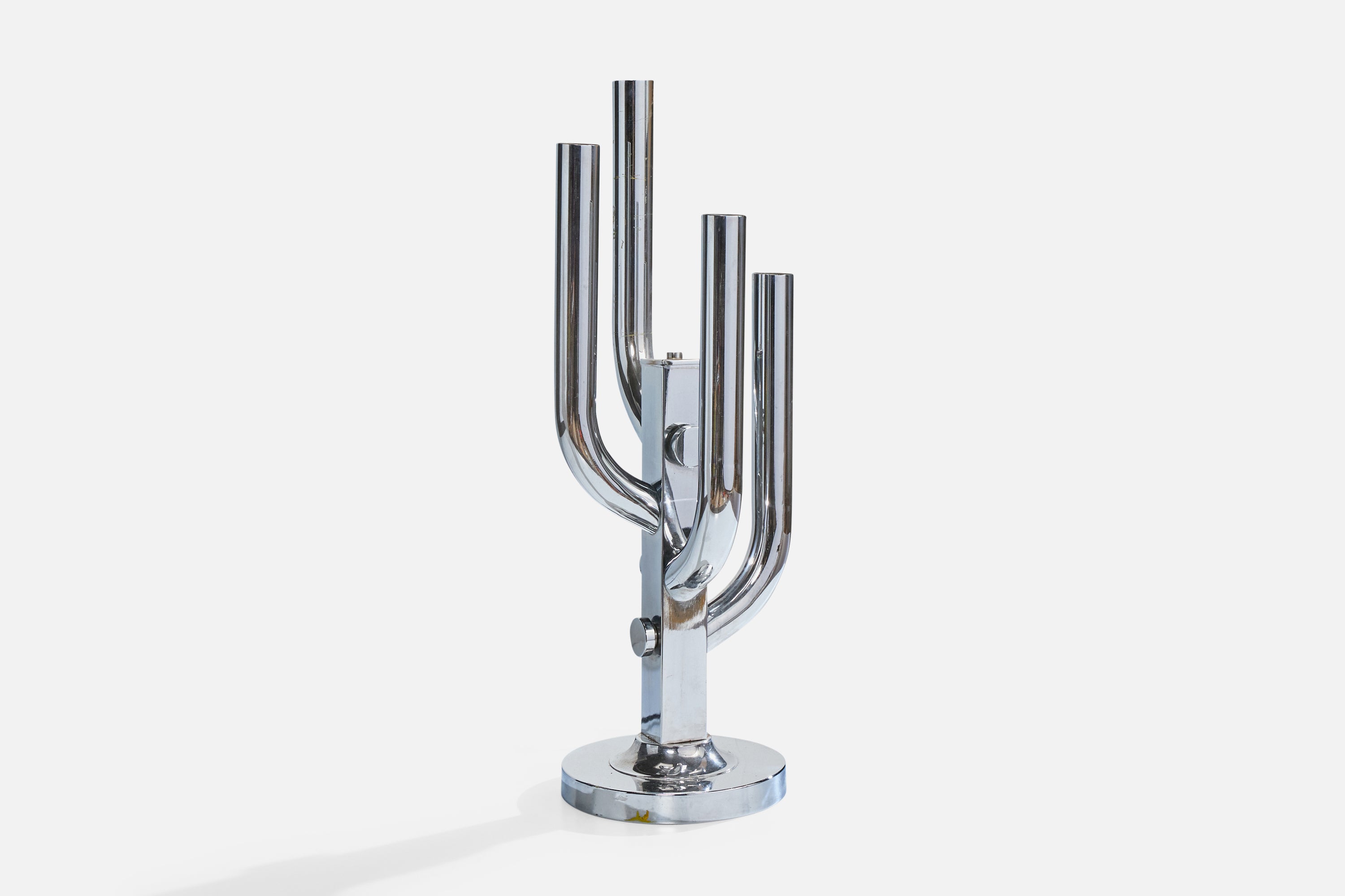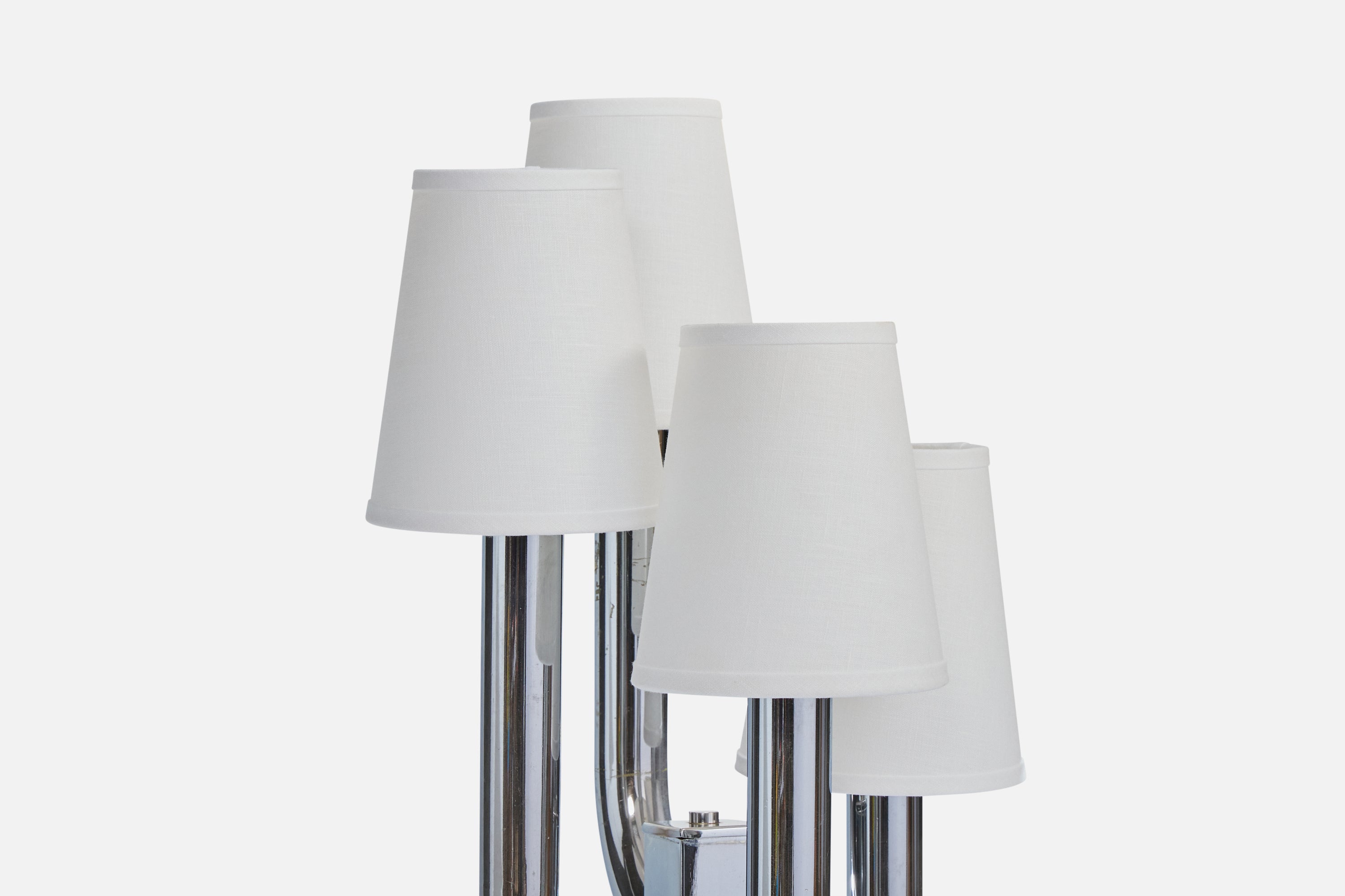 French Designer, Table Lamp, Chrome, Fabric, France, 1970s