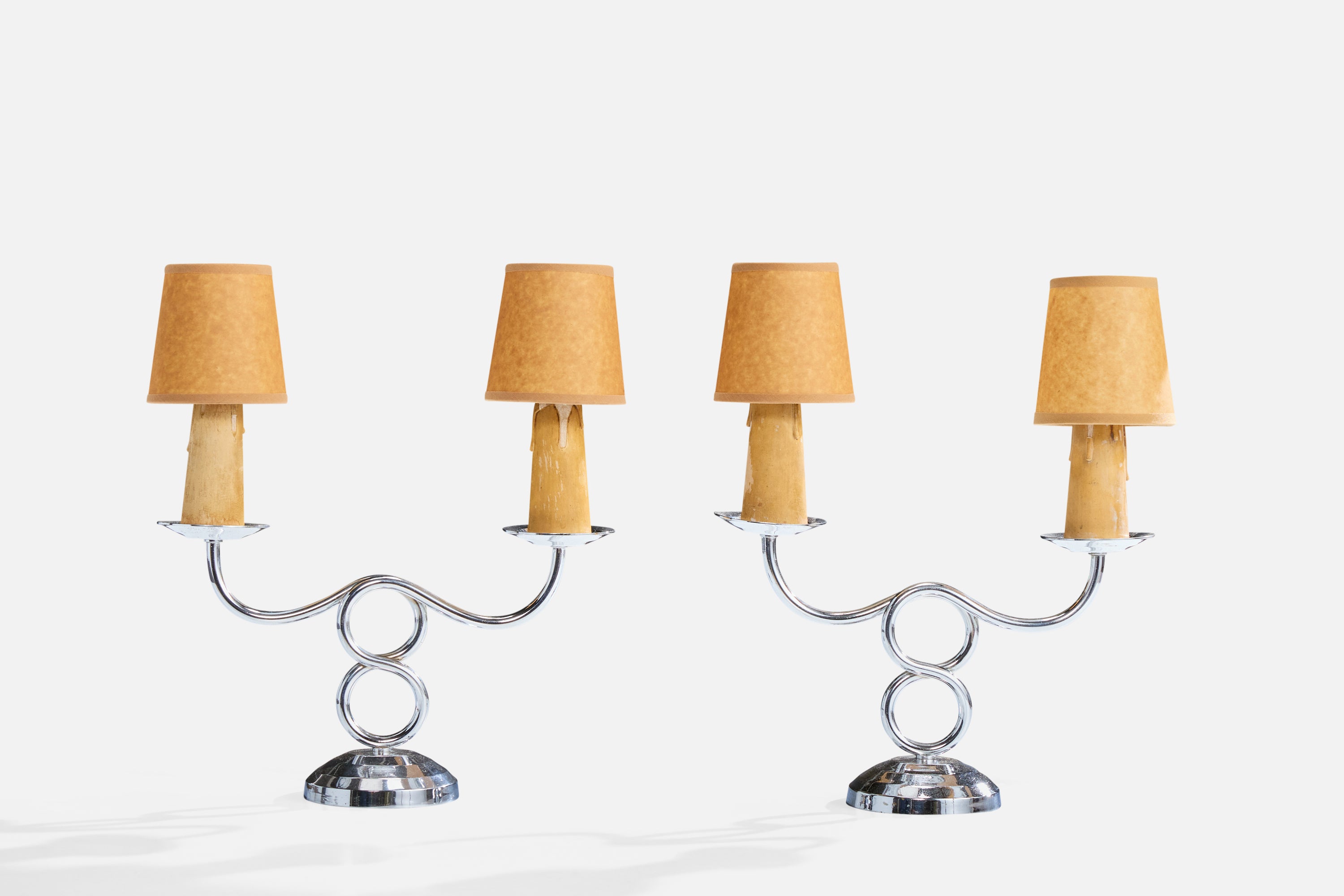 French Designer, Table Lamps, Chrome, Bakelite, Parchment, France, 1940s