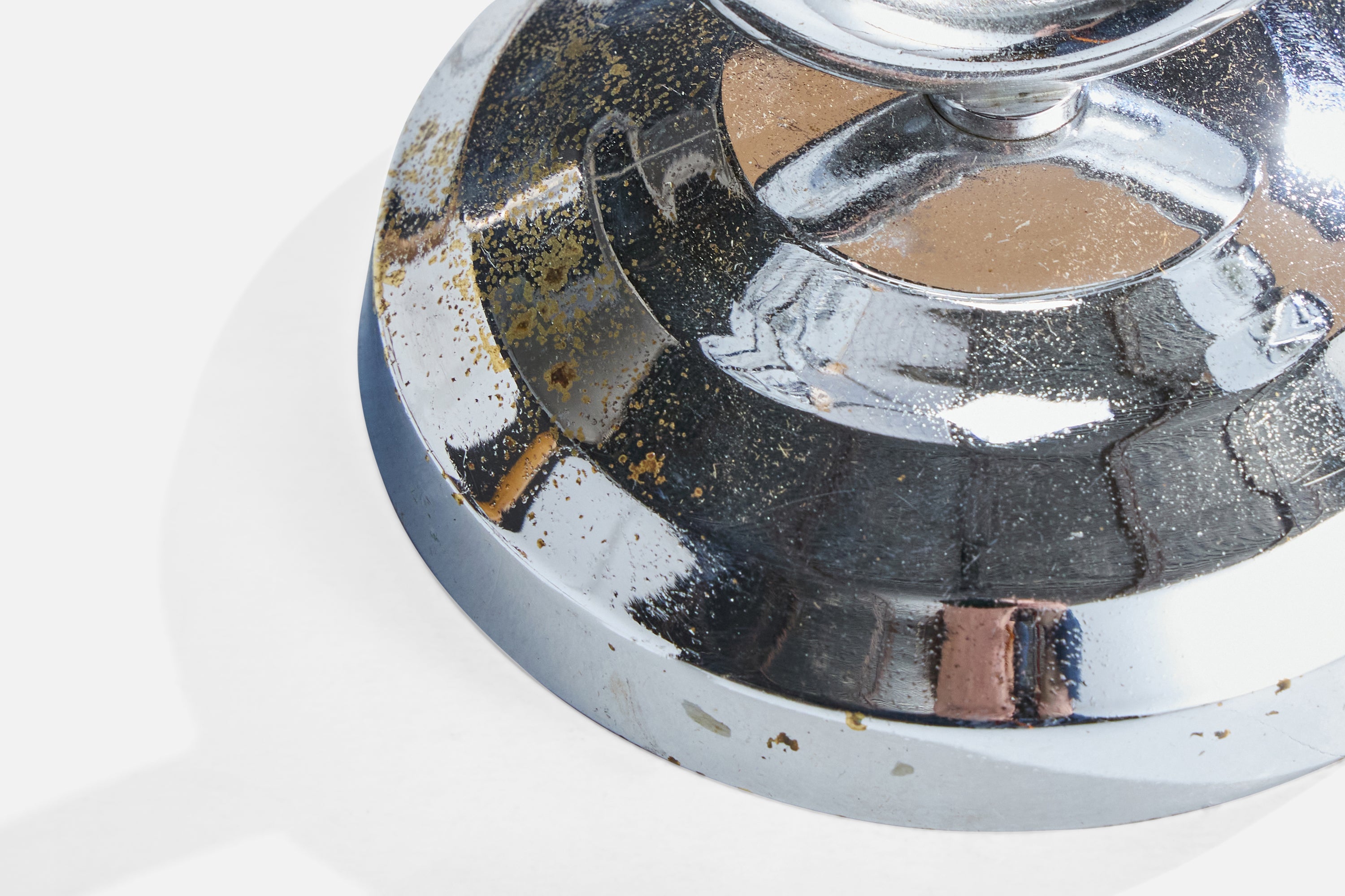 A pair of chrome, brown bakelite and parchment paper table lamps designed and produced in France, c. 1940s.