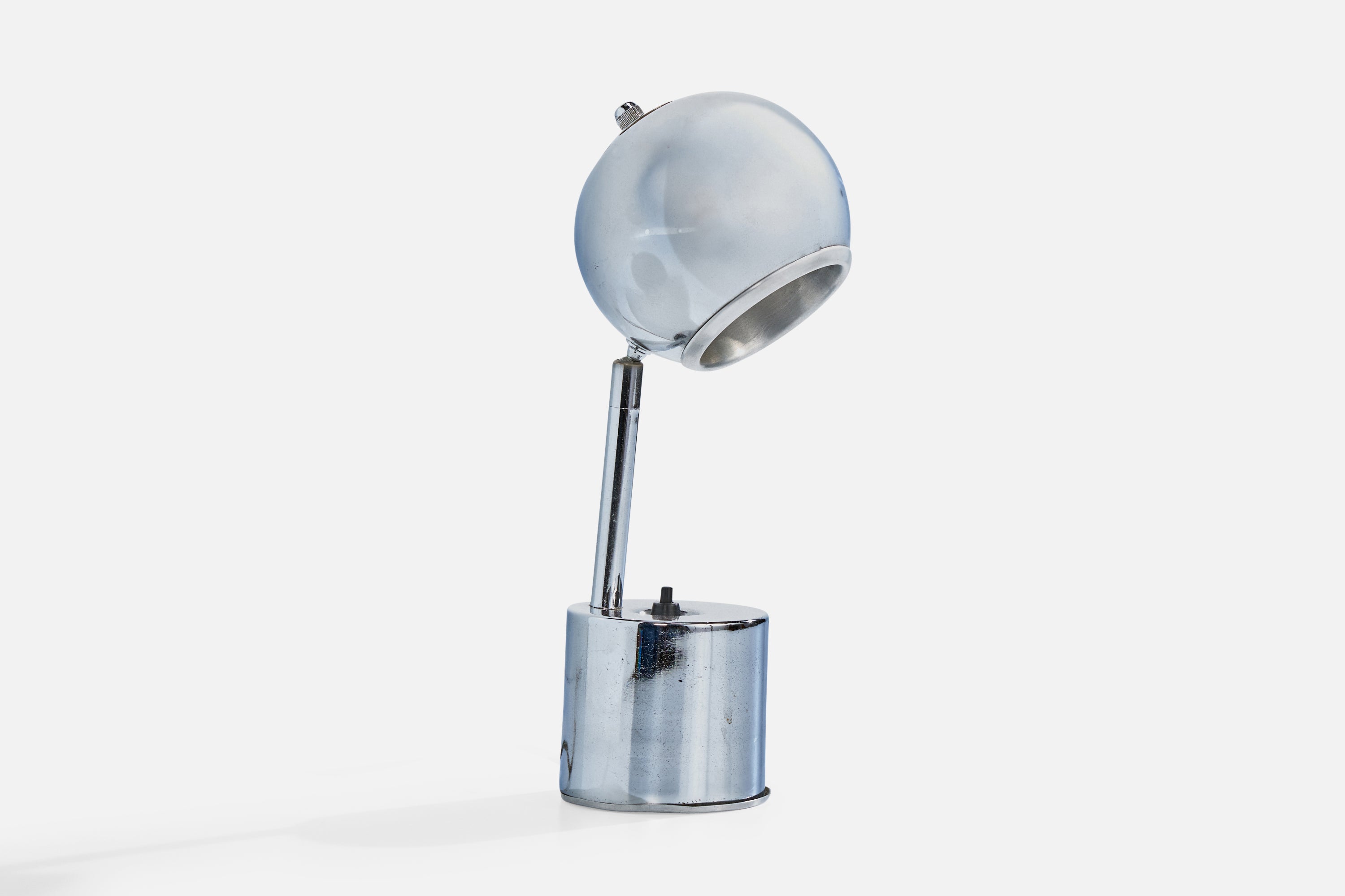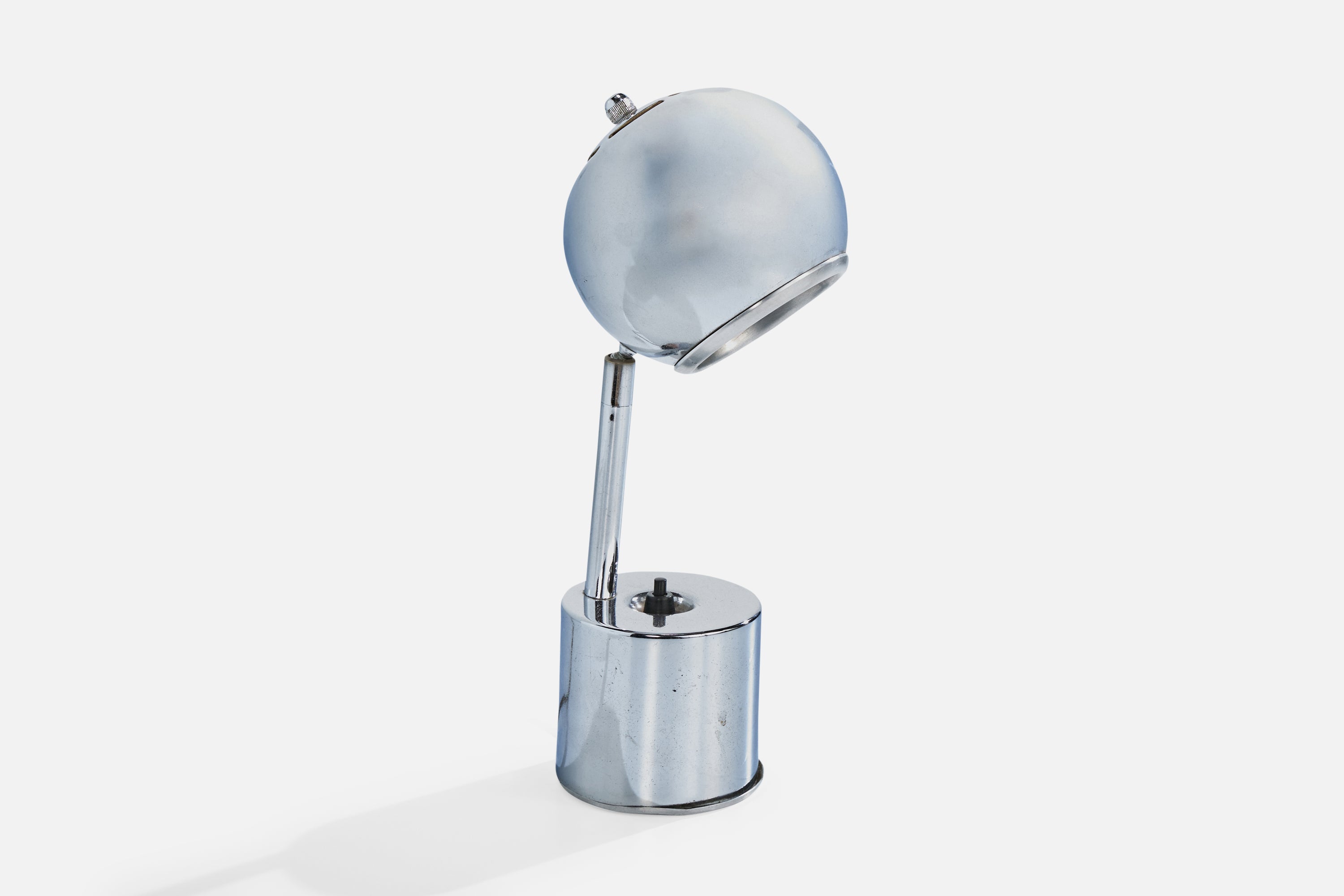 An adjustable chrome-plated metal table lamp likely designed and produced in France, c. 1960s.