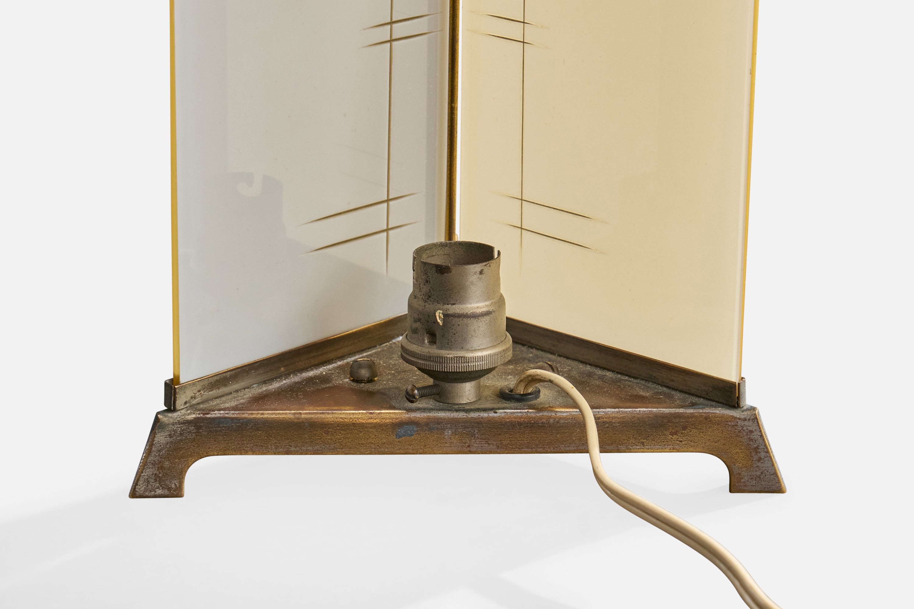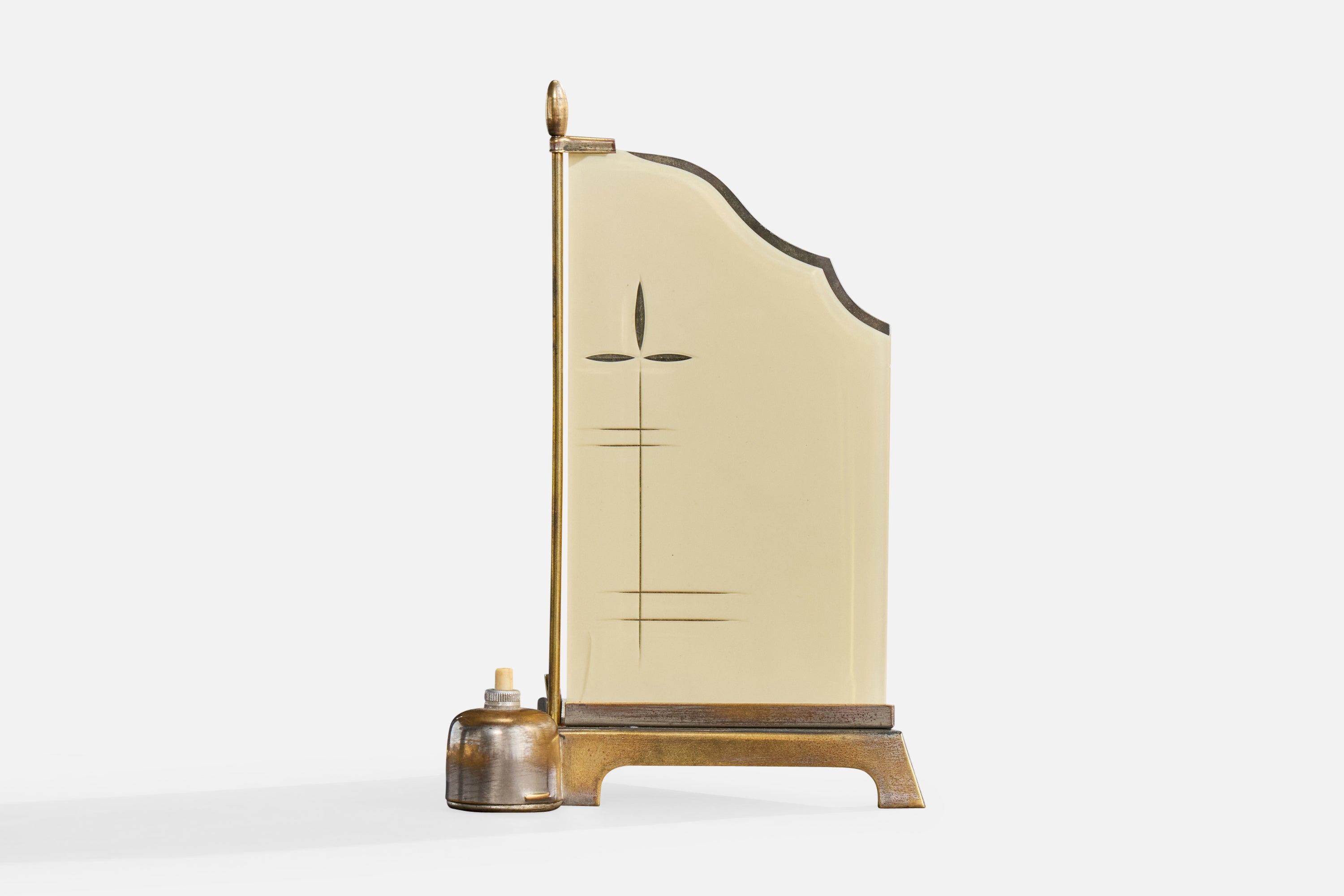 German Designer, Table Lamp, Brass, Glass, Germany, 1920s